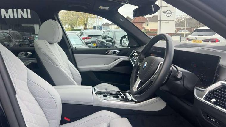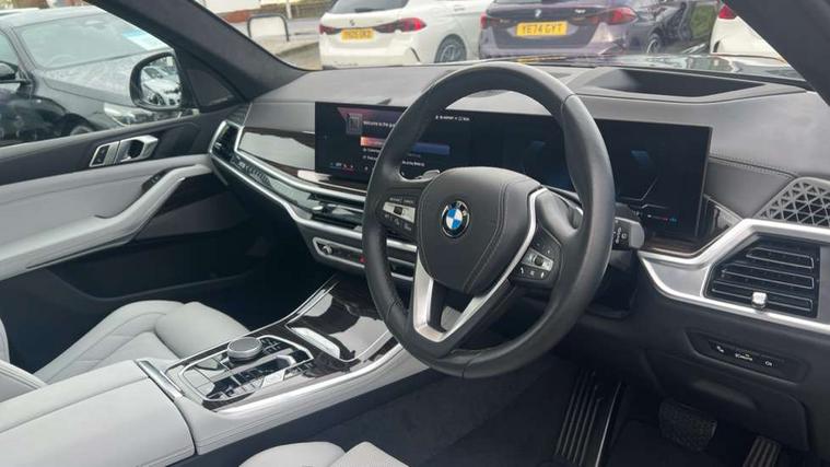 Attentiveness assist, Automatic tailgate operation, BMW ConnectedDrive online services, BMW Recovery system, BMW Teleservices, Condition based service, Cruise control with brake assist, eCall emergency call system, Enhanced bluetooth with wireless charging, Integrated owner's handbook, PAS, Speed limiter, Wi-Fi hotspot, Drive performance control with ECO PRO comfort + sport mode, Eight speed steptronic sport automatic transmission and gearshift paddles on the steering wheel, Adaptive LED Headlights, Aluminium roof rails, Front and rear electric windows, High beam assistant, LED daytime running lights, Rain sensor, Rear side wing doors, Third brake light in rear spoiler, Variable intermittent rear wash/wipe, 12V - Power sockets with 2x centre console and 1x luggage compartment, 3 seat bench in 2nd row, Electric front seat adjustment with driver and front passenger memory function, Foldable rear centre armrest with 2 cupholders and storage compartment, Front and rear side armrest integrated into door trim, Headrests for all seats, Luggage compartment separating net, Lumbar support with height and depth adjustment in backrest, Single front passenger seat, Three spoke sport leather steering wheel, Velour floormats, Ambient light interior pack - X5, Driving assistant pack with radar based driver assistance system - X5, Expanded exterior mirror pack - X5/X5 M, 3 rear seatbelts, Active protection, Airbags - driver/front passenger, rear and side, first and second row seats head airbags, front passenger seat airbag deactivation + knee airbag, Anti-lock braking system (ABS), Automatic Stability Control (ASC), Brake energy regeneration, Cornering brake control (CBC), Crash sensor activating central locking release, hazard warning lights, fuel cut off, interior lighting + activation of safety battery terminal clamp, DSC - Dynamic Stability Control, Dynamic Traction Control - DTC, Electromechanical parking brake with automatic drive away release and auto hold function, Electronic brake force distribution, Hill start assistant, Mechanical child proof lock on rear doors, Tyre pressure monitoring system, Tyre pressure sensors, Ventilated front and rear disc brakes, Warning triangle and first aid kit, Alarm system, Closing system with central locking, Comfort access system, Locking wheel bolts,