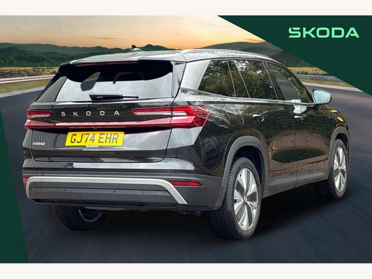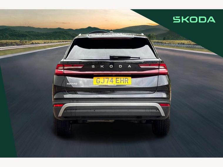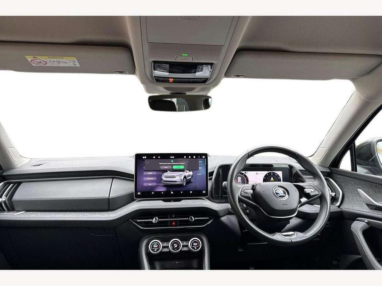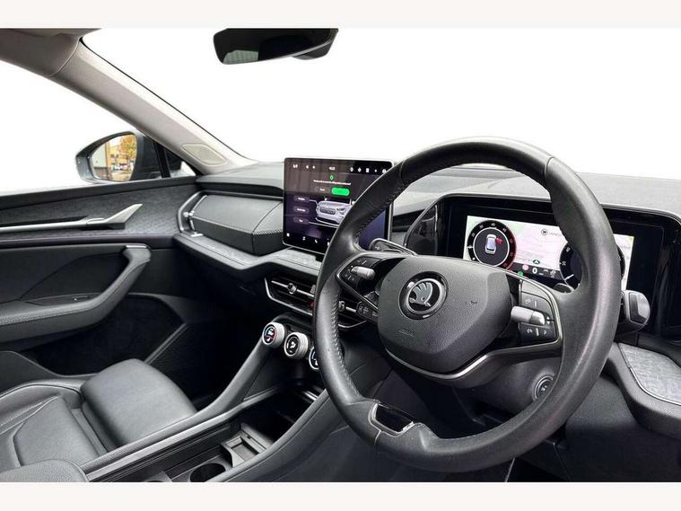 13" satellite navigation touchscreen display, Blind spot detection with door exit warning, Bluetooth system, ChatGPT functionality, Drive mode selector, Driver alert with fatigue sensor, Driver drowsiness alert system, Dry display cleaner, e call+, Front cross traffic assist, Lane assist, PAS, Rear traffic assist, Tailgate unlocking from outside, Traffic sign recognition, USB C Port x 2 in front centre console, Virtual Cockpit - 10.25" digital display, Voice control system, Wireless charging for two smartphones (15W) with cooling function, Wireless SmartLink for Apple CarPlay and Android Auto, Stop/start function, 2x USB-C in the rear, DAB Digital radio, Aero front windscreen wipers with intermittent function, Auto dimming rear view mirror, AWL (all weather lighting) and all weather light with cornering function, Black wheel arch surrounds, Body colour bumpers, Body colour door mirrors and handles, Cornering light and poor weather light, Electric folding /adjustable/separted heated/folding door mirrors, auto dimming with boarding sports and memory function, Electric front and rear windows, Exterior black decorative trims, Heat insulating glass in windshield, Heated rear window, Ice scraper in fuel tank cap, Invisible tailpipe, LED daytime running lights, LED rear fog light, LED third brake light in rear spoiler, Light assistant with automatic headlight control and coming home feature, Logo projection in door mirrors, Privacy glass, Rear side wing doors, Rear spoiler, Rear window wiper, Red decorative strip between rear LED lights, Safety reflectors on front and rear doors, Window control switches with black trim, Windscreen wipers with rain sensor, Without engine designation, 1.5l bottle holder points in all door, 12V socket in boot, 1x centre rear reading light, 2 seat bench in 3rd row, 3 configurable smart dials with 32mm coloured display, 3 seat bench in 2nd row, 4 foldable roof handles with rear coat hooks, Ambient interior lighting - Dashboard, front-door stowage compartments, front and rear door panels and footwell lighting, Automatic gear selector on steering wheel, Chrome interior door handles, Driver/front passenger reading lights, Fabric headlining, Fixed bench 40:60:40 split folding backrests, Front and rear floor mats, Front centre armrest with jumbo box storage compartment, cup holder and 12V socket, Front courtesy lights, Height adjustable front headrests, Isofix child seat fittings in outer middle row rear seats and front passenger with top tether, Manually adjustable steering column, Pollen filter, Rear centre armrest with cupholders, Rear seat boot backrest release, Retractable luggage compartment cover, Single front passenger seat, Sliding trunk cover, Small Bags on the inner sides of the front backrests, Storage pocket including mobile phone pockets on the backs of the front seats, Sunvisors with illuminated vanity mirrors, Three rear height adjustable headrests, Ticket holder on A Pillar, Tri zone climate control, Umbrella in door panel x1 made from sustainable materials, Upper and lower glovebox with card holder and coin compartment, USB C port by rear view mirror for charging only (15W), Exterior styling pack - Kodiaq, Auto door release and activation of warning lights in the event of an accident, Driver and front passenger airbag with knee airbag and front passenger airbag deactivation, Electric child locks, Electronic parking brake, ESC (incl. ABS+EMD+MSR+ASR+EDL+HBA+DSR+RBS+ESBS+MCB+TSA+XDS), Front assist with braking reaction to vehicles, pedestrians and cyclists, Front disc brakes, Fuel cut off safety device, Height adjustable front 3 point seatbelts + pretensioners, Hill hold control, Junction assist with automatic emergency braking, Rear disc brakes, Safety vest holder in door, Seat belt reminder for all seats, Three point rear seat belts, Two tone horn, Tyre pressure monitor, Anti-theft wheel bolts, Immobiliser, Remote central locking with 2 keys, Breakdown kit,