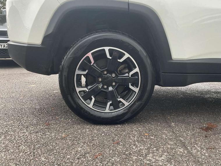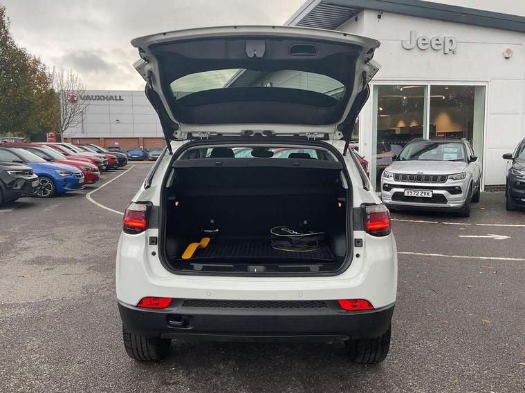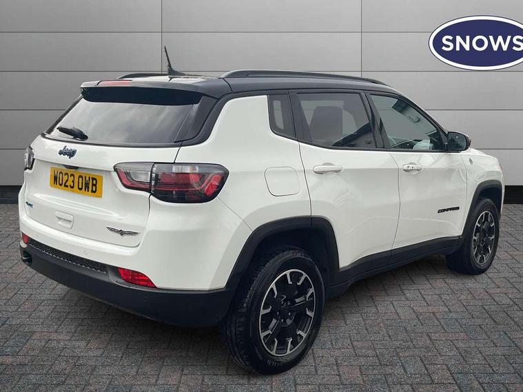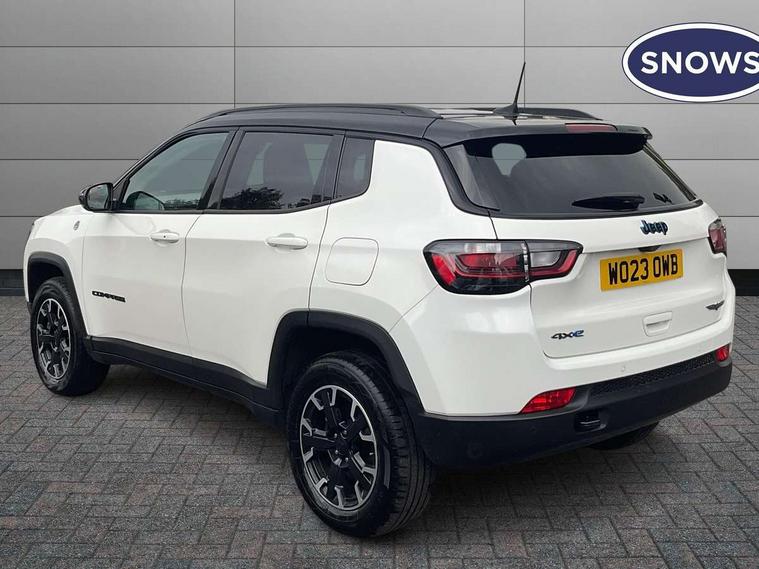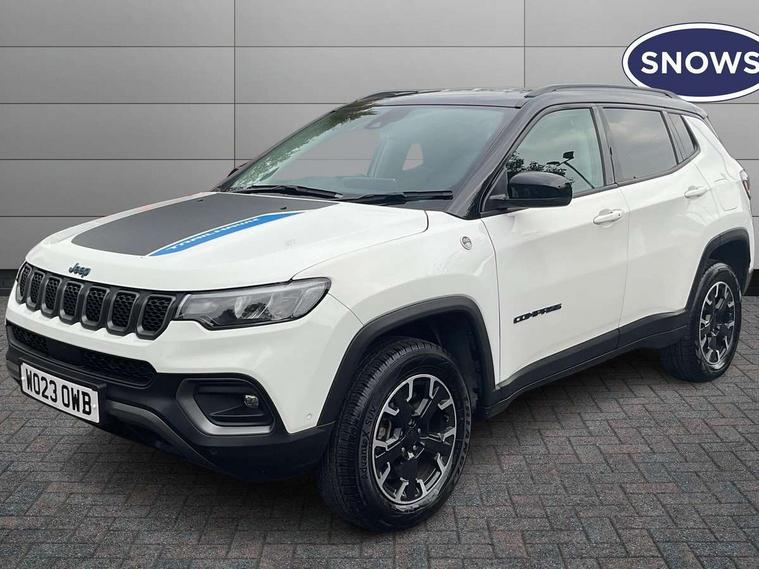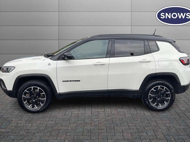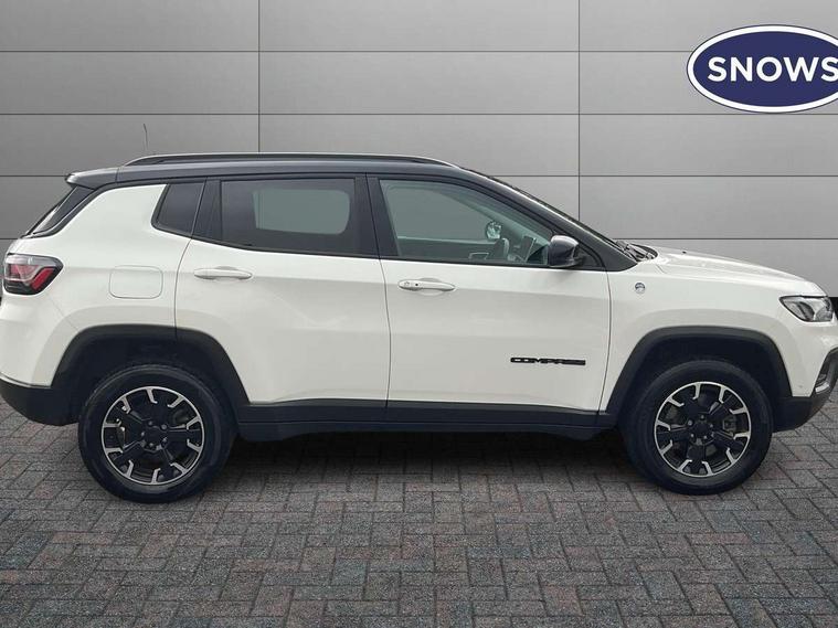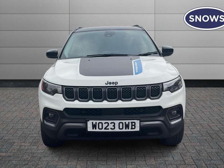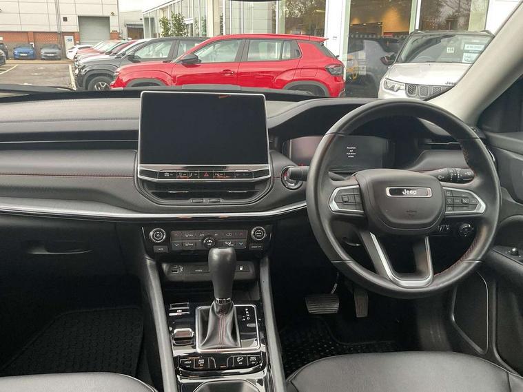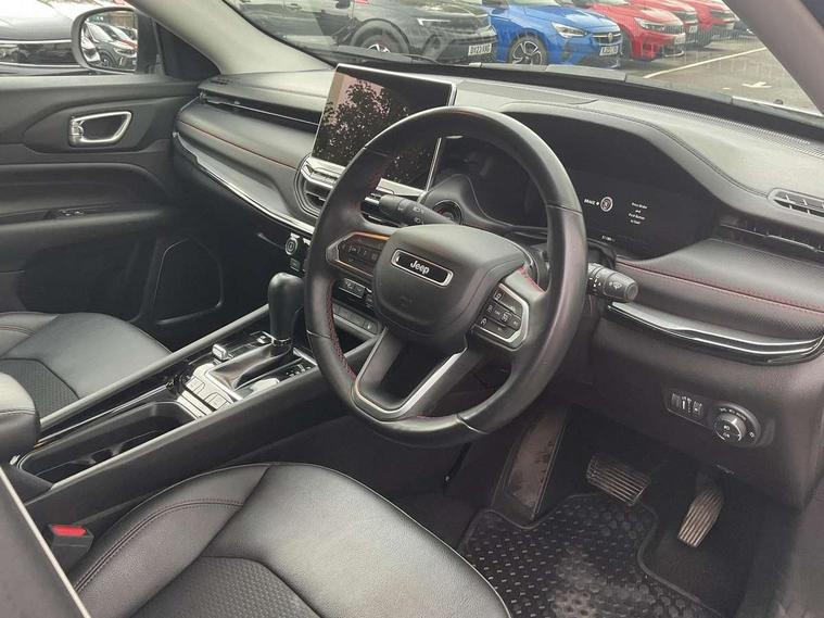 160 MPH primary speedometer, Active lane management, Active speed limiting device, Adaptive cruise control with Stop and Go, Drowsy driver detection, E-call, Electric power steering, English owners handbook, Full speed forward collision warning plus mitigation, Instrument cluster- 10.25" TFT Colour display, Instrument panel, Intelligent speed assist, Media centre electronic storage, Outside temperature display, Selec-Terrain system for Trailhawk with sport mode, Tachometer, TBM - Connected services (e-call), Traffic sign recognition (TSR), Vehicle information centre, Wireless charging pad, 7.4 kW onboard charger, Battery run - down protection, Battery skid plate, Boost and load point shift, CO2 improvement, E- launch, E-creeping, E-Parking, E-Queueing, Electric drive, Electronic roll mitigation, EV/PHEV mode 2 charging cable, Off road suspension, Bluetooth audio streaming, DAB Digital radio, Global telematics box module (TBM), Media hub (USB A-C TYPE), Steering wheel mounted audio controls, Uconnect 5 R1 Radio - 10.1" display without navigation, USB A and C type - second row, USB host flip, 4XE badge/e-Hybrid badge, Accent/body colour bumpers, Aspherical driver's exterior mirror, Auto dimming rear view mirror, Auto high beam, Automatic headlights, Belly pan - underbody protection, Black mic grille/neutral gray rings, Black side roof rails, Black window surrounds, Body colour door handles, Carry back MHEV, Coastdown and run-in optimization, Compass badge, Deep tint privacy glass, Door mirrors: power adjustable and folding, heated with auto folding function and indicators, Exterior door mirrors with heating element, Front fascia/belly pan skid plate, Front/rear grey insert, Gloss black badges, Gloss black exterior door mirrors, Headlamp leveling system, Headlamp off time delay, Heated rear window, Jeep badge, LED front fog lamps, LED rear lights, LED reflector headlamps high with segmented DRL, LED tail lights, Lower bodyside cladding in black, Neutral gray headlamp bezels, Neutral grey exterior accents, Off road bumper, Partial body cover protection, Power windows - driver and passenger express up/down, Rain sensitive windscreen wipers, Rear fascia, Rear fog lamps, Rear side wing doors, Rear windshield washer/wiper, Red rear tow hook, Removable short mast antenna, Skid plate shield - front suspension, Skid plate shield - fuel tank, Skid plate shield - transfer case, Skid plate shield - transmission, Smartbeam headlights, Third brake light, Trail rated badges, Trailer sway damping, Trailhawk badges, Trailhawk hood decal, UK front number plate bracket, Windshield wiper de-icer, 12V auxiliary power outlet - 2nd row, 3 rear seat head restraints, 3 seat bench in 2nd row, 60/40 split folding rear seat, All weather floormats with Jeep logo, Cargo area lights, Cargo compartment carpet, Cargo compartment cover, Cargo compartment organiser, Cargo compartment reversible mat, Cargo load floor, Cargo tie down loops, Centre console with sliding armrest, Centre rear 3 point seat belt, Child seat anchorage points, Coat hooks, Dash insulation, Driver assist handle, Dual zone temperature control with preconditioning capability and heater, Fold flat front passenger seat, Front head restraints, Front height-adjust seatbelts, Front map pocket LED lamps, Front map reading lights, Front seats back map pockets, Full length centre console, Glovebox light, Glovebox with damped soft close door, Heated front seats, Heated steering wheel, Illuminated door entry system, Interior door handle LED lamps, Internal rear grab handles, Leather wrapped gear knob, No Alternator, Overhead console, Overhead dome LED lamps, Passenger assist handles, Power 2-way driver lumbar adjustment, Rear air conditioning and heater vents, Rear seat armrest with cupholder, Red interior stitching accents, Single front passenger seat, Spare wheel storage insulation, Sunvisors with illuminated vanity mirrors, Tilt/telescopic steering column, Vinyl wrap steering wheel, Navigation pack - Jeep, Power pack - Jeep, Ventilated leather seats pack - Compass Trailhawk, AEB with pedestrian and cyclist detection, All speed traction control, Automatic electronic hold brake, Driver's front airbag, Dual note electric horns, Dual tyre pressure - turn changes, Electrical steering column shaft lock, Electronic parking brake, Electronic stability control, Energy recovery system, Front and rear side curtain airbags, Front passenger airbag, Front passenger airbag detector, Front side airbags, Hill descent control, Hill start assist, Jeep call assistance label, Passenger airbag deactivation switch, Rain brake support, Rear door child protection locks, Rear seat belt reminder, Tyre pressure monitoring display, Capless fuel filler, Occupant detection system, Passive entry and keyless go (Key fob without panic button), Power locking fuel filler door, Premium security alarm, Front and rear air vents, Speakers in satin chrome silver, 17" Alloy wheels, Temporary use spare tyre with non matching steel wheel,