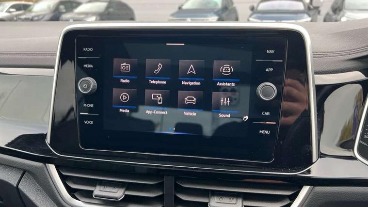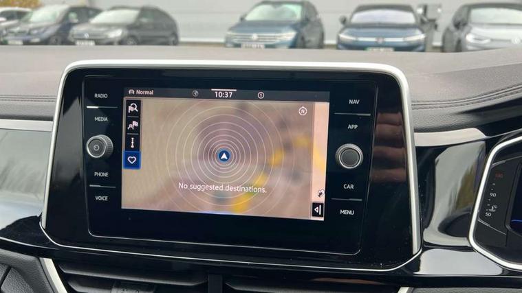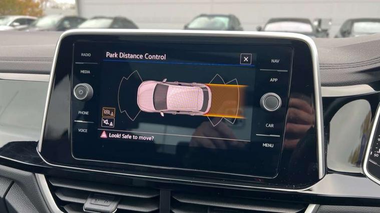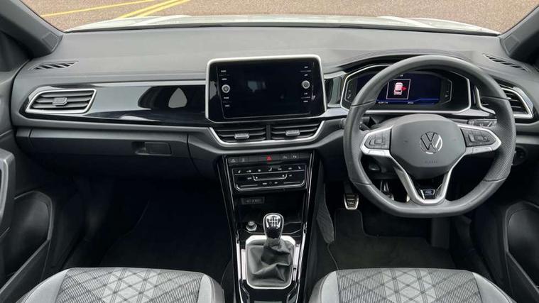 10.25" Digital cockpit pro, Advanced driver attention and drowsiness monitor, Emergency call service, Lane keeping system Lane Assist, Mobile phone interface, Modified key software - reduce switch off time for key status change to Long no motion, Online services, Park assist including front and rear parking sensors, Service interval indicator, Tailgate/trunk lid release from outside, Think blue trainer driver tips and journey analysis, Warning sound and light for front seatbelts unfastened, Wireless app connect, Battery regeneration during braking, Start/stop function with battery regeneration, DAB Digital radio, Diversity antenna for FM reception, Front and rear 6 speakers, Music playback - MP3, WMA and AAC files, Premium USB cable in choice of either Apple or Android smartphone compatibility, SD card slot, Simultaneous pairing of 2 compatible mobile devices, Title and cover art display, We Connect and We Connect Plus functionality, Auto dimming interior rear view mirror, Automatic hazard lights activation under emergency braking, Automatic headlight control with LED separate daytime running lights with coming/leaving home function, Body coloured exterior mirror housings and door handles, Electrically adjustable and heated door mirrors, Extended roof spoiler, Exterior mirrors aspherical on driver side, convex on front passenger side, External USB type C socket and charging sockets, Front windscreen wiper with intermittent wipe and 4 position delay, Heated rear window, LED 3rd brake light, LED rear combination lamps, LED rear number plate lights, Power windows with comfort operation and circuit breaker, Privacy glass for rear side windows and rear window, R-Line design body coloured bumpers, Rain sensor, Rear exhaust tailpipe, Rear fog light on one side and reversing lights on both sides, Rear side wing doors, Rear wash/wipe with intermittent wipe setting, Remote electrically foldable door mirrors, puddle lights and reverse activated passenger's door mirror, 12V power socket in centre console, 3 rear head restraints, 3 seat bench in 2nd row, 4 load lashing points in luggage compartment, Air care climatronic air conditoning system with active combination filter and 2-zone temperature control, Black roof lining, Chrome plated decorative trims, Chrome plated radiator grille inserts, air vent surrounds and light switch surrounds, Door and side trim panel with leatherette insert, Front + rear carpet mats, Front centre armrest, Front cupholders x 2, Front footwell illumination, Front reading light, Front scuff plates with R Line logo, Front seat back storage pockets, Glove compartment door with light, Instrument lighting, white adjustable panel illumination, Interior ambient lighting and surround lighting, Interior light delay, Isofix child seat preparation, Leather gearshift handle, Load-through provision with cup holder when folded down ('Unsplit rear seat bench, split folding backrest, with centre armrest), Luggage compartment lighting, Single front passenger seat, Stainless steel pedals, Storage compartment in left and right luggage area, Storage compartment in rear doors, Storage compartments in driver and front passenger doors, Sunvisors with illuminated vanity mirrors, Variable boot floor, height adjustable and removable, Driver assistance pack without proactive passenger protection - T-Roc, 3 point height adj front seatbelts + pretensioners, 3 point seatbelts in outer rear with ECE label, ABS, Child locks on rear doors, City emergency braking and pedestrian monitoring, Driver and front passenger airbag with front passenger airbag deactivation, Driver and front passenger safety-optimised head restraints, Drivers seatbelt reminder, Electronic parking brake, Electronic Stability Control (ESC) inc EDL (Electronic Differential Lock) and ASR (Traction Control), Front and rear passengers curtain airbag system including front side airbags, Hill start assist, Predictive pedestrian protection, Rear disc brakes, Two tone horn, Tyre pressure loss indicator, Volkswagen roadside assistance, Piano black decorative inserts in dashboard and front door trim panels, Trims for alloy wheels,