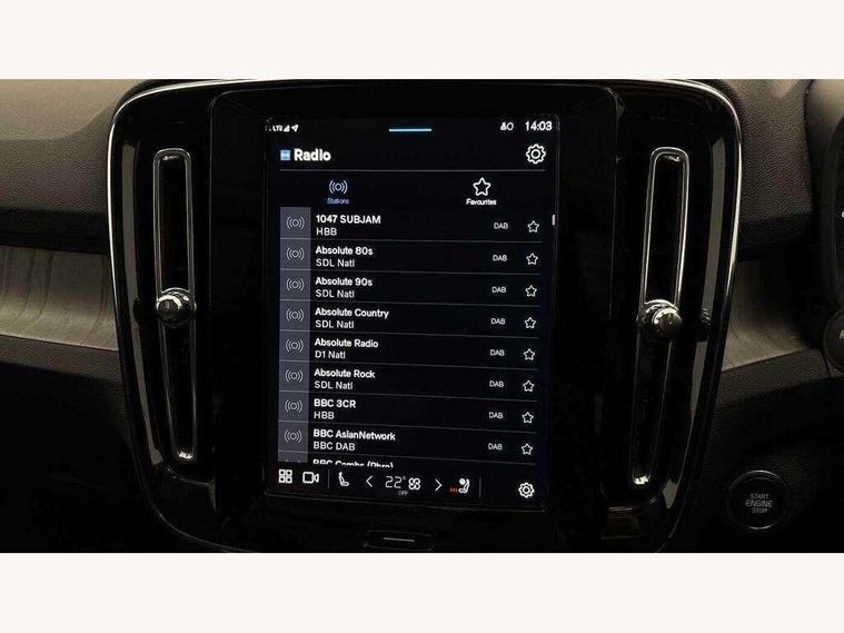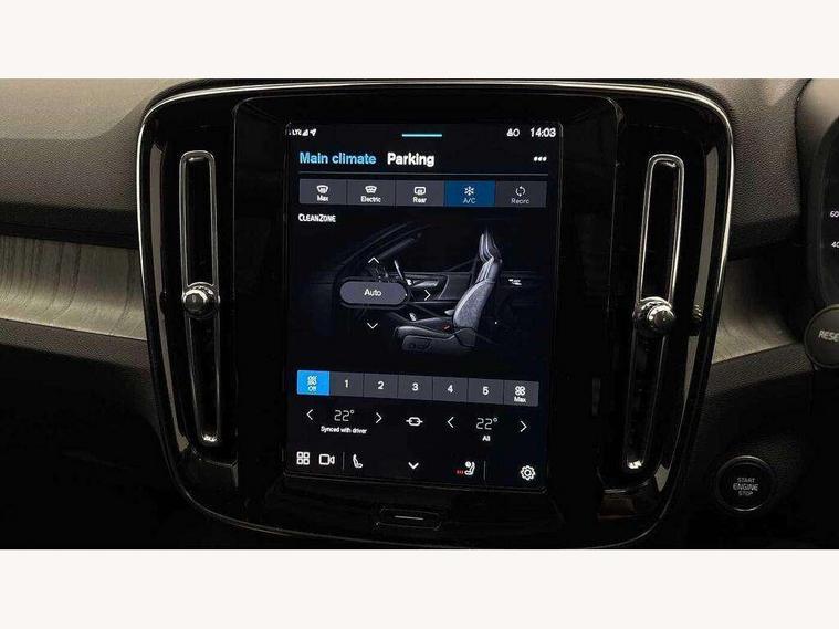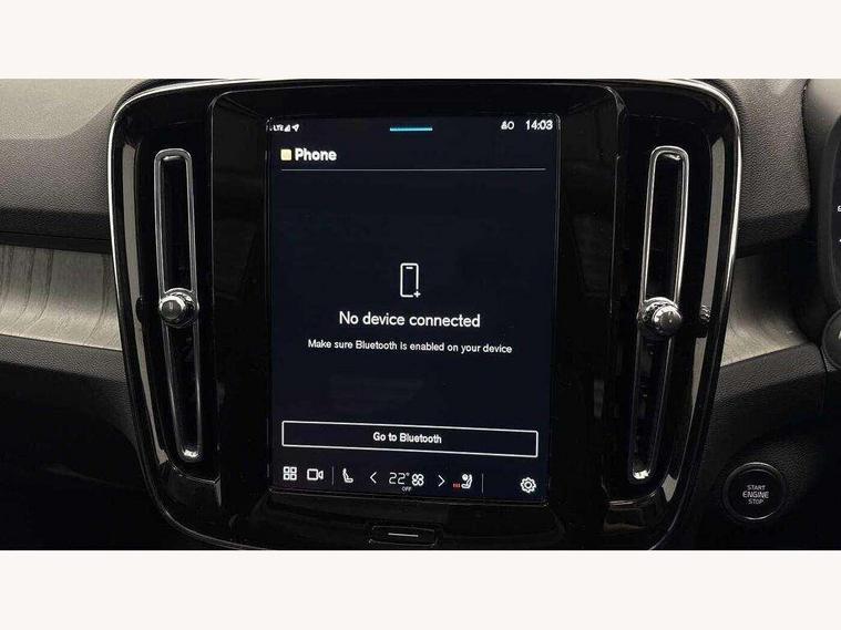 12.3" Progressive Driver Display, 360 degree surround view parking camera with side proximity sensors, 9" centre console portrait touch screen, Adjustable steering wheel force, Apple carplay (wired), Bluetooth handsfree system, Driver alert control, Driver assistance (pilot assist and adaptive cruise control), Driver awareness - Blind spot information system with steer assist, cross traffic alert with autobrake and rear collision warning and mitigation, E-call, Google automotive services - Enabled entertainment apps, navigation with google maps, voice recognition with google assistant, Hands free power tailgate, Intelligent speed assistance, Lane keeping aid, Oncoming Lane Mitigation, Speed sensitive steering, Volvo cars services with app - Driving journal, emergency and breakdown call, engine remote start, remote door locking/unlocking and vehicle dashboard, Wireless/Inductive Mobile Phone Charging, Automatic transmission with start/stop and manual change functions, Dynamic chassis, DAB Digital radio, Premium Sound by Harman Kardon, Dolby Pro Logic II Surround Sound, Dirac Unison, 12 speakers/600W and subwoofer, Steering wheel mounted remote controls, Active bending pixel LED headlights with adaptive shadow technology, Active high beam incorporating daytime running lights, Adaptive brake lights with high level LED brake lights, Auto dimming feature for exterior door mirrors, Auto dimming interior mirror, Automatic headlamp levelling, Dark tinted windows - rear side windows and rear screen, Front aluminium tread plates, Front and rear electric windows, Headlight cleaning system, High gloss black front and rear skid plate, High gloss black front bumper deco, High gloss black mesh front grille with high gloss black surround, High gloss black window trim, Home safe and approach lighting, Integrated roof rails in high gloss black, LED front fog lights with cornering function, Power glass tilt and slide panoramic sunroof with sun curtain, Puddle lights, Rain sensor with automatic windscreen wiper activation, Rear side wing doors, Rear wiper, Roof antenna, Roof spoiler, Visible VIN plate, 12V socket in front tunnel console and luggage compartment, 2-Zone electronic climate control with CleanZone air quality system and pollen filter, 3 seat bench in 2nd row, 3 Spoke tailored steering wheel with chrome trim, 60/40 versatile split folding rear seat, Centre console cupholders and storage, Flexible load floor and grocery bag holder, Floor mats, Front cabin courtesy lights, Front door pocket, front cupholder, ambient front door, rear reading, rear courtesy, instrument panel and tailgate lighting, Front footwell illumination, Front headrests, Front reading lights, Front seat cushion extensions, Front side step illumination (under door), Glovebox bag hook, Heated front seats, Height/reach adjustable steering column, High gloss centre tunnel deco, Illuminated glovebox, Illuminated luggage compartment, Illuminated vanity mirrors + ticket holder, Integrated waste bin, Isofix attachments on outer rear seats, Load cover, Load protection net, Multi directional lumbar support for driver and passenger seat, Power driver seat with memory + exterior mirrors memory, Power folding rear headrests, Power passenger seat, Rear armrest with cupholders, Single front passenger seat, Underfloor cargo storage, Climate pack without heated front seats - XC40, 3x3 point rear seatbelts, City safety with steering support with Pedestrian + cyclist + front collision warning with full auto brake and rear auto brake, Driver and passenger airbags, Drivers knee airbag, Electronic parking brake with auto hold, First aid kit, Front and outer rear seatbelt reminder and pretensioners, Front seats SIPS airbags, Hill descent control, Hill start assist, Inflatable curtain, Passenger airbag cut-off device, Power child locks on rear doors, Road sign information display, Run off Road Protection, SIPS (Side Impact Protection System), Slippery road and hazard light alert, Stability and Traction Control with Spin control, Engine Drag Control and Corner Traction Control, Tyre pressure monitoring system, Vehicle deceleration control with Anti-lock Brake System, Electronic Brake Distribution and Emergency Brake Assist, Warning triangle, WHIPS whiplash protection system - front, 2 x Key integrated remote control central locking including with deadlocking system and auto open/close windows and sunroof, Anti-theft alarm including immobiliser/volume sensor + level sensor, Keyless drive includes keyless entry and keyless start, Locking wheel nuts,