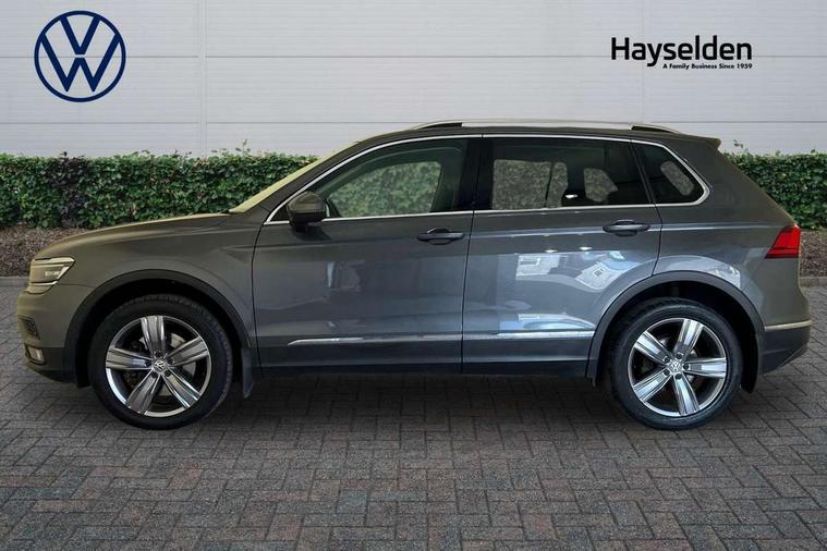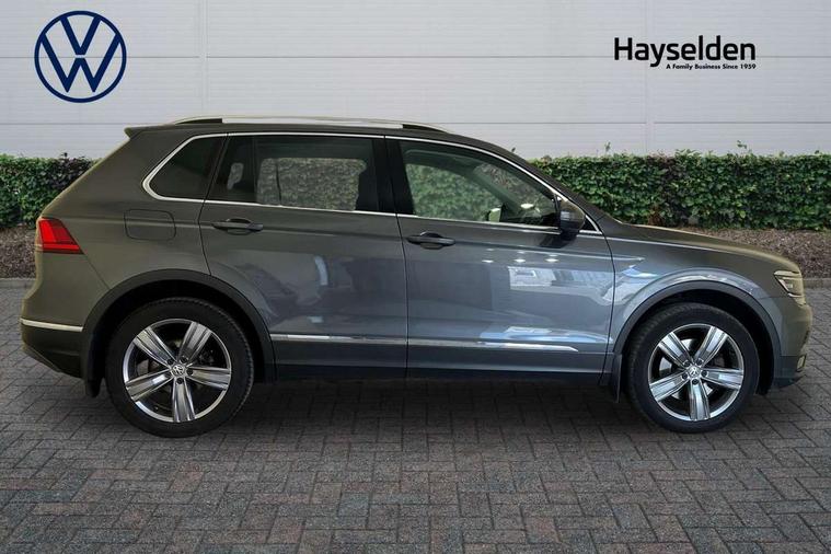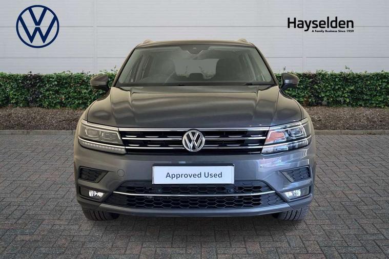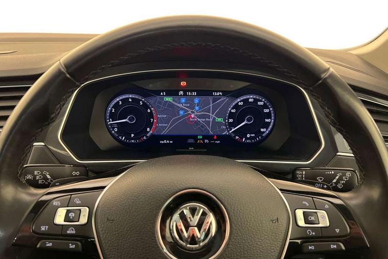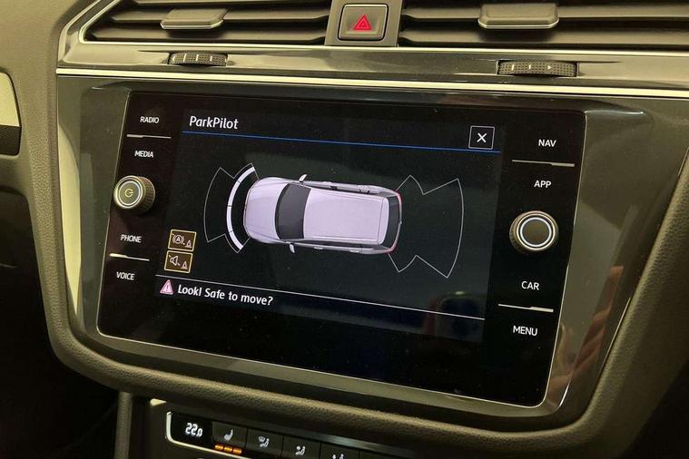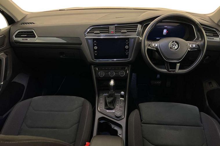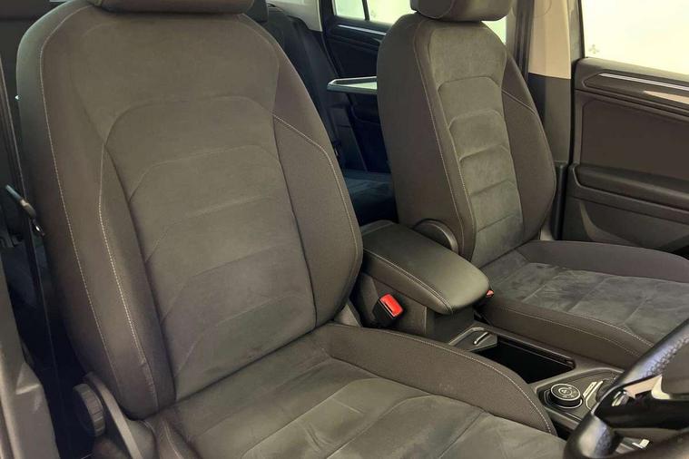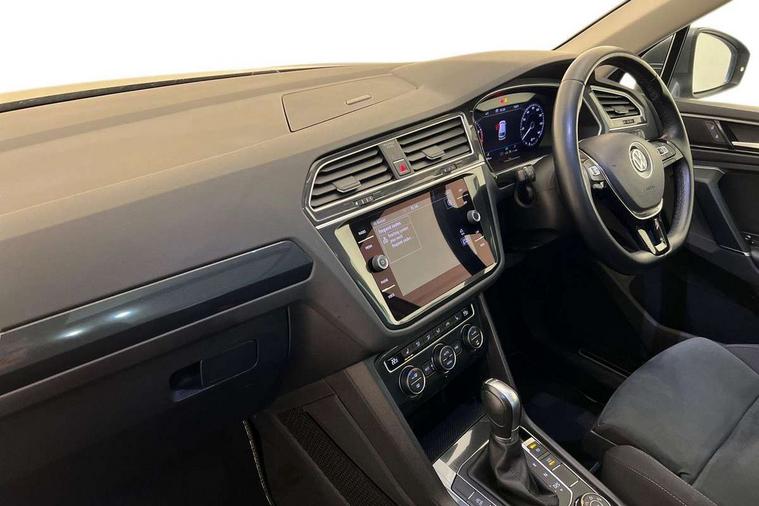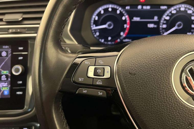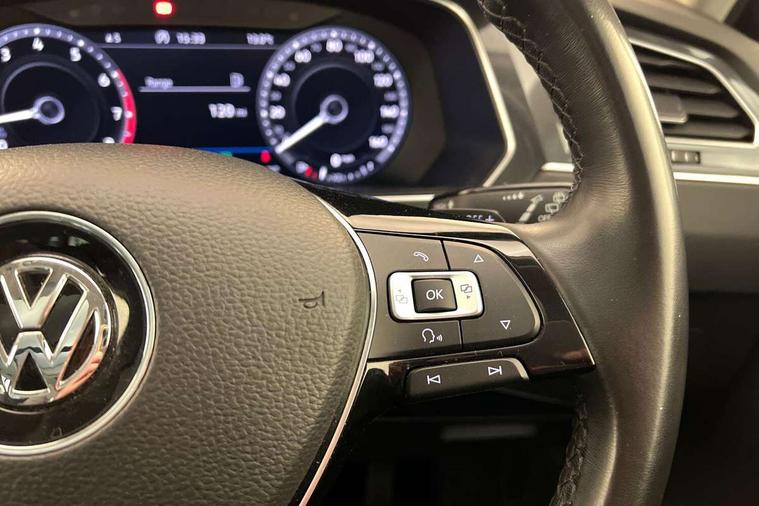 Active information display, Adaptive cruise control, App-Connect, Bluetooth phone integration system, Distance control assist, Drive mode selector, Driver profile selection, Fatigue detection system, Instrument cluster, Lane assist, Low washer fluid warning light, Outside temperature display, Service interval indicator, Speed limiter, Warning lights, XDS electronic differential lock, 2x USB sockets in front, Aux-in socket, DAB Digital radio, MP3 compatible single CD player, SD card slot, Auto dimming interior mirror, Automatic activation of hazard warning lights, Black door protector with chrome inserts, Body colour door handles, Body colour door mirrors, Body coloured bumpers, Chrome side body trim, Chrome side window surrounds, Chrome trimmed radiator grille, Coming/leaving home lighting function, Dusk sensor + auto driving lights, Electric folding door mirrors, Electric heated + adjustable door mirrors, Electric panoramic sunroof with sunblind, Front and rear electric windows, Heated rear window, LED headlights with dynamic light assist daytime running lights and cornering front fog lights, LED rear lights, Rain sensor windscreen wipers, Rear windscreen washer and wiper with interval delay, Silver rear diffuser trim, Silver roof rails, Silver under body guard, Tinted windows (B pillar backwards), Windscreen wipers/ intermittent wipe + 4 position delay, 12V Accessory socket in centre console, 3 rear headrests, 3 zone climate control, 4 load lashing points, 40:20:40 split folding rear seats, Bag hook in luggage compartment, Driver + front passenger lumbar support, Foldable passenger seatback, Front + rear carpet mats, Front centre armrest with 12v socket, Front centre armrest with storage + rear 2 air vents + cupholders, Front seatback folding tables, Height/reach adjust steering wheel, Illuminated driver/passenger vanity mirrors, Illuminated scuff plates, Interior light with delay, Isofix Preparation 2 Rear child seats, Leather gear knob, Load through provision with 2 cupholders when folded, Lockable cooled glovebox, Luggage compartment lighting, Luggage compartment side storage, Map pockets on front seats, Passenger seat height adjuster, Passenger underseat drawer, Rear cupholders, Removable luggage cover, Sliding/reclining rear seats, Storage compartment in driver's door, Storage compartment in passenger's door, Storage compartment in rear doors, Storage tray on dashboard, Sunglasses storage, Variable boot floor, Ambient lighting pack - Tiguan, 3 rear 3 point seatbelts, ABS+EBD+Brake assist, Active bonnet, Active pedestrian safety system, Curtain airbags, Driver/Front Passenger airbags, Driver/Passenger whiplash optimised head restraints, Drivers knee airbag, DTC - Drag torque control, Electronic parking brake with auto hold, ESP with EDL + ASR, First aid kit, Front assist including city emergency braking, Front side airbags, Head airbag system, Height adjustable front 3 point seatbelts + pretensioners, Hill hold control, Passenger airbag deactivate switch, Passenger knee airbag, Pre crash system, Rear side airbags, Seatbelt warning lamp and buzzer, Two tone horn, Warning triangle, Alarm with interior protection, Electronic engine immobiliser, Remote central locking with 2 remote folding keys, Chrome door trim inserts, Piano black interior trim, Steel space saver spare wheel,