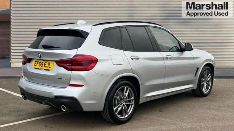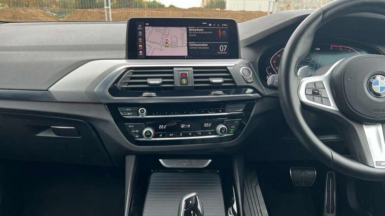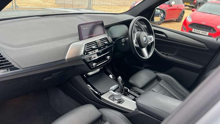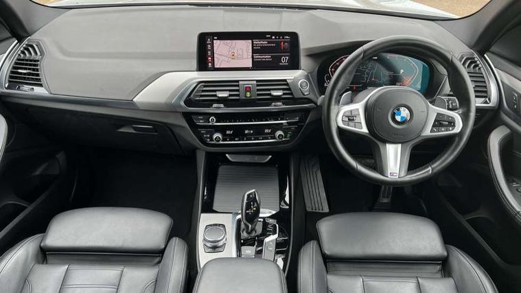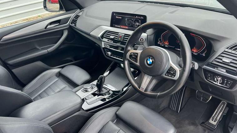Active Guard incl speed limiting and lane departure functions with auto steering, and front collision warning with brake intervention, Attentiveness assist, Automatic tailgate operation, BMW Live Cockpit Professional sat nav system including 10.25" high resolution display and Intelligent Voice Assistant, BMW Online services, BMW Teleservices, Brake pad wear indicator in front and rear, Check Control warning system for monitoring of lights and door/luggage compartment open warning, Control display - 6.5" colour display screen, Electric Power Steering (EPS) with Servotronic, Front/rear Parking distance control, iDrive Controller with 8 favourite buttons, Lights on warning by audio warning signal when ignition is switched off, Navigation system - BMW Professional multimedia with Hard disc drive (HDD) and 10.25" touch display, Oil sensor for level and grade, warning by check control system, On board computer - average speed+fuel consumption, service interval, clock/date, odometer/trip meter, outside temperature display and ice warning, Optimum shift indicator, Personal Profile - automatic lock when driving away selectable, Real time traffic information, Semi digital instrument cluster, Stop/start system, Automatic transmission with gearshift paddles, Diesel particulate filter, Incorrect fuelling protection, Larger capacity fuel tank, Multi-link rear suspension, Performance Control, Auxiliary socket for external MP3 player, BMW professional radio/CD/MP3, DAB Digital radio, Acoustic glazing, Black finish on B pillars, Body colour door handles, Body colour electric adjust heated aspherical door mirrors, Body colour roof mouldings, Body coloured bumpers, Chrome kidney grille with high gloss black vertical slats, Direction indicator, side repeaters, integrated in exterior mirrors, Dual chrome exhaust, Dynamic brake lights, Exterior mirrors - electrically folding with anti-dazzle, Fingertip control / anti-trap function on electric window, Follow me home headlights, Front and rear bumper system with replaceable deformation elements, Front and rear electric windows, Green tinted heat insulating glass, Heated windscreen washer jets, Height adjustable headlamps, High gloss black door sill finishers, High gloss black shadow line roof rails, High gloss shadowline exterior trim in decorative moulding side frame/recess cover/guide rail/B, C pillars/mirror frame and triangle with mirror base, High level 3rd brake light incorporating LED Technology, Interior rear view electrochromatic mirror with automatic anti dazzle function, LED front fog lights, LED tail lights, Lightweight engineering, M aerodynamic bodystyling, Model designation, Rain sensor including auto headlights activation, Rear wiper, Shark fin antenna, Visible VIN plate, Welcome lighting, Windscreen wipers with adjustable interval, 12V socket in centre console and luggage area, 3 rear headrests, 3 zone automatic air conditioning, 4 lashing points to secure luggage, Ambient lighting, Anthracite headlining, Anthracite Velour floor mats, Driver/passenger sunvisors with ticket holders + illuminated vanity mirrors, Foldable boot floor with storage compartment, Four grab handles integrated in roof lining, Front and rear bottle holders integrated into door trim storage compartments, Front and rear side armrests integrated into door trim, Front centre armrest with storage compartment, Front footwell lights, Front sports seats, Front/rear courtesy lights with soft on/off dimming, Front/rear reading lights, Height adjustable front/rear head restraints, Isofix rear child seat preparation, Leather gear knob, Luggage area underfloor compartment, Luggage compartment lighting, M Sport multifunction leather steering wheel, Parcel shelf removeable and storable under boot floor, Reach and rake adjustable steering column, Rear centre armrest with 2 cupholders, Rear seat centre armrest with two cupholders, Removable / retractable luggage cover, Slope adjustable rear seats, Storage compartment in rear centre console and front/rear door trims, Through loading system with 40/20/40 split folding rear seat, Toolkit located in luggage compartment, Two front cupholders with removable oddments tray/lid, Vernasca leather upholstery, Connected pack professional - X3, ABS/EBD, ADB - Automatic Differential Brake, Automatic Stability Control (ASC), Battery safety cut-off, BMW emergency call, Brake assist, Brake assist function, Brake drying, Brake energy regeneration, Braking pre-tensioning, Child locks on rear doors, Cornering brake control (CBC), Crash Sensor - activation of central locking release, hazard warning light and interior lighting, Deactivation of fuel pump in the event of a crash, Driver and front passenger front and side airbags with passenger deactivation and ITS front and rear head airbags, DSC+, Dynamic brake control, Dynamic Traction Control - DTC, Electromechanical parking brake, Front seat belts warning, Hill descent control, Hill start assist, Seatbelt security check for front seats, Side impact protection, Three point seatbelts to all seats with front and outer rear pyrotechnic belt tensioners and seat belt force limiters, Two tone horn, Tyre pressure monitoring system, Ventilated front and rear disc brakes, Warning triangle and first aid kit, Central locking switch for all doors, fuel filler cap and luggage compartment, Electronic engine immobiliser, Locking wheel nuts, Remote control including two integrated key - one button for open/close all lockable content, windows and separate button for open luggage compartment, Remote control Thatcham category 1 alarm, Start/stop button with Comfort Go keyless engine start and auto Start/stop deactivation button, Low rolling resistance tyres,