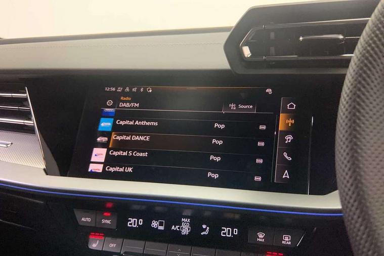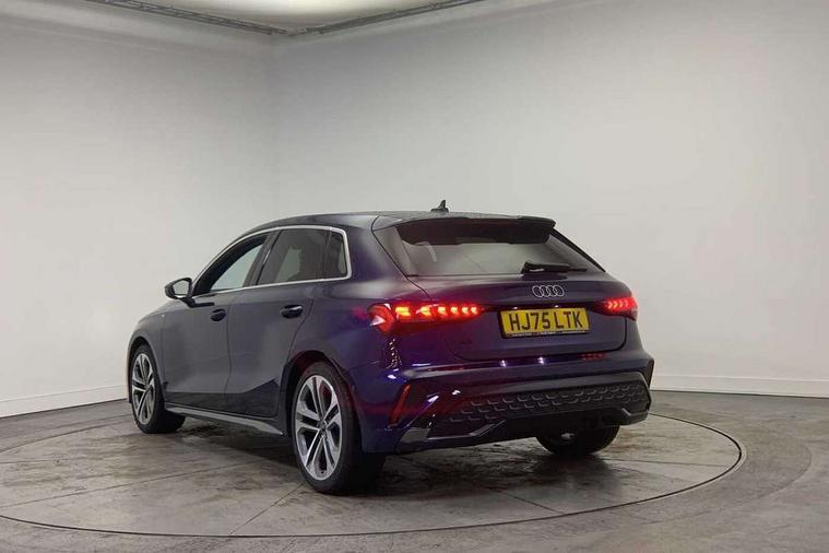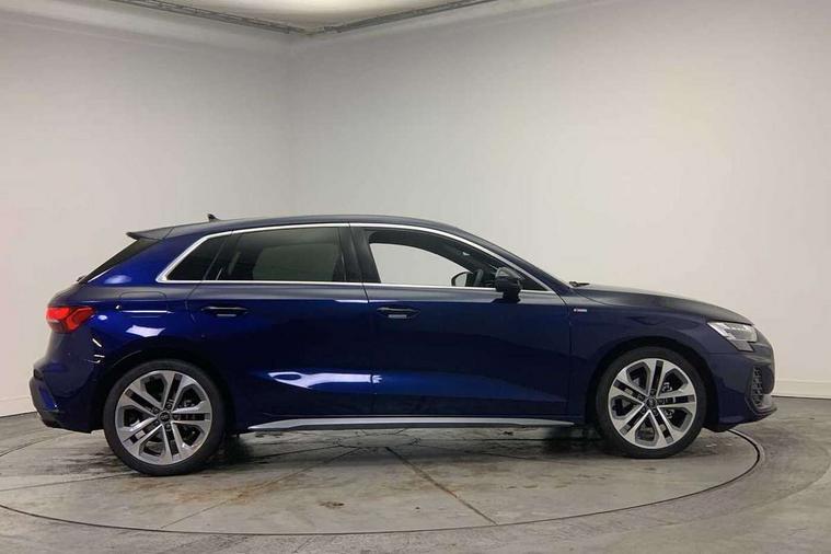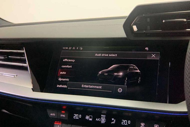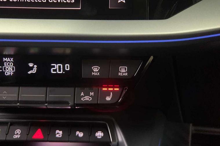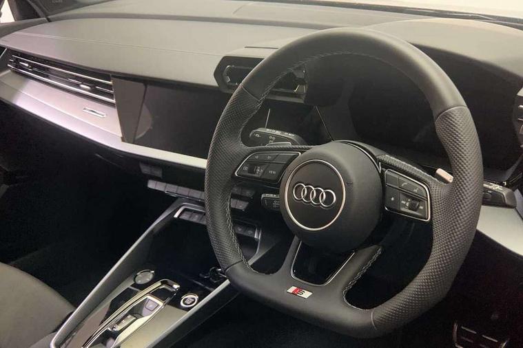 Adaptive cruise control (ACC), Adjustable speed limiter, Audi drive select (Auto, Comfort, Dynamic, Efficiency and Individual), Audi virtual cockpit plus - 12.3" full HD resolution dynamic digital instrument cluster, Automatic start/stop system with recuperation, Bluetooth interface, Camera based traffic sign recognition, Collision avoidance assistant, Driver attention and fatigue detection, e-Call (emergency call), Electromechanical power speed sensitive steering, Emergency assist, Intersection assist, Lane departure warning system, MMI Navigation Plus with high resolution 10.1" colour touch screen display, Park Assist with parking system Plus, Reversing camera, Service indicator, Smartphone interface with app store includes wireless Apple carplay, Android auto and Amazon alexa integration, Trip computer, Voice control system with natural language interaction, Sports suspension, Audi Phonebox light with wireless charging, Audi sound system - 10 loudspeakers including centre loudspeaker and subwoofer, DAB Digital radio, USB ports with charging function in the rear, Acoustic glass windscreen, All weather light, Aluminium window trim, Auto dimming frameless rear view mirror, Automatic dynamic range control, Body colour exterior mirrors, Chrome exhaust tailpipes, Dipped beam, main beam, position light and turning light, Electrically adjustable/heated/folding/auto dimming door mirrors with integrated LED indications + kerb view function for passenger side, Exterior model badging, Front and rear side air inlets in grained matt black with dark liquid chrome frame, Front electric windows, Front radiator grill in high gloss dark chrome, Heat insulating glass windscreen, Illuminated door sills with aluminium inserts at the front with S logo, Intersection light, LED 3rd brake light, LED brake lights, LED daytime running x3, LED headlights with LED rear lights and dynamic rear indicators, LED rear number plate lights, LED reverse light, LED tail lights, Light and rain sensors, Manoeuvring light, Motorway light, Privacy glass - dark tinted rear window, rear door and side windows, Rear diffuser and grill in grained matt black with inlay in dark liquid chrome, Rear electric windows, Rear side wing doors, Rear wiper, S line bumpers, S roof spoiler, Side S line emblems on front wings, Side sill trim in dark liquid chrome, Static Cornering lights, 12V socket and storage compartment in front centre console, 3 seat bench in 2nd row, 3 spoke flat bottomed leather multifunction sport steering wheel with gear shift paddles, 3-zone deluxe automatic air conditioning, 4 way electrically adjustable lumbar support for driver and front passenger, 40/20/40 split folding rear seat bench, Black cloth headlining, Black front and rear floor mats, Front and rear centre armrest in artificial leather with contrasting stitching on armrests and instrument panel, Front and rear headrests, Heated front seats, Height and reach adjustable steering wheel, i-Size child seat mounting on the front passenger side and outer rear seats, i-Size and top tether on the outer rear seats, Manual boot compartment lid, Manually adjustable front seats, Rear centre armrest with cupholder, S badging on the steering wheel, Seat side bolsters, Single front passenger seat, Stainless steel pedals and front footrest in black, Twin leather upholstery with front sports seats S embossed logo, Aluminium interior elements pack - A3, Multi-coloured LED interior lighting package with Multi-coloured contour lighting of instrument panel - A3, 3x3 point rear seat belts, Driver and front passenger airbag with passenger airbag deactivation, Electronic Stabilisation Control (ESC) including ABS, ASR and EDL, First aid kit with warning triangle and 2 safety vests, Front side airbags with head airbags and interaction airbag, Hill hold assist, Pre-sense front with pedestrian and cyclist detection, Seatbelt monitoring, Tyre pressure loss indicator, Anti theft alarm, Anti-theft wheel bolts, Electronically operated child locks, Immobiliser, Black dashboard, Inlay in dark aluminium spectrum,