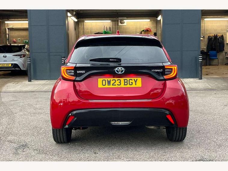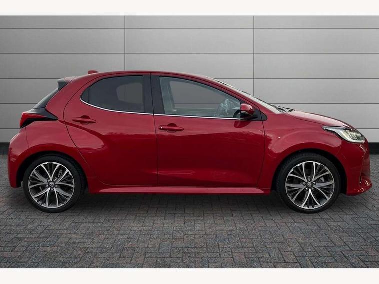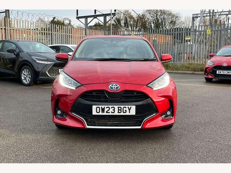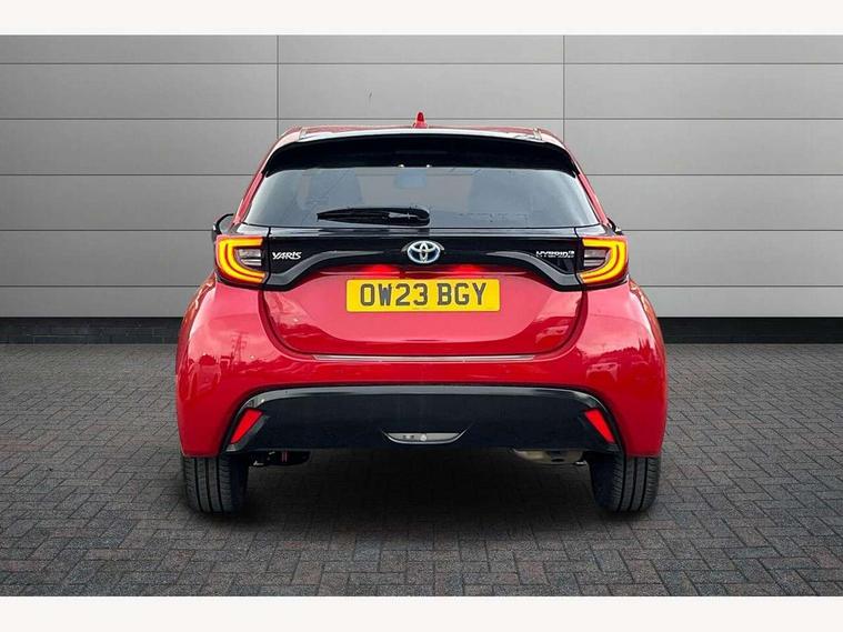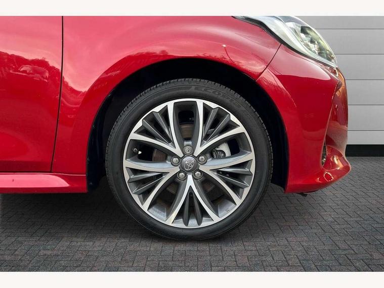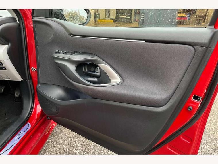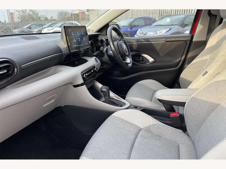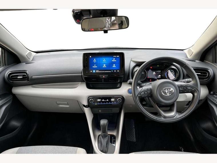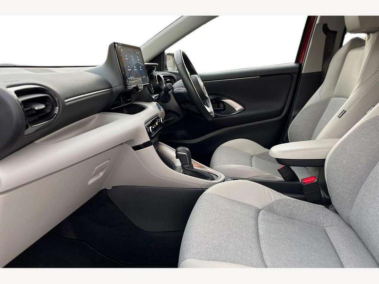 Adaptive cruise control, Adjustable speed limit with speed warning, Blind spot monitoring, Bluetooth connectivity, Colour binocular inspired displays with digital speedometer, E-call, Electric power steering, Hybrid energy display, Multi information display switches on steering wheel, Reversing camera, Smartphone integration with Apple CarPlay and Android auto, Tailgate, Touch 2 navigation system, Voice recognition, Vehicle Stability Control (VSC), 6 speakers, 9" HD multimedia display touch screen with Toyota smart connect, USB connection, Acoustic windscreen glass, Auto windscreen wipers, Automatic headlights, Automatically retractable door mirrors, Body coloured door mirrors, Electric adjustable heated door mirrors, Follow me home headlights, Front auto power windows with anti jam protection, Full LED rear lights, LED daytime running lights, LED front fog lights, LED front light guide, LED Headlights, LED High mounted stop lamp, LED Indicators, LED rear light guide, Manual headlight levelling, Painted chequered front grille, Rain sensor, Rear auto power windows with anti jam protection, Rear privacy glass, Rear side wing doors, Rear spoiler, Rear wiper, Satin lower front grille, Shark fin antenna, Turning signal integrated indicators in door mirrors, Variable front intermittent wipers, 3 adjustable rear headrests, 3 seat bench in 2nd row, 3 spoke leather steering wheel, 60/40 split folding rear seat, Active headrests, Adjustable boot height, Coat hooks in rear grab handles, Cup holders (2 front & door), Data Communication Module (DCM) connected services, Dual zone automatic air conditioning, Fabric seat with partial synthetic leather upholstery, Front armrest, Front sport seats, Glovebox, Grey roof lining, Height adjustable driver's seat, Height adjustable passenger seat, Isofix seat fixing, Leather gearshift, Map pockets on the backs of the front seats, Pollen filter, Shopping bag hooks, Single front passenger seat, Tilt/telescopic steering column, Parking pack - Yaris, 3 point seatbelts on all rear seats, ABS+EBD+Brake assist, Electronic parking brake, Emergency brake light system (EBS), Front passenger airbag on/off switch, Front seatbelt reminder, Hill start assist control (HAC), Rear child proof door locks, Rear seat belt reminder, Supplemental Restraint System (SRS) 8 airbags: Driver & passenger's airbags, dual side curtain airbags, side impact airbags, front centre airbag, Toyota Safety Sense 2, Precollison + Night time Pedestrian & Cyclist Detection, Lane Trace Assist, Auto High Beam, Intelligent ACC & Road Sign Assist, Tyre pressure warning system, 2x Master key, Alarm/immobiliser, Keyless smart entry with push button start, Remote AC via MyT, Remote locking via MyT, Remote powered central double locking doors, Satin chrome interior styling, Soft touch instrument panel, Space saver spare wheel,