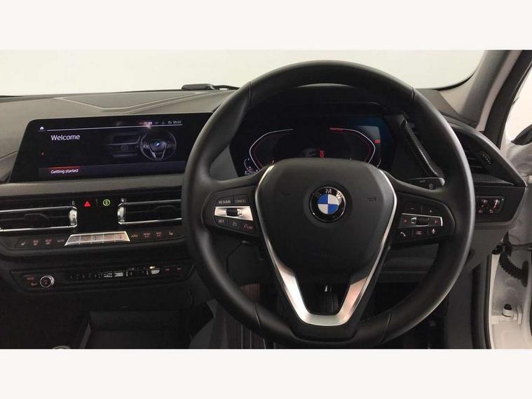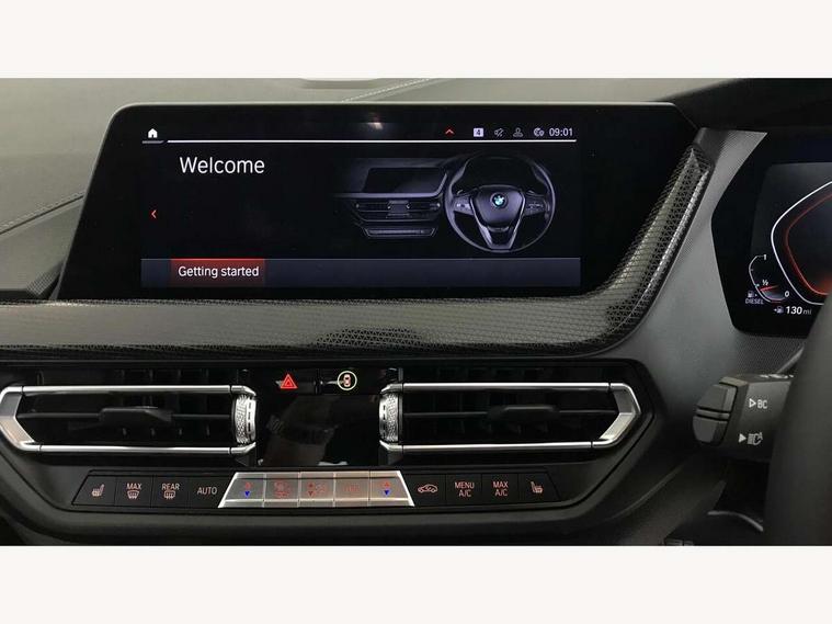 Active guard plus, Attentiveness assist, BMW Online services, BMW Teleservices, Check Control warning system for monitoring of lights and door/luggage compartment open warning, Connected eDrive Services, Cruise control with brake assist, Eco pro mode, Electric power steering with Servotronic steering optimised at all speed ranges, Integrated owners handbook, Lane departure warning system, Oil sensor for level and grade, On board computer, Optimum shift indicator, Personal Profile, Pull away assistant, Speed limiter, 6 speed manual transmission, Aluminium lightweight construction, Anti roll bar front and rear, Balancer shaft, Diesel particulate filter, Drive Performance Control, Electronic differential lock, Bluetooth audio streaming, DAB Digital radio, Auto dimming rear view mirror, Body colour door handles, Body colour mirror caps, Chrome exhaust tailpipe in single, round (Exhaust tailpipe, stainless steel - single, round), Chrome kidney grille with extra wide black, high gloss black vertical slats, Direction indicator side lights in exterior mirrors, Fading support, Follow me home headlights, Front and rear electric windows with open and close fingertip control, anti trap facility and comfort closing, Front bumper in Body colour with exclusive Sport air inlets finished in High gloss Black, Front door sill finishers in black plastic with BMW designation, Green tinted heat protection glazing, Heated, electrically adjustable exterior mirror aspheric on driver side, convex on passenger side, High gloss shadow line exterior trim, High level third brake light, LED daytime running lights, LED eyebrow turn indicators, LED front fog lights, Lightweight engineering, Manual headlight beam throw control, Matt black air guide grilles, Matt black roof moulding, B pillar finisher and wheel arch trim, Matt black window frame, Model designation on right side of tailgate, Nearside reverse light in rear light cluster, Preparation for high beam assistant, Rain sensor including auto headlights activation, Rear bumper in Body colour with exclusive Sport design elements finished in High gloss Black, Rear fog lights, Rear window wiper, Shark fin antenna, Visible VIN plate, Welcome lighting, Windscreen wipers with integrated washing jets, 12V power socket in centre console, 2 cupholders in front centre console, 3 rear seat head restraints, 3 spoke sports leather steering wheel in pearl Chrome, Child seat ISOFIX attachment for two outer rear seats and front passenger seat with anchorage points, Conditioned based service, Driver side folding compartment in instrument panel, Folding rear clothes hook, Folding rear seats, Four grab handles integrated in roof lining, Front and rear door pockets, Front and rear side armrest integrated into door trim, Front armrest foldable with integrated storage compartment, Front sports seats with electric side bolster adjustment, Glove compartment, Height adjustable front head restraints, Manual adjust steering wheel, Multi-function controls for steering wheel, Rear seat backrest with manual 60:40 split folding with 3 top tether clips integrated on rear of seat panels, Storage compartment in centre console, Sun visors with vanity mirrors and insert tab, Two zone automatic air conditioning, Velour floor mats, Connected pack professional - 1 Series, Extended storage pack - 1 Series, Interior lights pack - 1 Series, 2 tone horn, 3 point seatbelts on all seats, front pyrotechnic belt tensioners, stopper and belt force limiters, rear coded belt buckles, Airbags - Front driver and passenger, front and rear head, front side, curtain head protection, Anti lock braking system (ABS) with brake assist, BMW emergency call, Brake drying, Braking readiness, City braking function, Crash sensor activating central locking release, hazard warning lights, fuel cut off, interior lighting + activation of safety battery terminal clamp, Driver and front passenger seat belt security check, Dynamic stability control + (DSC+), Dynamic Traction Control - DTC, Electrically operated hand brake, Front and rear disc brakes, Front passenger manual airbag deactivation, Rear child proof door locks, Seatbelt warning, Side impact protection, Tyre pressure monitoring system, Warning triangle and first aid kit, Automatic drive away locking facility, Central locking switch for all doors, fuel filler cap and luggage compartment, Deadlocking function system to all doors, Incorrect fuel protection system, Locking wheel bolts, Remote central locking with two Integrate key, one button for opening and closing all lock, open and close window, button for open luggage compartment, Start/stop button with comfort go keyless engine start and auto start stop deactivation button, Thatcham Cat.1 alarm and immobiliser, Contrast stitching on instrument panel, Illuminated Berlin interior trim, Reduced rolling resistance tyres,