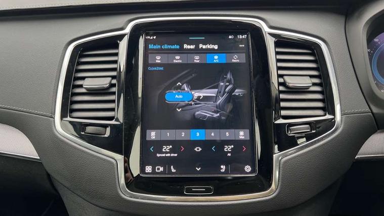 12.3" Progressive Driver Display, 360 degree surround view parking camera with side proximity sensors, 9" centre console portrait touch screen, Adjustable steering wheel force, Bluetooth hands free telephone connection, Driver alert control with lane keeping aid, Driver assistance (pilot assist and adaptive cruise control), Driver awareness - Blind spot information system with steer assist, cross traffic alert with autobrake and rear collision warning and mitigation, Emergency call service, Front and rear park assist, Google Automotive Services - Navigation with Voice recoginition and google assistant, Handsfree power tailgate opening and closing, Oncoming Lane Mitigation, Power operated tailgate, Service interval indicator, Speed limiter, Speed sensitive steering, Trip computer, Volvo on call, Wireless Mobile Phone Charger, 8 speed automatic transmission with start/stop + manual change functions, Touring chassis, DAB Radio (Digital Audio Broadcasting), Premium Sound by Harman Kardon, dirac unison, dolby pro logic II surround sound, 13 speakers/600W output and fresh air subwoofer, Steering wheel remote infotainment controls, Active bending headlights with adaptive shadow technology, Adaptive brake lights with high level LED brake lights, Auto dimming interior + exterior mirrors, Auto folding and heated power door mirrors, Automatic headlight levelling system, Automatic LED Headlights + Active high beam incorporating daytime running lights, Body colour bumpers, Front and rear power windows, Headlight cleaning system, Heated front windscreen, High gloss black door mirrors and window surround, High gloss black front and rear bumper deco, High gloss black mesh front grille with surround, Home safe and approach lighting, Integrated roof rails in high gloss black, LED front fog lights with cornering light function, Power glass tilt and slide panoramic sunroof with sun curtain, Puddle lights, Rain sensor with automatic windscreen wiper activation, Rear side wing doors, Rear wash/wipe with intermittent wipe setting, Roof antenna, Roof spoiler, Visible VIN plate, 12V socket front tunnel console, rear passenger compartment and cargo area, 2 seat bench in 3rd row, 2nd Row centre armrest with and cupholders, 3 seat bench in 2nd row, 4 zone electronic climate control with Clean zone air quality system + pollen filter, A-pillar parking ticket holder, Advanced interior air cleaner PM2.5, Air conditioning for 3rd row of seats, Ambient door and instrument panel lighting, B Pillar ventilation, Bright metal luggage threshold, Centre console cupholders and storage, Floor mats, Front and rear door pocket and front cupholder illumination, Front and rear reading lights, Theatre lighting and centre armrest storage illumination, Front footwell and side step illumination, Front headrests, Front seat cushion extensions, Heated front seats, Heated rear seats, Heated steering wheel, Height/reach adjustable steering column, Illuminated front and rear tread plates, Illuminated luggage compartment, Illuminated tailgate, Illuminated vanity mirrors + ticket holder, Illumination lockable glovebox compartment, Integrated sun curtains in rear doors, Isofix outer rear child seat preparation in 2nd row, Load protection net, Luggage compartment divider with grocery bag holder, Outboard armrest with cupholder and storage for third row passengers, Power driver seat with multi directional lumbar support and memory for seat and exterior mirrors, Power folding 2nd row headrests, Power passenger seat with multi directional lumbar support and memory, Rear footwell and side step illumination, Rear headrests, Semi automatic load cover, Single front passenger seat, Underfloor luggage compartment storage, 7 three point seatbelts, City safety with steering support includes pedestrian, cyclist and large animal detection and front collision warning with full auto brake, Drivers knee airbag, Dual stage driver/passenger airbags, First aid kit, Front seats SIPS airbags, Hill descent control - off drive mode, Hill start assist, IC (Inflatable Curtains) - Full Length, Passenger airbag cut-off switch, Power child locks on rear doors, Power parking brake with auto hold function, Road sign information display, Run off Road Mitigation, Run off Road Protection, Seatbelt reminder and pretensioners for all seats, SIPS (Side Impact Protection System), Slippery road and hazard light alert, Stability and Traction Control with Spin control, Engine Drag Control and Corner Traction Control, Tyre pressure monitoring system, Vehicle deceleration control with Anti-lock Brake System, Electronic Brake Distribution and Emergency Brake Assist, Warning triangle, WHIPS whiplash protection system - front, Anti-theft alarm including immobiliser/volume sensor + level sensor, Care key with user defined top speed, Key integrated remote control central locking + fuel flap with deadlocking system and auto open/close power windows, Keyless drive includes keyless entry and keyless start, Locking wheel nuts, Private locking for glovebox and tailgate, Tailored Instrument Panel and Door Tops with Contrast Stitching, Tempa spare wheel and jack,