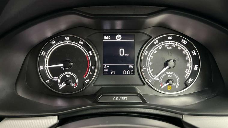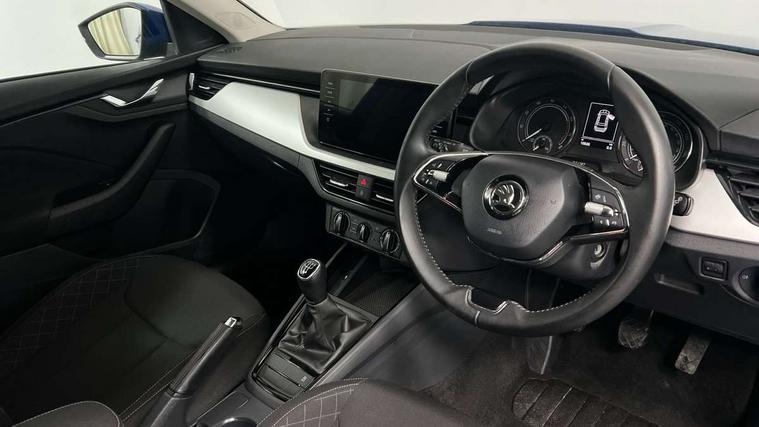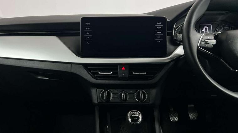 Amundsen satellite navigation with 9.2" glass colour touchscreen display, web radio, voice control and traffic sign recognition, Bluetooth system, E-call, Front assist system, Gesture control, PAS, Service indicator, Speed limiter, Wireless SmartLink for apple car play, android auto and mirrorlink, 8 Speakers, Auxiliary input socket, DAB Digital radio, Body colour bumpers, Body colour door mirrors and handles, Chrome grille surround, Dimming rear view mirror with black surround, Electrically adjustable and heated door mirrors, Front and rear electric windows, Headlight range control, Heated rear window, LED rear lights - low functionality, Light sensors, Privacy glass, Rear fog lights, Rear side wing doors, Rear wiper, 12V Accessory socket in centre console, 3 seat bench in 2nd row, Chrome inner door handles, Cloth upholstery, Front head restraints, Glove compartment with illumination, Height adjustable driver and front passenger seats - manual, Ice scraper, Isofix child seat fittings on outer rear seats, ISOFIX on front passenger seat, Manual lumbar support for front seats, Rake/reach adjustable steering wheel, Reading lights, Single front passenger seat, Sun visors with illumination on front passenger, Textile floor mats, Third rear headrest, Top tether for front passenger seat, Umbrella in driver's door, 3x3 point rear seatbelts, Airbags - driver and front passenger, ESP, Front passenger airbag deactivation switch, Front side airbags with curtain airbags, Hill hold control, Manual parking brake, Manual rear child locks, One tone horn, Rear disc brakes, Seatbelt reminder for driver an co-driver, Traction control, Tyre pressure monitor, Anti-theft alarm system with interior monitoring, backup horn, towing protection and remote central locking with SAFE system, Anti-theft wheel bolts, Electronic engine immobilizer, Silver haptic decorative insert on the dashboard with hot stamping in glossy black,