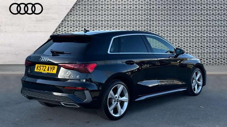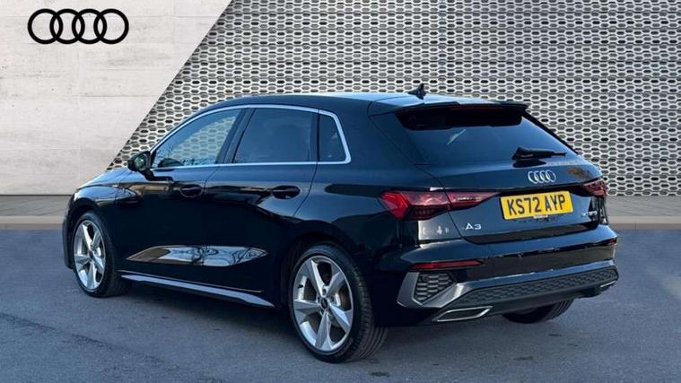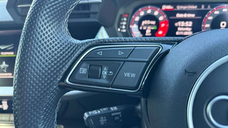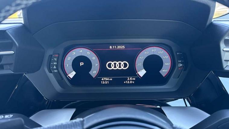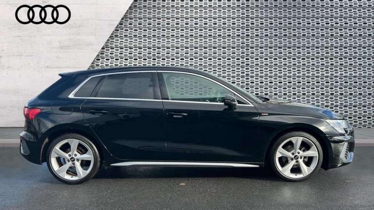 Audi drive select (Auto, Comfort, Dynamic and Individual), Audi smartphone interface, Audi Virtual Cockpit - 10.25" digital and colour instrument cluster, Automatic start/stop system with recuperation, Bluetooth interface, Collision avoidance assistant, e-Call (emergency call), Electromechanical power speed sensitive steering, Lane departure warning system, MMI Navigation Plus with high resolution 10.1" colour touch screen display, Service indicator, Trip computer, Voice control system with natural language interaction, 2xUSB-C connection with data and charging functions, 6 passive loudspeakers, DAB Digital radio, 3rd brake light, Acoustic glass windscreen, Aluminium window trim, Auto dimming frameless rear view mirror, Electrically adjustable/heated/folding/dimming door mirrors with kerb view includes integrated LED indications + kerb view function for passenger side, Front electric windows, Illuminated aluminium inserts front door sills with S logo, LED daytime running lights, LED headlights with LED rear lights and dynamic rear indicators, Light and rain sensors, Privacy glass - dark tinted rear window, rear door and side windows, Rear electric windows, Rear side air outlets in grained matt black, Rear side wing doors, Rear wiper, S line bumpers, S roof spoiler, 12V socket and storage compartment in front centre console, 3 seat bench in 2nd row, 40/20/40 split folding rear seat bench with cupholder, Black cloth headlining, Dual zone electronic climate control, Front and rear centre armrest in leather, Front and rear headrests, Front/rear floor mats, Height and reach adjustable steering wheel, Illuminated vanity mirror, Interior lighting - glove compartment light and right hand side, Luggage compartment floor covering, Manual boot compartment lid, Manually adjustable front seats, Seat side bolsters, Single front passenger seat, Stainless steel pedals and front footrest in black, Twin leather upholstery with front sports seats S embossed logo, Aluminium interior elements pack - A3 Sportback, LED interior lighting pack - A3 Sportback, S line styling pack - A3 Sportback, 3x3 point rear seat belts, Audi pre sense front, Driver and front passenger airbag with passenger airbag deactivation, Electronic Stabilisation Control (ESC) including ABS, ASR and EDL, First aid kit with warning triangle and 2 safety vests, Front side airbags with head airbags and interaction airbag, Pre-sense front with pedestrian and cyclist detection, Seatbelt monitoring, Tyre pressure loss indicator, Anti theft alarm, Anti-theft wheel bolts, Electronically operated child lock, Immobiliser, Remote control central locking, Accent surfaces in the dashboard and centre console in platinum grey silk effect paint finish, Dark spectrum aluminium inlays,