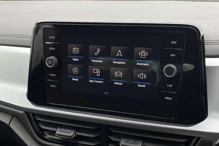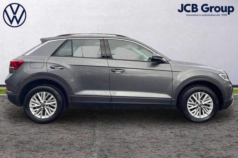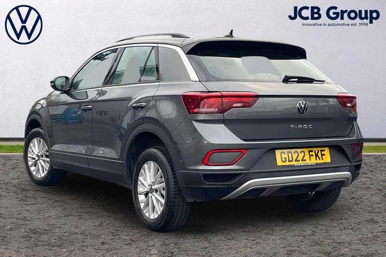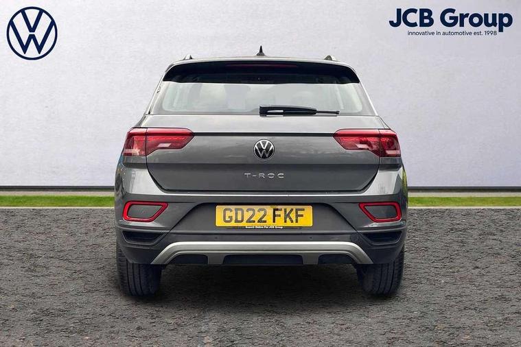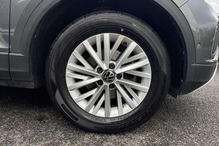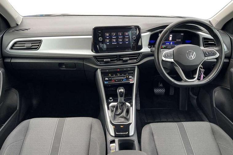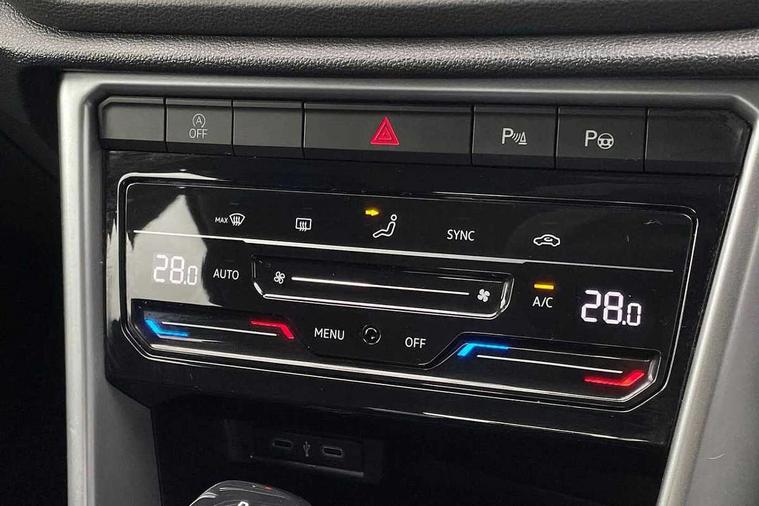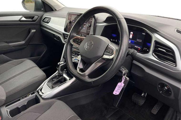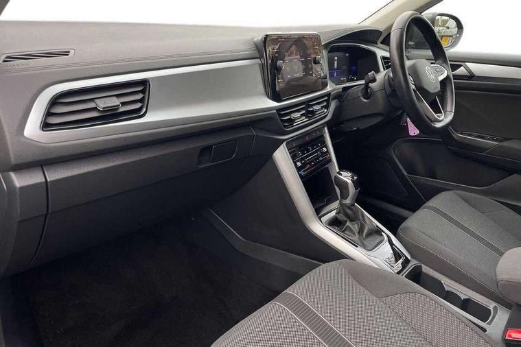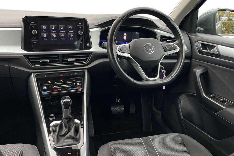 Bluetooth mobile phone interface, Driver alert system with fatigue detection, Driver tips and journey analysis, Emergency call service, Lane keeping system Lane Assist, Modified key software - reduce switch off time for key status change to Long no motion, Online services, Park assist including front and rear parking sensors, Power assisted speed sensitive steering, Service interval indicator, Tailgate/trunk lid release from outside, Think blue trainer driver tips and journey analysis, Warning sound and light for front seatbelts unfastened, Wireless app connect, Battery regeneration during braking, Front shock absorption, Rear shock absorption chassis with increased ride height, Start/stop function with battery regeneration, DAB Digital radio, Diversity antenna for FM reception, Front and rear 6 speakers, Music playback - MP3, WMA and AAC files, Premium USB cable in choice of either Apple or Android smartphone compatibility, SD card slot, Simultaneous pairing of 2 compatible mobile devices, Title and cover art display, We Connect and We Connect Plus functionality, 3rd brake light, Auto dimming interior rear view mirror, Automatic hazard lights activation under emergency braking, Automatic headlight control with LED separate daytime running lights with coming/leaving home function, Black roof rails, Body coloured bumpers and radiator grille with chrome trim and front fog lamps with chrome bezel, Body coloured exterior mirror housings and door handles, Extended roof spoiler, Exterior mirrors aspherical on driver side, convex on front passenger side, External USB type C socket and charging sockets, Front windscreen wiper with intermittent wipe and 4 position delay, Heated rear window, LED Headlights, LED rear combination lamps, LED rear number plate lights, LED tail lamp rear comination lamps, Power windows with comfort operation and circuit breaker, Rain sensor, Rear exhaust tailpipe, Rear fog light on one side and reversing lights on both sides, Rear side wing doors, Rear wash/wipe with intermittent wipe setting, Remote electrically foldable door mirrors, puddle lights and reverse activated passenger's door mirror, 12V power socket in centre console, 3 rear head restraints, 3 seat bench in 2nd row, 4 load lashing points in luggage compartment, Air care climatronic air conditoning system with active combination filter and 2-zone temperature control, Ambient lighting with mirror logo projection, Cloth upholstery, Door and side trim panel in cloth, Drawer under drivers seat, Driver/front passenger seat height adjustment, Front centre armrest, Front comfort sports seats, Front cupholders x 2, Front reading light, Instrument lighting, white adjustable panel illumination, Interior light delay, Isofix child seat preparation, Leather gearshift handle, Load-through provision with cup holder when folded down ('Unsplit rear seat bench, split folding backrest, with centre armrest), Luggage compartment lighting, Lumbar support for driver's and front passengers seat, Non-folding front passenger seat backrest, Single front passenger seat, Storage compartment in left and right luggage area, Storage compartment in rear doors, Storage compartments in driver and front passenger doors, Sunvisors with illuminated vanity mirrors, Variable boot floor, height adjustable and removable, Driver assistance pack without proactive passenger protection - T-Roc, 3 point height adj front seatbelts + pretensioners, 3 point seatbelts in outer rear with ECE label, ABS, Child locks on rear doors, Driver and front passenger airbag with front passenger airbag deactivation, Driver and front passenger safety-optimised head restraints, Drivers seatbelt reminder, Electronic parking brake, Electronic Stability Control (ESC) inc EDL (Electronic Differential Lock) and ASR (Traction Control), Front and rear passengers curtain airbag system including front side airbags, Front assist with city emergency braking and pedestrian monitoring, Front disc brakes, Front seat side impact airbags, Hill start assist, Predictive pedestrian protection, Rear disc brakes, Single tone horn, Tyre pressure loss indicator, Volkswagen roadside assistance, Alarm with interior protection, Anti-theft alarm system with interior monitoring, backup horn, and towing protection, Remote central locking with SAFELOCK, radio remote control with 2 remote control folding keys, Pewter matt decorative inserts for intrument panel, centre console and door panels at the front, Trims for alloy wheels,