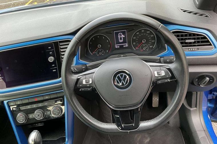 8" colour touch screen, Adaptive cruise control, Bluetooth telephone and audio connection for compatible devices, Brake pad wear indicator, Car information display, Car-Net Security and Service, Driver alert system with fatigue detection, Driver tips and journey analysis, Dynamic road sign display, Emergency call service, Lane assist with warning text instrument cluster, Mobile phone interface, Modified key software - reduce switch off time for key status change to Long no motion, Multifunction computer with visual gear change recommendation for fuel consumption, Navigation system discover media including streaming and internet, Online services, Power assisted speed sensitive steering, Speedo and rev counter, electronic odometer, trip, service interval display, digital clock and fuel gauge, Start/stop system with brake energy recovery, Tailgate/trunk lid release from outside, Warning sound and light for front seatbelts unfastened, Wired and wireless app connect, Bluetooth - Simultaneous pairing of 2 compatible mobile devices, DAB Digital radio, Diversity antenna for FM reception, Music playback - MP3, WMA and AAC files, SMS functionality - read, compose and send SMS messages using touch-screen display, Title and cover art display, USB-C Interface and USB charging socket, WeConnect plus, Auto dimming interior rear view mirror, Automatic coming/leaving home lighting function and daytime running lights, Automatic hazard lights activation under emergency braking, Body colour rear roof spoiler, Body coloured bumpers and radiator grille with chrome trim and front fog lamps with chrome bezel, Body coloured exterior mirror housings and door handles, Chrome effect left and right trapezoid exhaust tailpipe fascia surround, Chrome trim on upper and lower radiator grille, Dusk sensor, Electrically power adjustable, heated, folding, auto dimming, front passenger exterior door mirror lowering function, Front and rear electric windows, Heat insulating glass windscreen, High level 3rd brake light, LED rear number plate lights, LED tail lamp rear comination lamps, Power operated canvas convertible top, Rain sensor, Rear exhaust tailpipe, Rear fog lamp, Volkswagen roundel, Windscreen wiper with intermittent wipe light, 12V socket in centre console storage area, 2 front reading lights, 3 spoke leather wrapped multifunction steering wheel, 50/50 rear seat bench split folding rear seat backrests, Activated charcoal canister for intensified evaporation system, Black door lower parts with chrome trim, Chrome plated surround to light, mirror and window switch, Climate control - 2 zone electronic air conditioning with automatic air recirculation and allergy filter, Entry aid easy entry (Front folding seats), Front + rear carpet mats, Front centre armrest, Front comfort seats with manual height adjustment, Front cupholders x 2, Front seat back storage pockets, Glove Compartment with light, Height/reach adjust steering wheel, Illuminated vanity mirrors in sun visors with air bag label on sun visor and b-pillar, Instrument lighting, white adjustable panel illumination, Interior light delay, Interior light in footwell, Isofix easy fit child seat preparation for 2 outer rear seats, Luggage compartment lighting, Rear head restraints, Standard pedal cluster, Storage compartments in driver and front passenger doors, White ambient lighting, 2 x 3-point rear seat belts, ABS, Autonomous emergency braking, Driver and front passenger safety-optimised head restraints, Drivers and front passengers airbags with passengers deactivation switch, Drivers seatbelt reminder, Electronic parking brake with auto hold, Electronic stability control (ESC) includes ASR, EDL, EDTC and trailer stabilisation function, Front assist with city emergency braking and pedestrian monitoring, Pedestrian monitoring, Predictive pedestrian protection, Rigid safety cell with front and rear crumple zones, Side airbag/thorax airbag system, for front passengers, Single tone horn, Three point height adjust front seatbelts + pretensioners, Tyre pressure loss indicator, Tyre pressure monitor, Ventilated front and rear disc brakes, Volkswagen roadside assistance, Alarm with interior protection and deactivation via infotainment system, Electronic engine immobiliser, Dashboard unicolour out of hard material including decorative insert 1st line different colours chooseable, Silver silk decorative inserts in dash and front door panels,