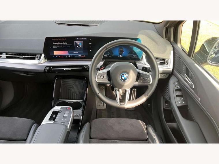 Active Guard, Attentiveness assist, Automatic powered tailgate, Automatic start/stop function, BMW Online services, BMW Operating system 9 with BMW Maps, real-time traffic information, in-car experiences, remote services and smartphone integration, BMW Teleservices, Brake pad wear indicator in front and rear, Condition based service, ConnectedDrive Services, Drive off assistant, Flat air vents on instrument panel in high gloss black, adjustable slats with elements in pearl chrome, iDrive controller, Instrument cluster with speedometer with miles per hour read out, tachometer and fuel gauge, Language version English, On board computer - average speed+fuel consumption, service interval, clock/date, odometer/trip meter, outside temperature display and ice warning, Parking assistant with active park distance control, reversing assistant, lateral parking aid and rear view camera, Servotronic variable electric power steering (EPS), Widescreen display, Wireless charging, Drive performance control with ECO PRO comfort + sport mode, eDrive exterior sound, Gear selector switch with toggle operation, M Adaptive suspension, Mode 3 charging cable, Performance Control, Petrol Particulate Filter, Steptronic transmission with double clutch and gear shift paddles, 2x USB Type C ports in front centre console for charging and data transfer, 2x USB Type C ports in rear centre console for charging, DAB Digital radio, Personal eSim, Welcome sound upon opening of the front driver or passenger door, Air inlet middle part on front apron in lines specific design with trim strip in satinised aluminium, Automatic headlights, Black rear bumper trim strip, BMW emblem, engine compartment lid and tailgate, Body colour roof mouldings, Body coloured door mirror caps, Contoured rear roof spoiler in vehicle colour with side aeroblades in black high-gloss, Driver side exterior mirror lighting with BMW logo projection, Dynamic brake lights, Electric adjustable heated door mirrors, Electric windows - front and rear, with open/close fingertip control, anti-trap facility and comfort closing, Folding door handles integrated flush with surface, Front and rear windscreen wipers with heated front washer nozzles, Front bumper cover with independent design in body colour with inserts in black high gloss, Front bumper design elements in satinised aluminium, Front door exit lights, Front door sill finishers aluminium inserts with M inscription, Front entry sills with aluminium inserts + BMW inscription, Front oramental grille with radiator grille bars in satinised aluminium, Heated rear window, Hidden exhaust pipe, High gloss shadow line, Home light, Key with M identification, LED Daytime running lights and parking lights with turn indicators, LED number plate light, LED third brake light in rear spoiler, M identification on sides, Manual headlight range control, Model inscription on right tailgate, Rain sensor, Rear bumper cover with independent design in body colour with inserts in black high gloss, Rear side wing doors, Shark fin antenna, Side sill covers with independent design in Body colour, Trailer stabilisation logic, Trims on front and rear bumper covers colour-coordinated with side window graphic, Visible VIN plate, Welcome lighting, Windscreen washer nozzle for rear view camera, 12V power socket in luggage compartment and front centre console, 12V socket in right side trim panel, 2 bag hooks in luggage compartment, 2 front reading lights, 2 open cup holders in front centre console, 2 x USB Type C ports for charging in front centre console + 2 x USB Type C ports for charging in rear centre console, 3 seat bench in 2nd row, 40:20:40 split folding rear seats with backrest, Ambient lighting front and rear, Automatic two zone climate control air conditioning, Bottle trays in all doors, Child seat ISOFIX attachment for two outer rear seats and front passenger seat with anchorage points, Driver and front passenger sports seats, Embellishers on steering wheel spokes in pearl chrome, Four grab handles integrated in roof lining, Front and rear door pockets, Front and rear footwell lighting, Front and rear side armrest integrated into door trim, Front centre console storage compartment, Front head restraints, Glovebox with light, Heated front seats, Height adjustable 3 rear head restraints, Illuminated wireless charging tray, Interior door handle recess light on all doors, Luggage compartment lighting, M Anthracite headlining, M specific floor mats, M sport leather steering wheel, Manual adjustment of seat height, fore/aft position, seat depth, backrest tilt and head restraint height, Map pockets, Mechanical rear seats with fore/aft adjustment, Middle centre console storage compartment, Multi-function controls for steering wheel, One piece parcel shelf opens together with tailgate and removable, Rear cloth hooks, Single front passenger seat, Stainless steel pedals, Steering wheel column manual adjustment, Storage compartment lighting in centre console and storage tray in centre stack, Storage compartment net in left side trim panel, Storage compartment with folding cover under centre console armrest cushion, Sunvisors with illuminated vanity mirrors, 3 point seatbelts on all seats, front pyrotechnic belt tensioners, stopper and belt force limiters, rear coded belt buckles, Acoustic protection for pedestrians, Airbag - Front driver and passenger, front and rear head, front side, curtain head protection, manual deactivation of front passenger airbag possible, Anti lock braking system (ABS) with brake assist, Automatic hold function, BMW emergency call, Brake drying, Braking readiness, Child proof locking system in rear door, Cornering brake control, Crash Sensor - activates hazard/interior lighting + unlocks doors, DSC - Dynamic Stability Control, Dynamic brake control, Dynamic Traction Control - DTC, Electromechanical parking brake, Energy recovery system, Front disc brakes, Integrated braking system, PC iBrake PostCrash approach contro
