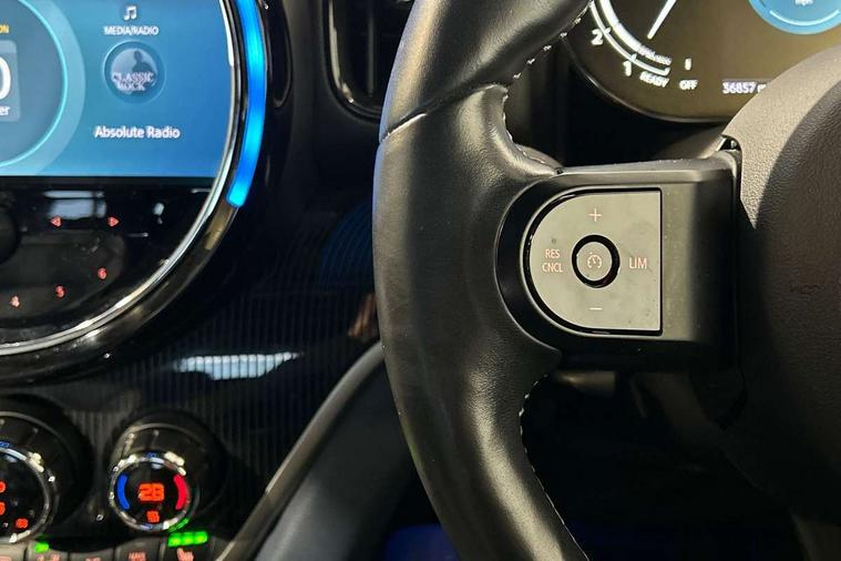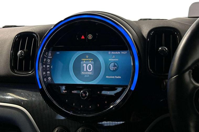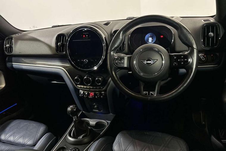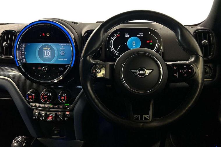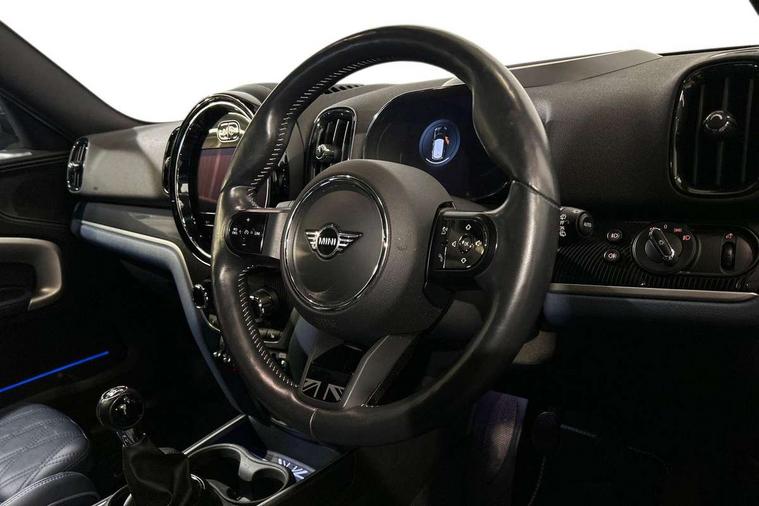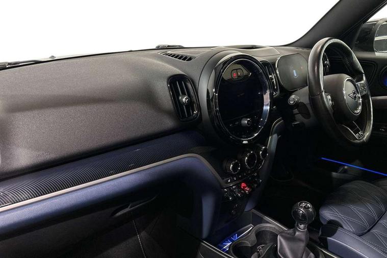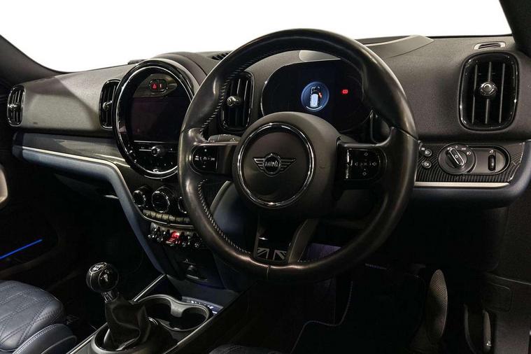 Active Guard incl speed limiting and lane departure functions with auto steering, and front collision warning with brake intervention, Automatic start/stop function with brake energy recuperation, Compatible mobile phone bluetooth with audio streaming, Electro-mechanical speed dependant steering assistance, Instrument cluster, On board computer, Rear parking distance control, 51 Litre fuel tank, 6 Speed manual transmission including gear change indicator display, Double Vanos system, Fully variable valve control, High precision injection, Performance Control, 6 speakers, FM tuner and DAB digital radio, Body colour fuel filler cap, Day time driving lights, Door sill strips, Dynamic brake lights, Electric windows, Heated rear window, Heated windscreen washer jets, LED fog lights, LED Headlights, MINI yours exterior badge in C-Pillar, driver and passenger side, Model logo, Model logo on Tailgate, Rain sensor with auto headlights, Rear fog lights, Rear window wiper, Side scuttle panel with integrated indicator, Split rear doors, Sun/heat protection glass, White indicator lenses, 12V socket in centre console, 360L luggage compartment capacity, 4 lashing eyes in luggage compartment, 40:20:40 split folding rear seats, Anthracite headlining with grab handles and clothes hooks, Chrome interior highlights, Colour line - Carbon black, Cupholders, English handbook, Front headrests, Glove compartment, Height and length steering column adjustment, Interior lighting with 12 basic colours selectable via toggle switch in roof, Isofix rear child seat preparation, Leather gearshift lever and handbrake gaiters, LED reading lights, vanity mirror lights, front foot well light and spotlight on front seats, Manual air conditioning, MINI Yours fine walk nappa leather steering wheel with contrast stitching in silver and MINI Yours badge, MINI Yours floor mats, Multifunction steering wheel, Rear headrests, Storage compartments in doors, Sunvisors with vanity mirrors, Excitement pack - Countryman, Navigation pack - Countryman, 2 tone horn, 3 point seatbelts on all seats, 6 Airbags - front, side, head and seat belt tensioners, Anti-lock braking system (ABS), DSC - Dynamic Stability Control, Electronic handbrake, Front and rear disc brakes, Hill start assist, Tyre pressure monitoring system, Alarm system with tilt sensor, monitoring doors, bonnet interior and tailgate, Auto drive away locking, Deadlocking function, Electronic vehicle immobiliser, Locking wheel bolts, Start/stop toggle with keyless go, Tool kit,