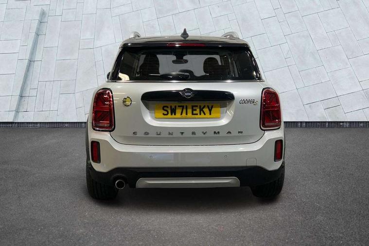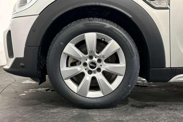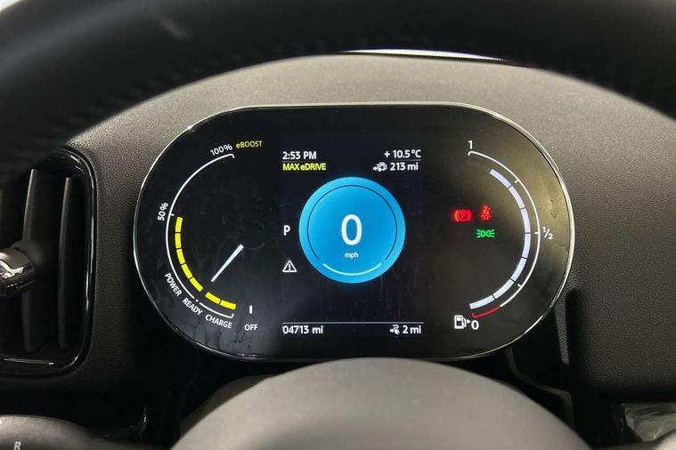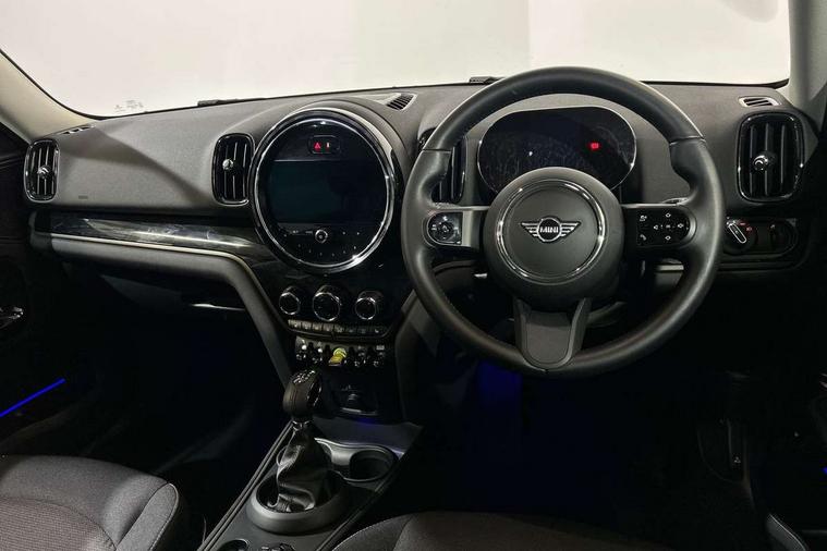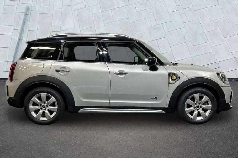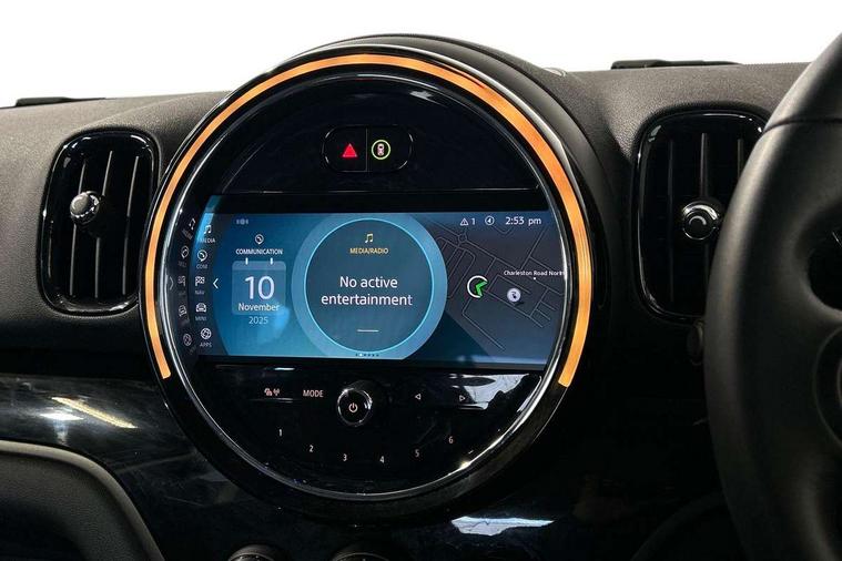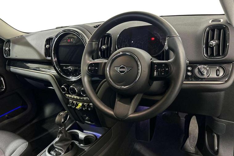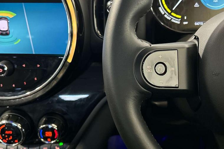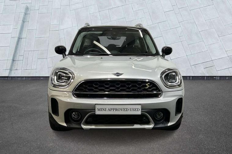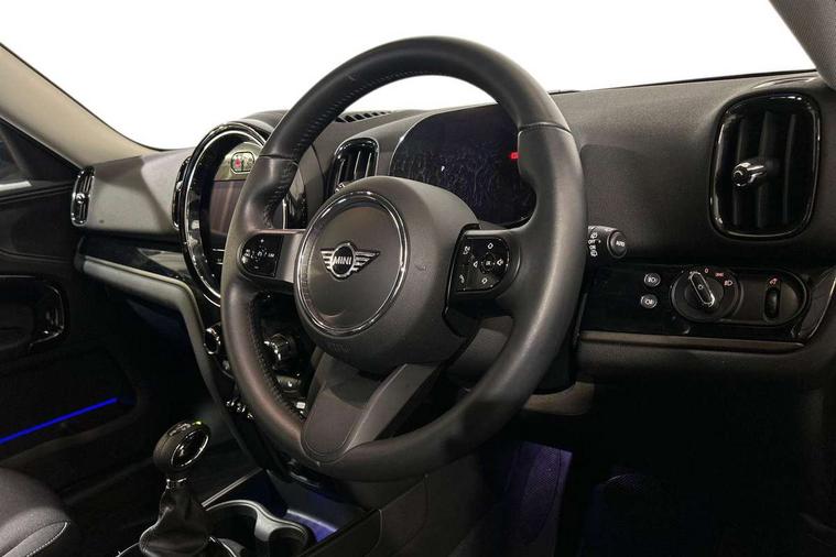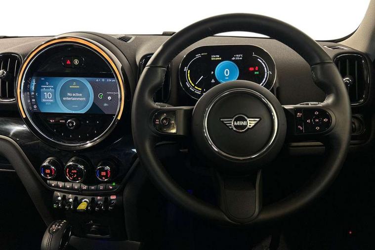 Active Guard incl speed limiting and lane departure functions with auto steering, and front collision warning with brake intervention, Automatic start/stop function with brake energy recuperation, Compatible mobile phone bluetooth with audio streaming, Cruise control with brake assist, eDrive button, Electro-mechanical speed dependant steering assistance, Instrument cluster, On board computer, Rear parking distance control, 36L fuel tank, Automatic transmission, Charging flap on front left lower A-panel, Double Vanos system, Fully variable valve control, High precision injection, Home charging cable, Performance Control, Public charging cable, FM tuner and DAB digital radio, Bonnet scoop, Chrome border honeycomb structure radiator grille with S badge, Chrome fuel filler cap, Day time driving lights, Dynamic brake lights, Electric windows, Heated rear window, Heated windscreen washer jets, LED fog lights, LED Headlights, Metal door sill strips with Cooper S imprint, Model logo, Model logo on Tailgate, Rain sensor with auto headlights, Rear fog lights, Rear window wiper, Side scuttle panel with integrated indicator, Split rear doors, Sun/heat protection glass, Twin exhaust tailpipe, White indicator lenses, 12V socket in centre console, 3 spoke sport leather steering wheel + limiter function and audio controls, 360L luggage compartment capacity, 4 lashing eyes in luggage compartment, 40:20:40 split folding rear seats, Chrome interior highlights, Colour line - Carbon black, Cupholders, English handbook, Floor mats, Front headrests, Glove compartment, Headliner with grab handles and clothes hooks, Height and length steering column adjustment, Interior lighting with 12 basic colours selectable via toggle switch in roof, Isofix rear child seat preparation, Leather gearshift lever and handbrake gaiters, LED reading lights, vanity mirror lights, front foot well light and spotlight on front seats, Manual air conditioning, Mechanical seat adjustment, driver seat height adjust, forward/back and front seats backrest, Multifunction steering wheel, Passenger seat height adjuster, Rear headrests, Storage compartments in doors, Sunvisors with vanity mirrors, Excitement pack - Countryman, Navigation pack - Countryman, 2 tone horn, 3 point seatbelts on all seats, 6 Airbags - front, side, head and seat belt tensioners, Acoustic pedestrian protection, Anti-lock braking system (ABS), DSC - Dynamic Stability Control, Electronic handbrake, Front and rear disc brakes, Hill start assist, Tyre pressure monitoring system, Alarm system with tilt sensor, monitoring doors, bonnet interior and tailgate, Auto drive away locking, Deadlocking function, Electronic vehicle immobiliser, Locking wheel bolts, Start/stop toggle with keyless go, Piano black interior trim, Tool kit,