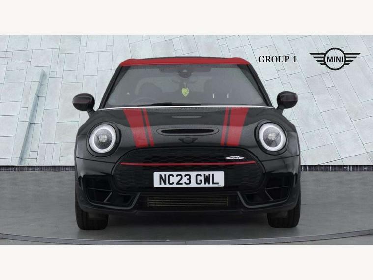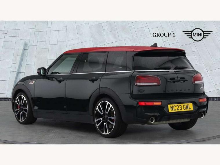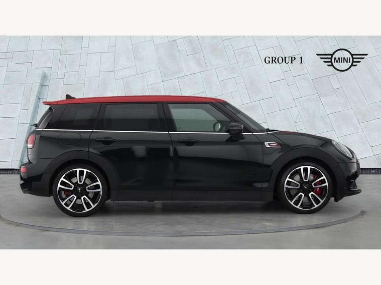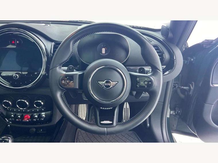 Active Guard incl speed limiting and lane departure functions with auto steering, and front collision warning with brake intervention, Automatic start/stop function with brake energy recuperation, Car sharing preparation, Compatible mobile phone bluetooth with audio streaming, Electro-mechanical speed dependant steering assistance, Instrument cluster, Mini E-call, MINI TeleServices, On board computer, 8 Speed steptronic sport transmission including electronic gear shifter and steering wheel paddles, All Wheel Drive (AWD), Double Vanos system, Fully variable valve control, High precision injection, Performance Control, FM tuner and DAB digital radio, Bonnet scoop, Chrome fuel filler cap, Dynamic brake lights, Electric windows, Heated rear window, Heated windscreen washer jets, John Cooper Works - aerodynamic kit (front and rear apron, spoiler), front and rear sport bumpers and part-painted side sills with door sill finishers, John Cooper Works entry sills, John Cooper Works rear spoiler, LED rear light with union jack design, Metal door sill strips with Cooper S imprint, Model logo on rear doors, Piano black exterior, Radiator grille piano black border with honeycomb structure in matt black with John Cooper Works logo above an individual grille struct in chilli red, Rain sensor with auto headlights, Rear fog lights, Rear side wing doors, Rear window wiper, Rear wing door, Side scuttle with MINI John Cooper Works logo in high gloss black with red border, Split rear doors, Sun/heat protection glass, Third brake light, Twin exhaust tailpipe, Variable front intermittent wipers, White indicator lenses, 12V Accessory socket in centre console, 3 seat bench in 2nd row, 360L luggage compartment capacity, 4 lashing eyes in luggage compartment, 60/40 split folding rear seat, Anthracite headlining with grab handles and clothes hooks, Chrome interior highlights, Cupholders, English handbook, Floor mats, Glove compartment, Height and length steering column adjustment, Interior lighting with 12 basic colours selectable via toggle switch in roof, Isofix rear child seat preparation, John Cooper Works leather gearshift lever and handbrake gaiter, John Cooper Works sports seat with integrated headrest, adjustable thigh support and John Cooper Works logo, LED reading lights, vanity mirror lights, front foot well light and spotlight on front seats, Multifunction steering wheel, Nappa leather steering wheel with JCW badge, Paddle shifts, Rubberised stainless steel pedals, Single front passenger seat, Storage compartments in doors, Sunvisors with vanity mirrors, Toolkit, Comfort plus pack with Park assist - Mini Clubman, Excitement pack - Clubman, Extended interior lighting pack - Mini Clubman, Navigation pack - Clubman, 17" front sport brake with 4 piston fixed calliper, 2 tone horn, 3 point seatbelts on all seats, 6 Airbags - front, side, head and seat belt tensioners, Anti-lock braking system (ABS), Child locks on rear doors, DSC - Dynamic Stability Control, Electronic handbrake, Front and rear disc brakes, Red brake callipers with John Cooper Works logo, Torsen mechanical limited slip differential, Tyre pressure monitoring system, Alarm system with tilt sensor, monitoring doors, bonnet interior and tailgate, Auto drive away locking, Comfort access system, Deadlocking function, Electronic vehicle immobiliser, Locking wheel bolts, Remote central locking, Start/stop toggle with keyless go,