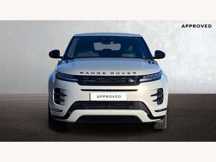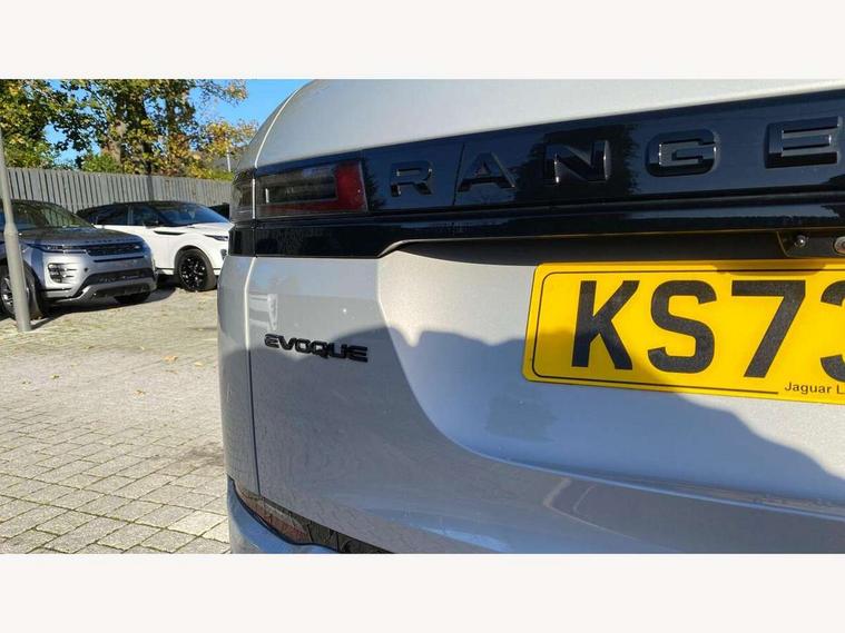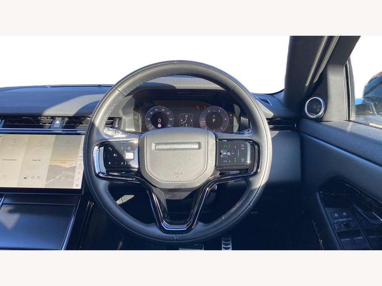11.4" touch screen, Adaptive cruise control, Android Auto, Apple car play, Blind spot assist, Bluetooth connectivity, Brake pad wear indicator warning light, Driver condition monitor, eCall emergency system, Eco mode, Electronic power assisted steering (EPAS), Front and rear parking aid, InControl remote, Interactive driver display, Land Rover InControl apps, Lane keep assist, Pivi pro connected includes diamond pivi variant, smart settings, connected navigation pro, nuance speech licence, Powered tailgate/boot lid, Rear collision monitor, Rear traffic monitor, Traffic sign recognition with adaptive speed limiter, Voice control system, Wireless device charging, All terrain progress control, Diesel exhaust fluid (DEF) large tank, Efficient Driveline, Large fuel tank, Passive suspension, Terrain Response 2, Digital Audio Broadcast radio-DAB, Steering wheel mounted controls, Acoustic laminated windscreen, Auto headlights, Automatic headlight levelling, Electric windows with one touch open/close and anti trap, Flush deployable exterior door handles, Front and rear recovery eyes, Front fog lights, Heated rear window with timer, Heated washer jets, Heated windscreen, Pixel LED headlights with signature DRL and LED tail Lights, Power fold, auto-dimming, heated door mirrors with approach lights and auto dimming driver side, Rain sensing windscreen wipers, Rear animated directional indicators, Rear fog lights, Rear side wing doors, Rear wiper, Side repeater indicators in mirror, Tailgate spoiler, Third brake light, Winter wiper park position, 14 way driver memory electric front seats with 2 way manual headrests + 4 way lumbar support, bolsters, 40:20:40 split folding rear seats with centre headrest and armrest, Ambient interior lighting, Bright metal pedals, Carpet mats, Chrome tread plates with range rover branding Includes stainless steel loadspace scuff plate with etched graphic, Customer configurable single point entry, Electrically adjustable steering column with memory function and easy entry/exit, Front and rear cupholders, Heated steering wheel, Isofix system on outer rear seats, Overhead lighting console, Overhead stowage for sunglasses, Passive front head restraints, Rear air vents, Rear head restraints, Satin chrome gearshift paddles, Single passenger seat, Sunvisors with illuminated vanity mirrors, Twin sliding front centre armrest, Online pack with data plan - Evoque, Power socket pack 2 - Evoque, 3 rear 3 point seatbelts, Anti-lock braking system (ABS), Brake hold function, Customer configurable autolock, DSC - Dynamic Stability Control, Electronic brake force distribution, Electronic parking brake, Electronic traction control, Emergency braking, Front and rear seatbelt reminder, Hill descent control, Hill launch assist, Low traction launch, Occupant protection assist, Passenger seat occupant detector, Power operated child locks, Roll stability control, Six airbags - Driver and passenger airbags/driver knee airbag/front side airbag and curtain airbags, Torque vectoring brake, Tyre pressure monitoring system, Alarm, Immobiliser, Intrusion sensor, Keyless entry, Locking wheel nuts,