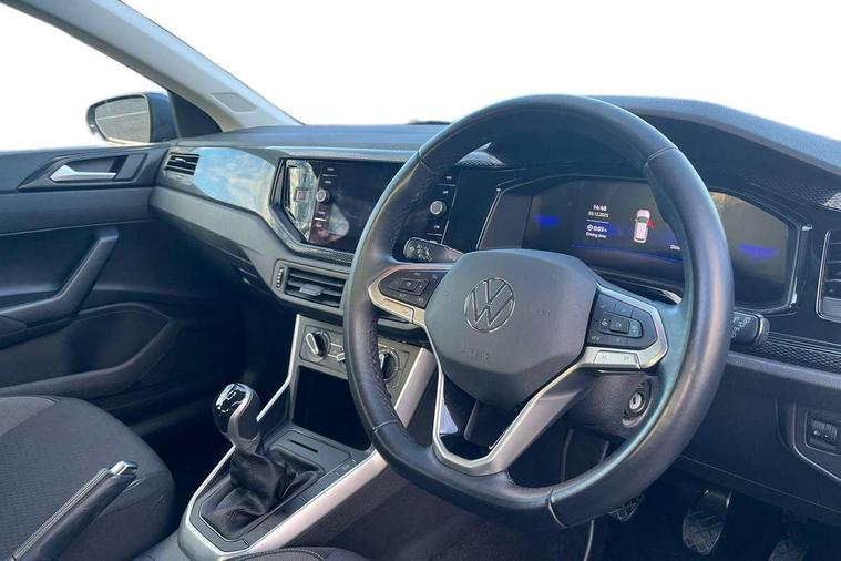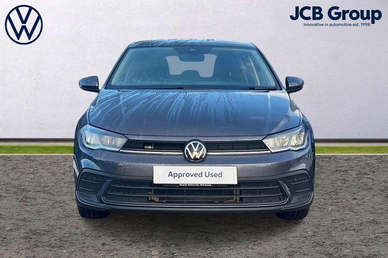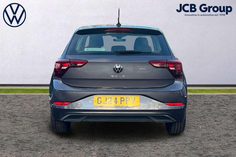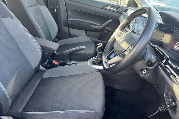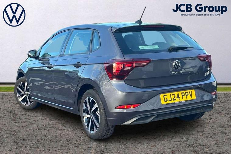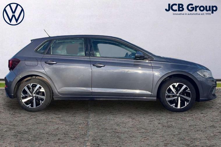 Adaptive cruise control without follow-to-stop and speed limiter, Advanced driver attention and drowsiness monitor, Bluetooth mobile phone interface, Dynamic road sign display, Emergency call service, Power assisted speed sensitive steering, Preparation for navigation system with media and internet package, Preparation for We connect and We connect plus, Speedo and rev counter, electronic odometer, trip, service interval display and exterior temperature gauge, Standard rear axle, Travel Assist - Lane keeping system and traffic jam assist, Travel assist including emergency assist, Trip computer, Warning signal and warning light for front and rear seatbelts not fastened, Washer fluid level indicator, Wireless app connect, Front wheel drive, Rear shock absorpion, Start-stop system with battery regeneration (recuperation - energy recovery during braking), DAB Digital radio, Diversity antenna for FM reception, Front and rear 6 speakers, Automatic dimming interior rear view mirror, Automatic headlight control with LED separate daytime running lights with coming/leaving home function, Body colour bumpers with chrome inserts, Body colour door handles, Body colour door mirrors, Electric front windows, Engine badge deletion, Headlight range adjustment, Heat insulating and laminated safety glass windshield, Heat insulating darkened glass in side and rear windows, Heat insulating glass windscreen, LED Headlights, LED rear combination lamps, Power folding adjustable/heated exterior mirrors and front passenger exterior mirror lowering function, Rain sensor, Rear electric windows, Rear fog light, Rear side wing doors, Rear windscreen washer and wiper with interval delay, Third brake light, 12V power socket in centre console, 2 front and 2 rear reading lights with switch off delay and dimmer, 2 USB-C ports in the front, 2 USB-C charging sockets on the center console in the rear, 3 rear head restraints, 60/40 split folding rear seat and rear seat bench not split, Ceramique roof lining, Chrome plated radiator grille inserts, air vent surrounds and light switch surrounds, Door and side trim panel, Driver and front passenger seat height adjustment, Driver/passenger sunvisors with illuminated vanity mirrors, Front centre armrest, Front seat backrest storage pockets, Front standard seats, Handbrake lever handle in leather, Hartley/Thomas cloth upholstery, Headliner in recycled material, Isofix child seat preparation easy-fit (for two outer rear seats, and front passenger seat) compatible with I-size, Leather trimmed gear knob, Luggage compartment cover, Luggage compartment lighting, Removable luggage compartment floor, Single front passenger seat, Standard climatic zones, Standard pedal cluster, Three spoke leather wrapped multifunction steering wheel, Light and vision pack - Polo, 3 point height adj front seatbelts + pretensioners, 3x3 point rear seatbelts, ABS, Driver and front passenger airbag with front passenger airbag deactivation, Drivers and front passengers safety optimised head restraints, ESC (Electronic stability control) + EDL (Electronic Differntial lock) and ASR (Traction control), Extended and predictive pedestrian/ cyclist protection, Front assist with autonomous emergency braking (for Adaptive Cruise Control ACC up to 130 mph), Front curtain and side airbags with center airbag, Front disc brakes, Hill hold control, Manual child lock in rear doors, Rear drum brakes, Single tone horn, Tyre pressure loss indicator, Alarm with interior protection, Anti-theft alarm system with interior monitoring, backup horn, and towing protection, Anti-theft wheel bolts, Electronic engine immobiliser, Lava stone black gloss/matt decorative inserts in dash and front door panels, Low rolling resistance tyres,