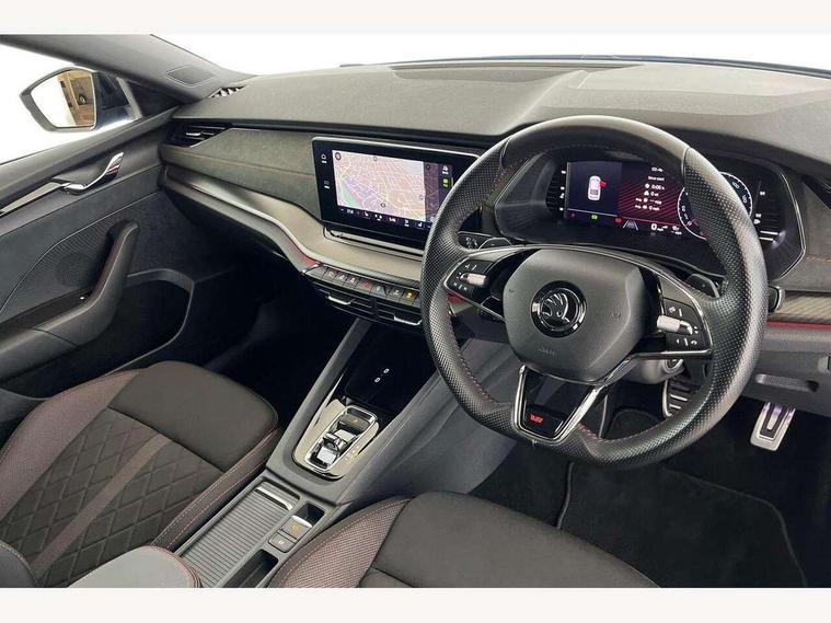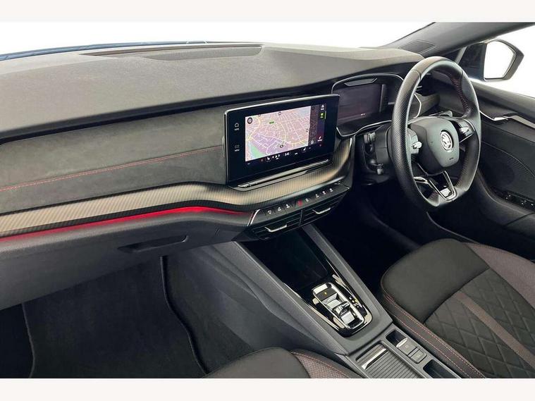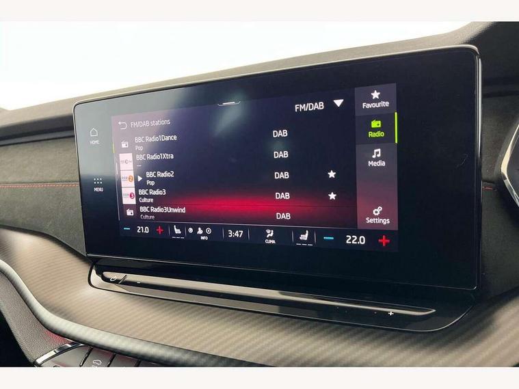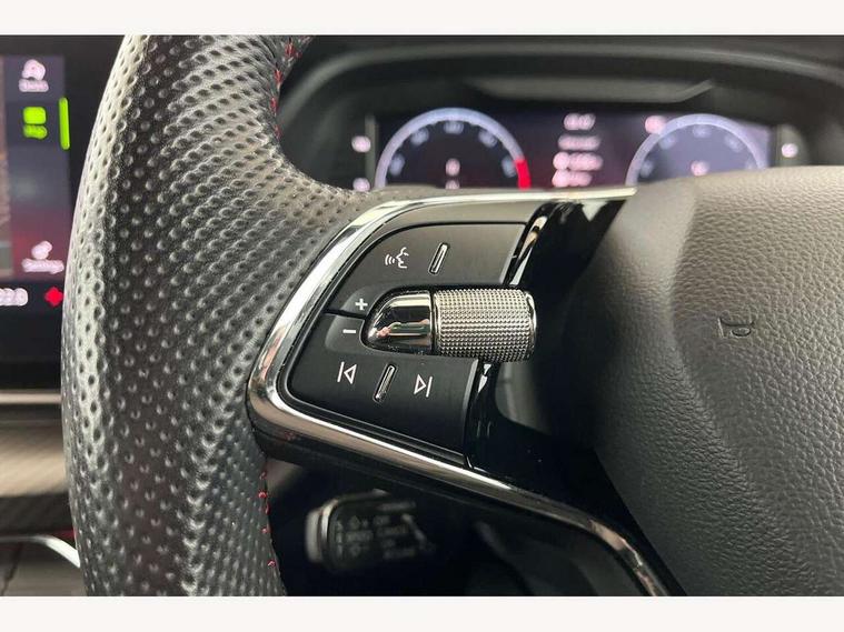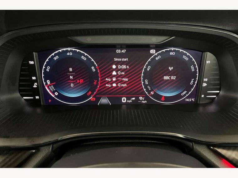 1x USB Type C port in rear view mirror (charging only), 2x USB Type C ports in rear of front centre armrest (charging only), Bluetooth system, Columbus satellite navigation with 10" touchscreen display, Driver fatigue sensor, eCall emergency system, Front and rear parking sensors with manoeuvre assist, Front assist system, Progressive dynamic steering, Speed limiter, Turn Assist, Virtual Cockpit - 10.25" digital display, Virtual pedal with electrically operated boot door (Rear LED lights (high functionality), dynamic indicators, Voice control system, Wireless SmartLink for Apple Car Play, Electronically controlled limited slip differential, Front and rear stabilizers, 2x USB Type C ports (for charging and data transfer), 8 Speakers, DAB Digital radio, Aero front windscreen wipers with intermittent function, Auto dimming rear view mirror, Body colour door handles, Chrome exhaust tailpipes, Door sills with vRS logo, Electric front and rear windows, Exterior gloss black sports styling including front grille, side strip, window surrounds, door mirror and badging, Full LED Matrix headlights with AFS, rear LED lights (high functionality) and dynamic indicators and cornering front fog lights, Headlight washers, Heated rear windscreen, High level third brake light, Ice scraper in fuel cap, LED daytime running lights, Rain and light sensors, Rear fog light on one side, Rear privacy glass, Rear side wing doors, vRS bumpers and lip spoiler, 3 rear headrests, 3 seat bench in 2nd row, 4 foldable roof handles, Aluminium pedals, Black headlining, Black microsuede padded dash panel with red contrast stitching, Chrome inner door handles, Front centre armrest, Front head restraints, Heated front seats, Illuminated glovebox, Leather trimmed gearshift lever, Luggage compartment lighting x1 light, Mechanical rear seat release, Parcel shelf - folding, Single front passenger seat, Sunglasses storage, Textile floor mat set, Three spoke leather sports multifunction steering wheel with paddles, Ticket holder, Umbrella in door panel, Unsplit rear bench seat and split folding backrest, LED interior light pack - Octavia, 3 point front/outer rear seatbelts+pre-tensioners, Alarm with interior monitoring, tilt sensor and back up horn, Automatic door unlocking in case of crash, Automatic fuel cut off in case of crash, Automatic warning lights in case of emergency braking, Curtain airbags and front side airbags, Driver and front passenger airbags, Drivers knee airbag, Electronic parking brake, ESC including ABS, EBV, MSR, ASR, EDS, HBA, DSR, Front and rear disc brakes, Front central airbag, Hill hold control, Hill start assist, ISOFIX on front passenger seat and outer rear seats, Manual rear child locks, Passenger airbag deactivate switch, Pro active services, Red brake calipers, Two tone horn, Tyre pressure monitor, Visual and acoustic seat belt reminder, Warning reflectors in front door, Door locks with immobiliser, Keyless entry and start/stop including rear doors, Remote central locking, Carbon optic decorative inserts, Gloss black air vent surrounds, 19" Altair anthracite alloy wheels,