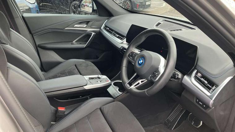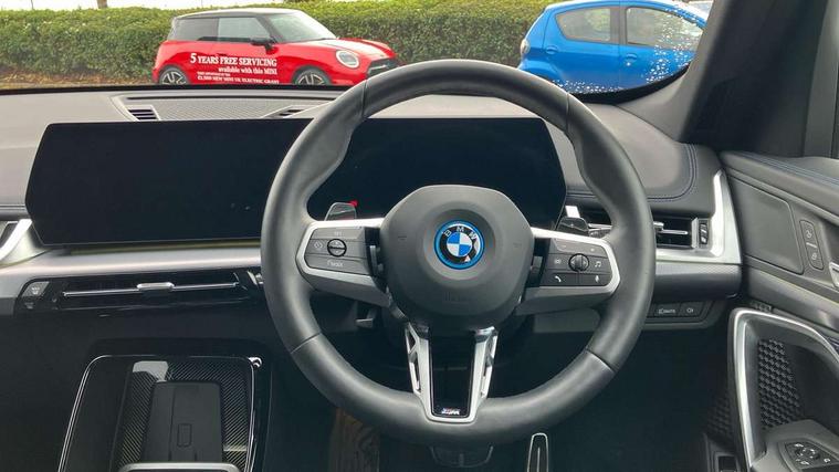 Attentiveness assist, Automatic start/stop function, BMW Live Cockpit Plus with 10.25" instrument cluster and 10.7" display, BMW Operating system 9 with BMW Maps, real-time traffic information, in-car experiences, remote services and smartphone integration, BMW Teleservices, Brake pad wear indicator, Condition based service, Connected eDrive Services, Drive off assistant, Electrically opening/closing tailgate with opening/closing with remote control and contactless opening and closing, iDrive controller, Language version English, My Modes, Parking Assistant with Reversing Assistant, active PDC, Lateral Parking Aid, Rear View Camera and Park Distance Control, Personal Profile - automatic lock when driving away selectable, Servotronic PAS, Tyre puncture warning system, Widescreen display, 11 kW AC charging power, eDrive exterior sound, EU6 emissions management, Fast charging cable professional mode 3 for public charging, M Adaptive suspension, Performance Control, Petrol Particulate Filter, Steptronic transmission with double clutch and gear shift paddles, xDrive intelligent four wheel drive system, BMW Personal eSim, DAB Digital radio, Badge on engine compartment lid and tailgate, Body colour door mirrors, Dynamic brake lights, Electric adjustable heated door mirrors, Electric windows - front and rear, with open/close fingertip control, anti-trap facility and comfort closing, Folding door handles integrated flush with surface, Follow me home headlights, Front and rear bumper panel with M specific design, in body colour with inserts in black high gloss, Front door exit lights, Heated rear window, High gloss shadowline, Invisible exhaust tailpipe, Key with M identification, LED 3rd brake light integrated in rear spoiler, LED daytime running lights, LED number plate light, M identification on the sides, M roof rails high gloss shadow line, M specific radiator grille in satinated aluminium, Matt black roof strips, Model inscription on right tailgate, Rain sensor including auto headlights activation, Rear side wing doors, Rear wiper, Sill cover in body colour, Trailer stabilisation logic, Windscreen washer nozzle for rear view camera, Windscreen wipers front with heated washer nozzles, 12V - Power sockets with front centre console and luggage compartment, 2 bag hooks in luggage compartment, 2 cup holders in front, 2 x USB Type C ports for charging in front centre console + 1 x USB Type C ports for charging in rear centre console, 3 rear headrests, 3 seat bench in 2nd row, 3 upper retaining strap clips integrated into rear panels of seat backrests, 4 grab handles, 40:20:40 split folding rear seats, Ambient interior lighting, Anthracite headlining, Anthracite Velour front and rear floormats, Bottle trays in all doors, Child seat ISOFIX attachment for two outer rear seats and front passenger seat with anchorage points, Clothes hook rear, Driver and front passenger heated seats, Dual zone automatic air conditioning, Front and rear door pockets, Front and rear footwell lighting, Front centre console storage compartment, Front/rear adjustable head restraints, Glove compartment, Interior door handle recess light on all doors, Light on right in luggage compartment, M sport leather steering wheel, Manual steering column height and depth adjustment, Middle centre console storage compartment, One piece parcel shelf opens together with tailgate and removable, Rear armrest in door trim panel, Single front passenger seat, Sport leather multifunction steering wheel with thumbrests and operation of instrument display, audio, telephone and driver assistance, Storage compartment net in left side trim panel, Storage compartment with folding cover under centre console armrest cushion, Storage tray in right side trim panel, Tilt adjustment incl. cargo function of 2nd row of seats, Vanity mirror lights, ABS/EBD, Automatic hold function, Automatic Stability Control (ASC), BMW emergency call, Braking readiness, Cornering brake control (CBC), Crash Sensor - activates hazard/interior lighting + unlocks doors, Driver/Front Passenger airbags, Driver/front passenger side airbags, Dry braking, Dynamic brake control, Dynamic stability control + (DSC+), Electromechanical parking brake, Energy recovery system, First aid kit, Front and rear brake discs, Front and rear head airbags, Front passenger airbag deactivation, Integrated brake system, PC iBrake PostCrash approach control warning with light braking function, Rear door child safety locks, Three point seat belts in all seats, Tyre pressure monitor, Warning triangle, Alarm system with tilt sensor, monitoring doors, bonnet interior and tailgate, Closing system with central locking, Locking wheel bolts, Luxury instrument panel, Tyre repair kit plus,
