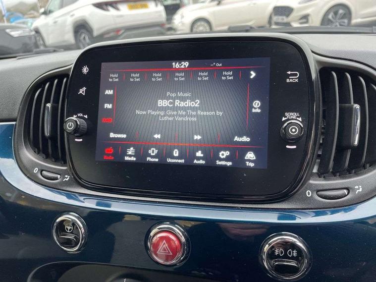 Apple car play/Android Auto, Cruise control, E-call, External temperature gauge, Power assist steering, Rear parking sensor, Speed limiter, Stop/start system, Trip computer, 4 speakers, 7" HD Touchscreen Radio, Bluetooth, USB and DAB, Rear speakers, 3rd brake light, Auto headlights, Body colour bumpers, Body coloured electrically adjustable door mirrors, Chrome plated exterior door handles, Dolcevita badge on fender, Dusk and rain sensors, Electric front windows, Fixed glass sunroof with sunblind, Front fog lights, Halogen headlamps, Heat insulated glass, Heated rear windows with wash wipe, LED daytime running lights, Rear side wing doors, Rear wiper, 1 passenger grab handle, 2 seat bench in second row, 50/50 split folding rear seats with height adjustable rear headrests, Air conditioning, Auxilliary 12V power socket, Chrome kit, Front headrests, Height adjustable drivers seat, Height adjustable steering wheel, Isofix child seat preparation, Single front passenger seat, Techno leather steering wheel with audio controls, 7 airbags - Driver, passenger, side, window and drivers knee airbags, ABS/EBD, ESC + ASR/MSR + HBA + Hill holder, Passenger airbag deactivation system, Traction control, Tyre pressure monitoring system, Automatic door locking, Immobiliser, Locking fuel filler cap, Remote central locking, 15" Alloy wheels,