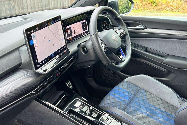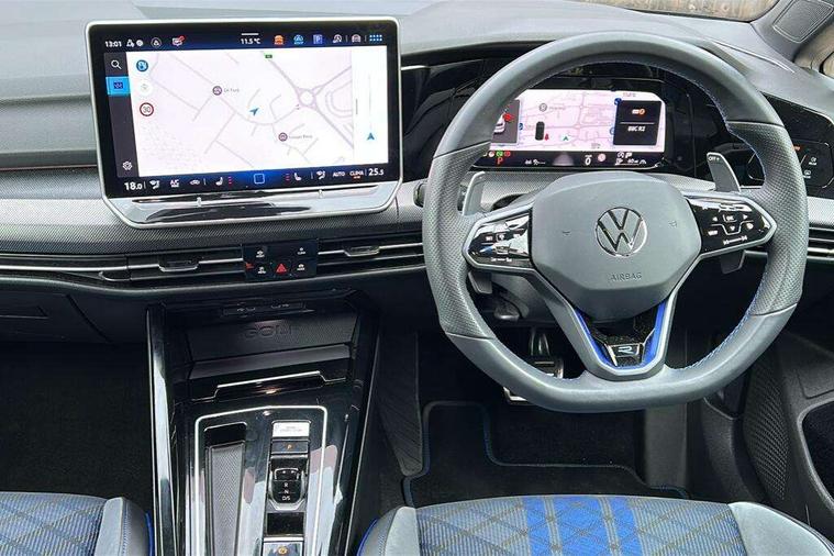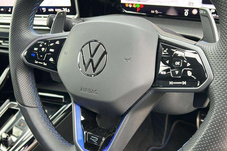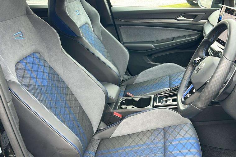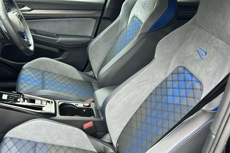Activated carbon canister, Adaptive cruise control (ACC), Advanced driver attention and drowsiness monitor, Dynamic road sign display, E-Sim card for online connectivity, eCall emergency call system, Electronic maximum speed limit increased to 270 km/h, includes driving Modes 'drift' and 'special', larger roof spolier and GPS laptimer + G-Meter, Multi-color Digital cockpit pro, selection of different info profile possible, Multifunction front facing camera for distance control, Navigation system, Oncoming vehicle braking when turning including swerve support, Preparation for light assist system, Progressive steering, Side assist blind spot lane change system, rear traffic alert and exit warning system, Speed limiter, Speedo, rev counter, electronic odometer, trip, service interval display, exterior temperature and fuel gauge, Traffic jam assist, Voice enhancer and voice control, Warning signal and warning light for front and rear seatbelts not fastened, We connect plus preparation, We connect preparation, Wireless app connect, All wheel drive - 4Motion, Petrol Particulate Filter, Sports suspension, Start-stop system with battery regeneration (recuperation - energy recovery during braking), XDS electronic differential lock for improved traction and handling, 2 USB C ports in front, 2 USB charging sockets on the centre console in the rear charging capacity upto 45W, Comfort telephony + wireless charging, without wireless aerial connection, Digital radio reception (DAB), Diversity antenna for FM reception, Gaming platform via car app, Infotainment system with 12.9" display, Mobile phone interface with inductive charging feature, 3rd brake light, Auto dimming rear view mirror, Auto headlights, Automatic headlamp activation with Coming home and Leaving home feature, Black badge on B-pillar, Black mirror caps, Black strips on radiator grille and headlights, Body colour door handles, Darkened headlights, Darkened R Logos and VW logos in front, rear and on fender, Exhaust system with black tailpipe, Exterior ambient lighting with illuminated lighting animation and wake up/goodbye scenario, Exterior mirrors convex on the left and aspherical on the right, Front and rear electric windows, Front fog lamps and cornering light, Heat insulating windshield made of laminated glass, LED daytime running lights, LED matrix headlights with ambient light V2, advanced high beam, dynamic range contol with cornering, LED rear lamp with indicator, poor weather, R name plate, Rain sensor, Rear fog light on one side and reversing lights on both sides, Rear side wing doors, Rear tinted glass 65% light absorbing from B pillar backwards, Rear windscreen washer and wiper with interval delay, Remote electrically foldable door mirrors, puddle lights and reverse activated passenger's door mirror, Welcome light with surround lighting, 12V socket in front centre console, 12V socket in luggage compartment, 3 rear head restraints, 3 seat bench in 2nd row, 30 colour ambient lighting, illuminated center console storage compartment in front, Air care climatronic 3 Zone automatic climate control with rear air conditioning control panel, Aluminium gearshift handle, Brushed stainless steel pedals, Carpet mats, front and rear, Front centre armrest, Integrated front head restraints, ISOFIX anchors for child seats on outer rear bench seats and on front passanger seat compatible for i-Size, Luggage compartment lighting, Rear cupholder and loadthough, Single front passenger seat, Soul black instrument panel, Split folding backrest with centre armrest and unsplit rear seat bench, Storm grey roof lining, Sun visors with illuminated vanity mirrors, Driver assistance pack - Golf DSG Estate/Hatchback, R styling pack - Golf, Technology park and comfort pro package - Golf Hatchback, 3 point height adj front seatbelts + pretensioners, 3 rear three point seatbelts, ABS, Autonomous emergency braking front assist with pedestrian and cyclist monitoring, Child locks on rear doors, Disc brakes in rear incl. brake calipers in black with darkened R-logo, Driver and front passenger airbag with front passenger airbag deactivation, Electronic parking brake with auto hold, ESC (Electronic Stability Control), Extended pedestrian protection measures, Hill start assist, Two tone horn, Tyre pressure loss indicator, Volkswagen roadside assistance, Anti theft wheel bolts, Preparation for alcohol interlock, Wheel hub cover with darkened R-logo,
