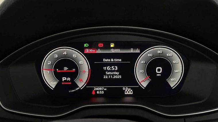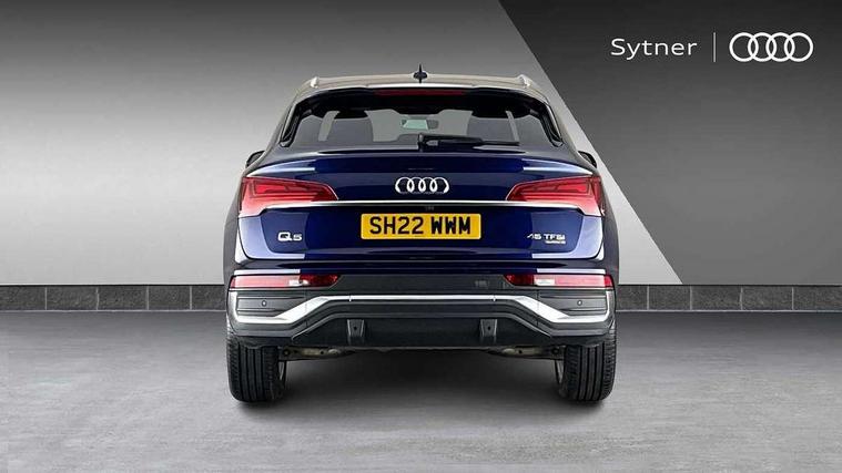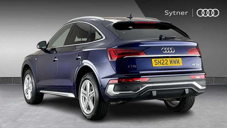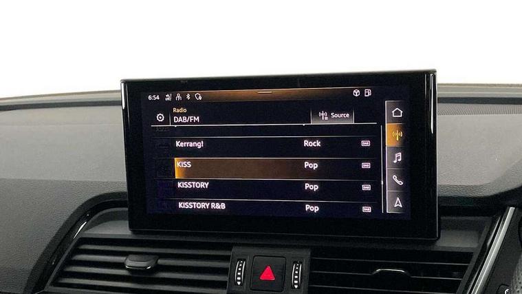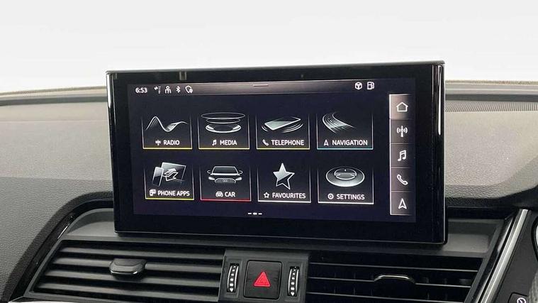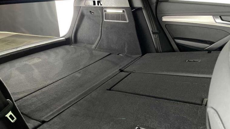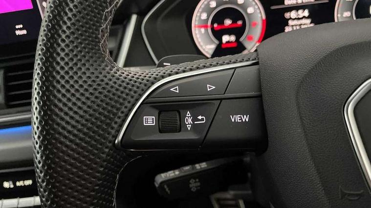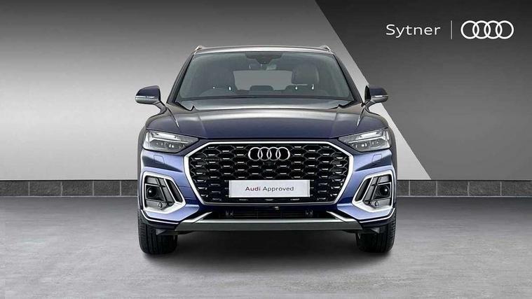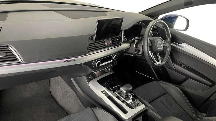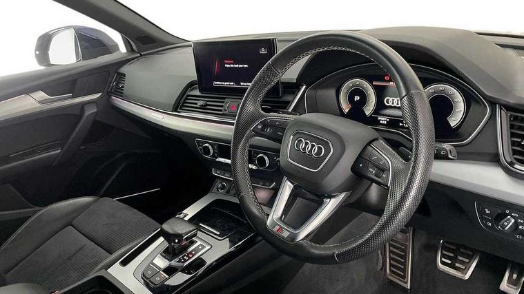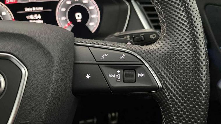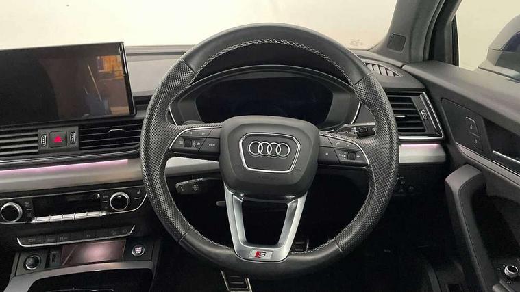 Audi connect safety and service (e-call), Audi connect with Amazon Alexa Integration, Audi drive select, Audi virtual cockpit plus with 12.3" screen and three different layout designs, Audi wireless smartphone interface, Automatic start-stop system with coasting functionality and efficiency programme, Bluetooth interface, Electro - mechanical power assisted steering, MMI navigation plus with 10.1" touch screen, Power tailgate, Reversing camera, Service interval indicator, Voice control system with Audi hotword activation "Hey Audi", Quattro on demand, S line sports suspension, 2 x USB charging port with aux input socket, DAB Digital radio, Acoustic windscreen, Aluminium roof rails, Audi matrix LED headlights with dynamic front and rear indicators, Auto dimming door mirrors, Auto dimming rear view mirror, Automatic headlights and windscreen wipers, Body colour door mirrors, Body colour rear diffuser with matt aluminium silver surrounds, Body colour underbody protection, Chrome plated exhaust trims, Daytime running lights, Door sills in Selenite silver, Electric adjustable/heated/folding door mirrors, Front air inlet surrounds in aluminium, Front and rear electric windows, Front radiator grille in honeycomb design, Headlight washers, High level LED brake light, Lower bumpers painted in contrast Manhattan grey, Rear chrome trim strip below lights, Rear privacy glass and rear side windows, Rear side wing doors, Rear wiper, Roof bars, S Line badges on the front wings, S Line front and rear bumpers, S Line rear spoiler, S Line side skirts, 3 rear headrests, 40:20:40 split folding 3 rear bench seat in 2nd row with rear centre armrest, Black cloth headlining, Comfort front centre armrest, Contrast stitching on seats, steering wheel and gear lever gaiter, Deluxe 3 zone electronic climate control, Front head restraints, Front/rear floor mats, Gear lever in black leather, Heated front seats, Height/reach adjustable steering column, Illuminated door sill trims with S logo, ISOFIX child seat mounting and top tether, Manual seat adjustment with 4-way electric lumbar support, Removable luggage compartment floor, Single front passenger seat, Stainless steel pedals, Sunvisors with vanity mirrors, Trunk roller cover, High gloss pack - Q5, LED interior light pack - Q5, 3 point seatbelts on all seats, 6 airbags - Driver, front passenger, curtain and side airbags, Electrically operated child locks on rear doors, Electromechanical parking brake, Electronic stabilisation control including ABS, ASR and EDL, Front passenger airbag deactivation, Hill descent control, Hill hold assist, Multi collision brake assist, Pop-up bonnet for pedestrian protection, Pre sense city, Seat belt force limiter, Seatbelt monitoring, Tyre pressure warning, Warning triangle and first aid kit, Anti theft alarm, Anti-theft wheel bolts, Keyless Go access/ignition system, Remote central locking, Matt brushed aluminium inlays,