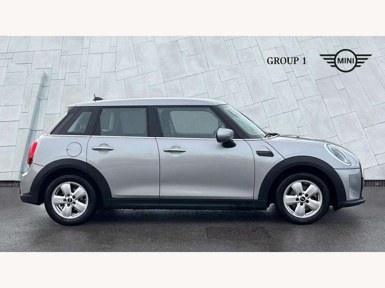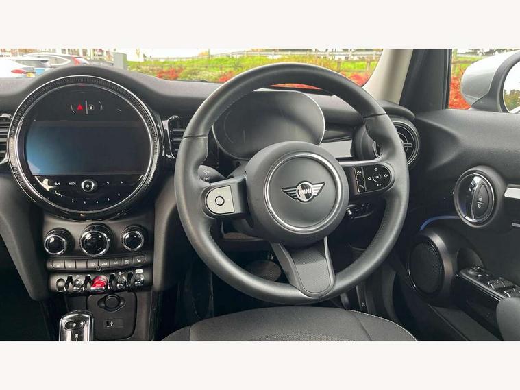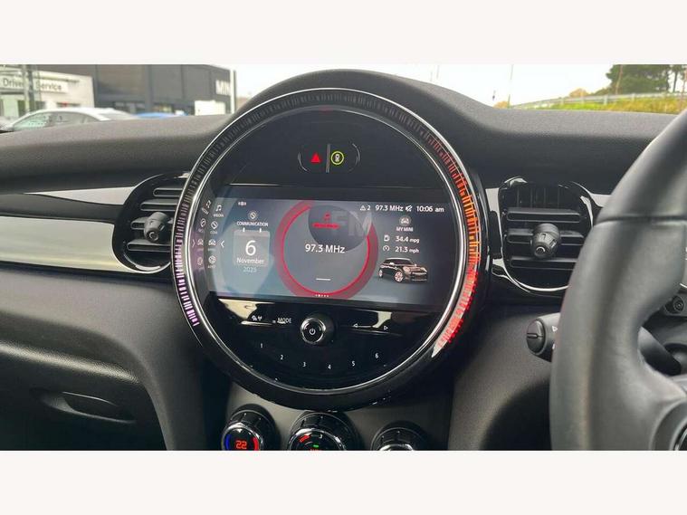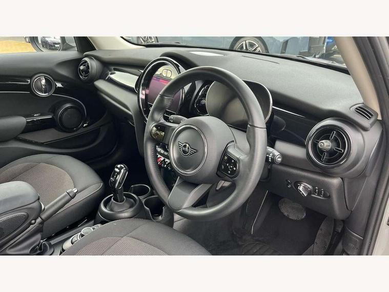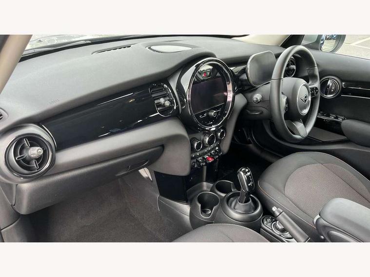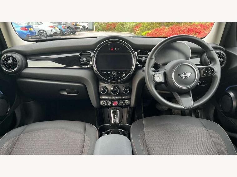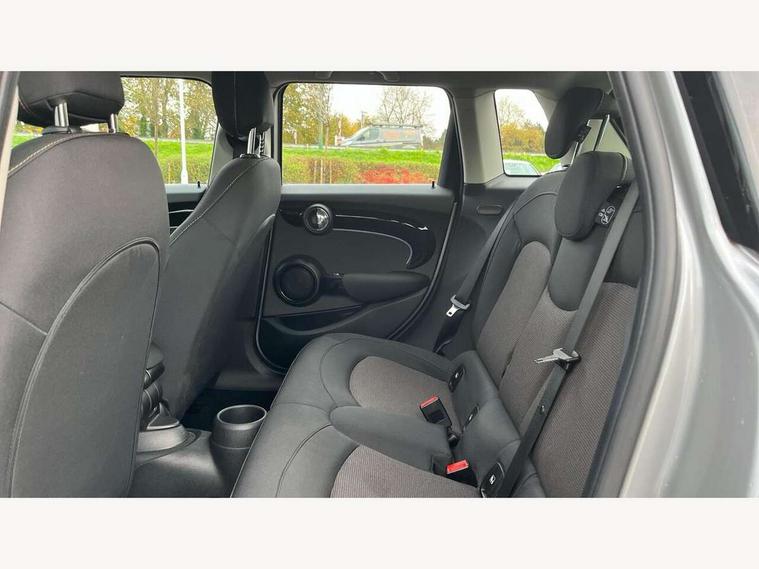Apple CarPlay, Automatic start/stop function with brake energy recuperation, Compatible mobile phone bluetooth with audio streaming, Electro-mechanical speed dependant steering assistance, Flexible car sharing preparation, Mini E-call, MINI TeleServices, On board computer, Service interval indicator, Double Vanos system, Fully variable valve control, Gear change indicator display, High precision injection, Performance Control, Steptronic transmission with double clutch, 8.8" touchscreen with LED ring, FM tuner and DAB digital radio, 3rd brake light, Automatic headlight activation switch, Body colour fuel filler cap, Chrome border high gloss black slats radiator grille, Dynamic brake lights, Electric front+rear windows, Exhaust tailpipe on left with chrome finisher, Heated rear window, Heated windscreen washer jets, Metal door sill strips with MINI imprint, Model logo Cooper on right of tailgate, Rain sensor window wipers, Rear fog lights, Rear LED lights with union jack design, Rear side wing doors, Rear window wiper, Side scuttle panel with integrated indicator, Sun/heat protection glass, White indicator lenses, 12V Accessory socket in centre console, 3 seat bench in 2nd row, 4 lashing eyes in luggage compartment, 60/40 split folding rear seat, Ambient lighting, Carbon black colour line - Knee roll and door armrest, Chrome interior highlights, Cupholders, Front and rear head restraints, Front and rear isofix with front passenger airbag deactivation, Front and rear velour floor mats, Glove compartment, Height and length steering column adjustment, Interior lighting with 12 different colours across the dashboard, underneath door bezel with illuminated laser-engraved design on central display, Leatherette gearshift lever and handbrake gaiters, LED reading lights, vanity mirror lights, front foot well light and spotlight on front seats, Mechanical seat adjustment - forward/back & backrest for front seats and driver seat height adjust, Multifunction steering wheel, Satellite grey headlining including grab handles and clothes hooks, Single front passenger seat, Sport leather steering wheel with speed limiter and audio/communication controls, Storage compartments in doors, Sunvisors with vanity mirrors, 3 point seatbelts on all five seats, 6 Airbags - front, side, head and seat belt tensioners, Anti-lock braking system (ABS), Child locks on rear doors, DSC - Dynamic Stability Control, Front and rear disc brakes, Hill start assist, Single tone fanfare horn, Tyre pressure monitoring system, Alarm system with tilt sensor, monitoring doors, bonnet interior and tailgate, Electronic vehicle immobiliser, Start/stop toggle with keyless go, Piano black interior trim, Tool kit, Tyre repair kit,