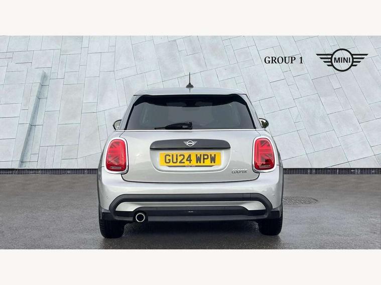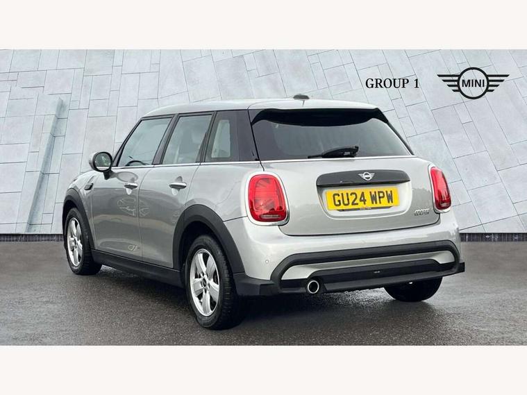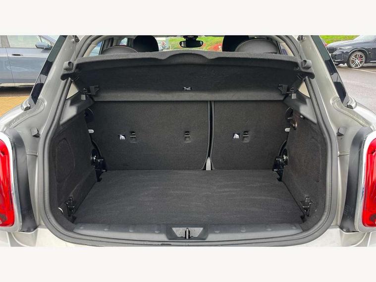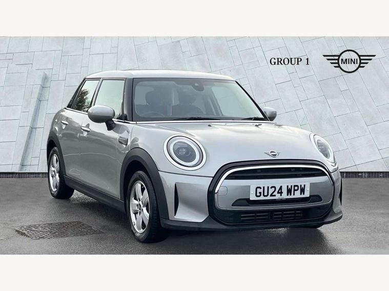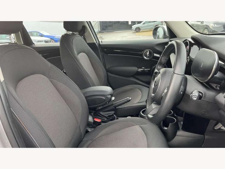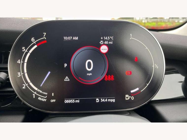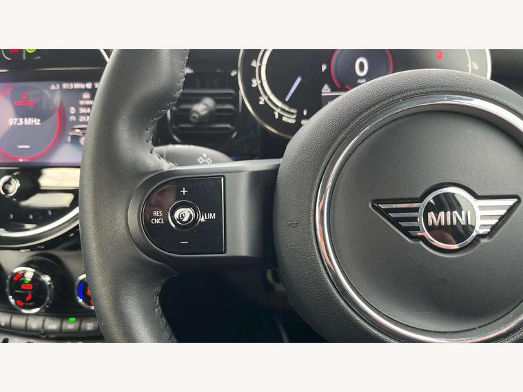 Apple CarPlay, Automatic start/stop function with brake energy recuperation, Compatible mobile phone bluetooth with audio streaming, Electro-mechanical speed dependant steering assistance, Flexible car sharing preparation, Mini E-call, MINI TeleServices, On board computer, Service interval indicator, Double Vanos system, Fully variable valve control, Gear change indicator display, High precision injection, Performance Control, Steptronic transmission with double clutch, 8.8" touchscreen with LED ring, FM tuner and DAB digital radio, 3rd brake light, Automatic headlight activation switch, Body colour fuel filler cap, Chrome border high gloss black slats radiator grille, Dynamic brake lights, Electric front+rear windows, Exhaust tailpipe on left with chrome finisher, Heated rear window, Heated windscreen washer jets, Metal door sill strips with MINI imprint, Model logo Cooper on right of tailgate, Rain sensor window wipers, Rear fog lights, Rear LED lights with union jack design, Rear side wing doors, Rear window wiper, Side scuttle panel with integrated indicator, Sun/heat protection glass, White indicator lenses, 12V Accessory socket in centre console, 3 seat bench in 2nd row, 4 lashing eyes in luggage compartment, 60/40 split folding rear seat, Ambient lighting, Carbon black colour line - Knee roll and door armrest, Chrome interior highlights, Cupholders, Front and rear head restraints, Front and rear isofix with front passenger airbag deactivation, Front and rear velour floor mats, Glove compartment, Height and length steering column adjustment, Interior lighting with 12 different colours across the dashboard, underneath door bezel with illuminated laser-engraved design on central display, Leatherette gearshift lever and handbrake gaiters, LED reading lights, vanity mirror lights, front foot well light and spotlight on front seats, Mechanical seat adjustment - forward/back & backrest for front seats and driver seat height adjust, Multifunction steering wheel, Satellite grey headlining including grab handles and clothes hooks, Single front passenger seat, Sport leather steering wheel with speed limiter and audio/communication controls, Storage compartments in doors, Sunvisors with vanity mirrors, 3 point seatbelts on all five seats, 6 Airbags - front, side, head and seat belt tensioners, Anti-lock braking system (ABS), Child locks on rear doors, DSC - Dynamic Stability Control, Front and rear disc brakes, Hill start assist, Single tone fanfare horn, Tyre pressure monitoring system, Alarm system with tilt sensor, monitoring doors, bonnet interior and tailgate, Electronic vehicle immobiliser, Start/stop toggle with keyless go, Piano black interior trim, Tool kit, Tyre repair kit,