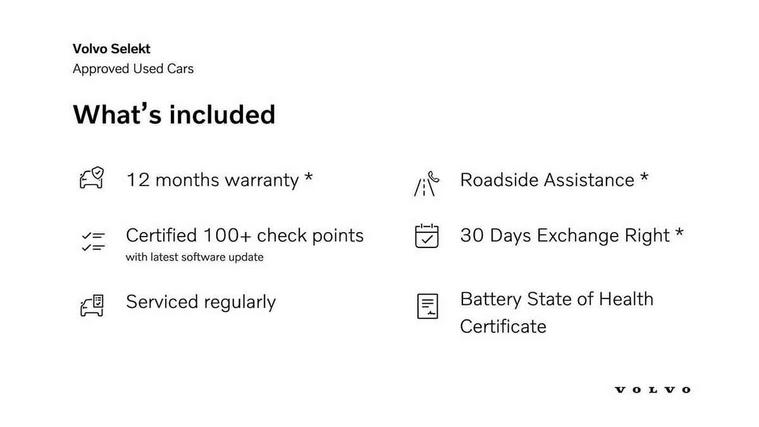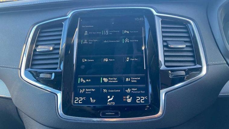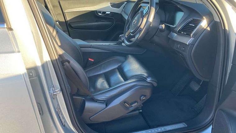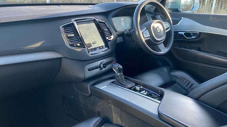 12.3" Active TFT crystal driver's instrument display, 9" centre console portrait touch screen, Adjustable steering wheel force, Bluetooth hands free telephone connection, Drive mode settings, Driver alert control with lane keeping aid, Emergency call service, Front and rear park assist, Handsfree power tailgate opening and closing, Intellisafe assist - Adaptive cruise control with pilot assist, Oncoming Lane Mitigation, Sensus navigation with European mapping and traffic information, Service interval indicator, Speed limiter, Speed sensitive steering, Trip computer, Voice activated control for key functions, Volvo on call, Wireless internet connection, 8 speed automatic transmission with start/stop + manual change functions, Active four C chassis - four corner adaptive dampers with electronic air suspension, All wheel drive system, Touring chassis, DAB Radio (Digital Audio Broadcasting), Steering wheel remote infotainment controls, Active bending headlights with adaptive shadow technology, Adaptive brake lights with high level LED brake lights, Auto dimming interior + exterior mirrors, Automatic headlight levelling system, Automatic LED Headlights + Active high beam incorporating daytime running lights, Body colour bumpers, Chrome door handles deco strip and window surround, Chrome lower side moulding trim with Inscription logo, Colour coordinated auto folding and heated power door mirrors, Dual integrated exhaust pipes, Front and rear power windows, Front LED fog lights with cornering function, Full width chrome detailing strip rear bumper, Home safe and approach lighting, Integrated roof rails in silver, Matt silver front grille with chrome detailing, Puddle lights, Rain sensor with automatic windscreen wiper activation, Rear side wing doors, Rear wash/wipe with intermittent wipe setting, Roof antenna, Roof spoiler, Visible VIN plate, 2 seat bench in 3rd row, 2nd Row centre armrest with storage and cupholders, 3 seat bench in 2nd row, 3 spoke leather steering wheel and illuminated gear knob with chrome trim, A-pillar parking ticket holder, Ambient door and instrument panel lighting, B Pillar ventilation, Bright metal luggage threshold, Cargo divider with grocery bag holder, Centre console cupholders and storage, Driver's side lower dashboard storage compartment, Front and rear door pocket and front cupholder illumination, Front footwell and side step illumination, Front headrests, Front seat backrest massage, Front seat cushion extension and power adjustable front seats side support, Heated front seats, Height/reach adjustable steering column, Illuminated front and rear tread plates, Illuminated luggage compartment, Illuminated tailgate, Illuminated vanity mirrors + ticket holder, Illumination lockable glovebox compartment, Load protection net, Luxury floor mats, Multicolour theatre lighting, Nappa Leather Key Integrated Remote, Outboard armrest with cupholder and storage for third row passengers, Passenger seat electric height adjuster, Passenger seat lumbar support, Perforated and ventilated nappa soft leather upholstery, Power driver seat with multi directional lumbar support and memory for seat and exterior mirrors, Rear footwell and side step illumination, Rear headrests, Semi automatic load cover, Single front passenger seat, Steering wheel audio controls, Underfloor cargo storage, Winter pack including Head up display - XC90, 7 three point seatbelts, City safety includes pedestrian, cyclist and large animal detection and front collision warning with full auto brake, Drivers knee airbag, Dual stage driver/passenger airbags, First aid kit, Front and rear curtain airbags, Front seat side impact airbags, Front seats SIPS airbags, Hill descent control, Hill start assist, IC (Inflatable Curtains) - Full Length, Passenger airbag cut-off switch, Power parking brake with auto hold function, Run off Road Mitigation, Run off Road Protection, Seatbelt reminder and pretensioners for all seats, SIPS (Side Impact Protection System), Slippery road and hazard light alert, Stability and Traction Control with Spin control, Engine Drag Control and Corner Traction Control, Tyre pressure monitoring system, Vehicle deceleration control with Anti-lock Brake System, Electronic Brake Distribution and Emergency Brake Assist, Warning triangle, WHIPS whiplash protection system - front, Anti-theft alarm including immobiliser/volume sensor + level sensor, Key integrated remote control central locking + fuel flap with deadlocking system and auto open/close power windows, Keyless drive (includes keyless entry and keyless start) with remote tag, Locking wheel nuts, Private locking for glovebox and tailgate, Tailored instrument panel and door tops, Tempa spare wheel and jack,