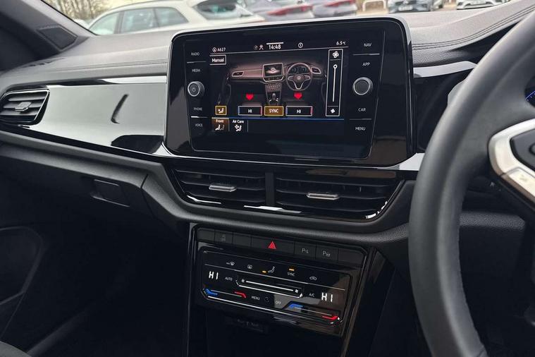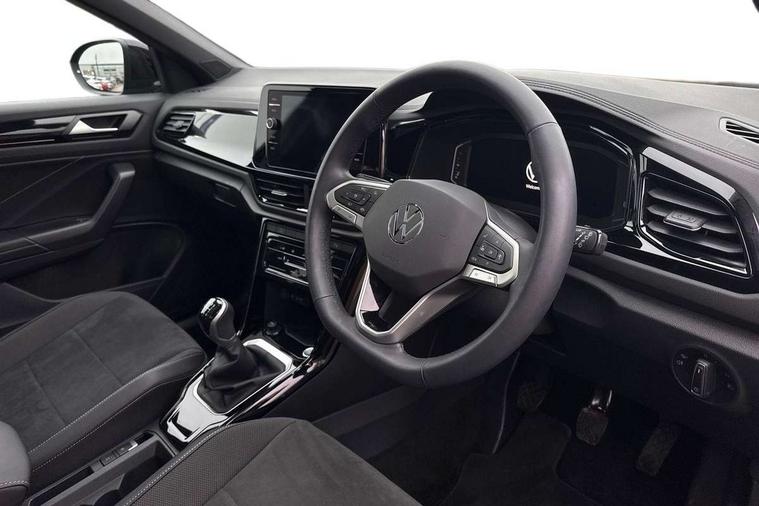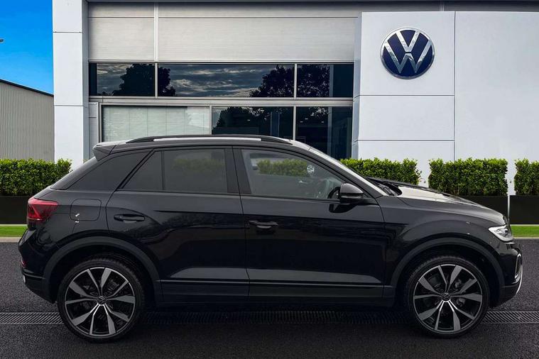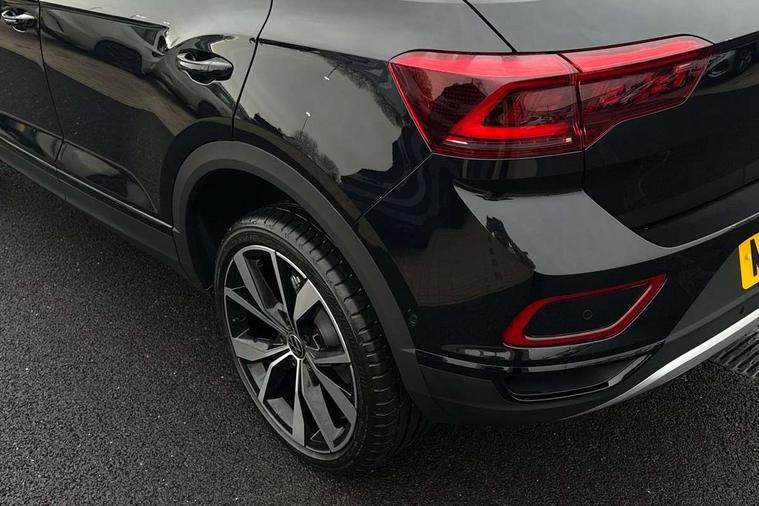 10.25" Digital cockpit pro, Advanced driver attention and drowsiness monitor, Dynamic road sign display, Emergency call service, Lane keeping system Lane Assist, Mobile phone interface, Modified key software - reduce switch off time for key status change to Long no motion, Online services, Park assist including front and rear parking sensors, Power assisted speed sensitive steering, Rear view camera, Service interval indicator, Tailgate/trunk lid release from outside, Think blue trainer driver tips and journey analysis, Warning sound and light for front seatbelts unfastened, Wireless app connect, Battery regeneration during braking, Start/stop function with battery regeneration, DAB Digital radio, Diversity antenna for FM reception, Music playback - MP3, WMA and AAC files, Premium USB cable in choice of either Apple or Android smartphone compatibility, SD card slot, Simultaneous pairing of 2 compatible mobile devices, Title and cover art display, We Connect and We Connect Plus functionality, Adhesive film in carbon look on the C-pillars, Advanced dynamic light assist for LED matrix headlights, Auto dimming interior rear view mirror, Automatic hazard lights activation under emergency braking, Black roof rails, Body colour sports bumpers with silver metallic underbody fascia, Body coloured exterior mirror housings and door handles, Dynamic cornering light, Dynamic headlight range control with self adjusting whilst driving, Electrically adjustable and heated door mirrors, Extended roof spoiler, Exterior ambient lighting, Exterior mirrors aspherical on driver side, convex on front passenger side, External USB type C socket and charging sockets, Front windscreen wiper with intermittent wipe and 4 position delay, Heated rear window, Illuminated front grille, IQ LED matrix headlights, LED 3rd brake light, LED rear number plate lights, LED rear tail lights with dynamic turn signal, LED separate daytime running light, Light mode for poor weather, rain, fog or snow, Power windows with comfort operation and circuit breaker, Privacy glass for rear side windows and rear window, Rain sensor, Rear exhaust tailpipe, Rear fog light on one side and reversing lights on both sides, Rear side wing doors, Rear wash/wipe with intermittent wipe setting, Remote electrically foldable door mirrors, puddle lights and reverse activated passenger's door mirror, Tilting and sliding panoramic sunroof with rear panoramic sunroof, 12V power socket in centre console, 3 rear head restraints, 3 seat bench in 2nd row, 4 load lashing points in luggage compartment, Air care climatronic air conditoning system with active combination filter and 2-zone temperature control, Black roof lining, Chrome plated radiator grille inserts, air vent surrounds and light switch surrounds, Door and side trim panel with leatherette insert, Drawer under drivers seat, Front + rear carpet mats, Front centre armrest, Front comfort sports seats, Front cupholders x 2, Front footwell illumination, Front seat back storage pockets, Glove compartment door with light, Instrument lighting, white adjustable panel illumination, Interior ambient lighting and surround lighting, Interior light delay, Isofix child seat preparation, Leather gearshift handle, LED interior light with switch off delay/dimmer and 2 front/rear LED reading lights, Load-through provision with cup holder when folded down ('Unsplit rear seat bench, split folding backrest, with centre armrest), Luggage compartment lighting, Non-folding front passenger seat backrest, Single front passenger seat, Storage compartment in left and right luggage area, Storage compartment in rear doors, Storage compartments in driver and front passenger doors, Sunvisors with illuminated vanity mirrors, Variable boot floor, height adjustable and removable, Black design pack - T-Roc style design, Driver assistance pack without proactive passenger protection - T-Roc, Easy open package with safelock - T-Roc, 3 point height adj front seatbelts + pretensioners, 3 point seatbelts in outer rear with ECE label, ABS, Child locks on rear doors, City emergency braking and pedestrian monitoring, Driver and front passenger airbag with front passenger airbag deactivation, Driver and front passenger safety-optimised head restraints, Drivers seatbelt reminder, Electronic parking brake, Electronic Stability Control (ESC) inc EDL (Electronic Differential Lock) and ASR (Traction Control), Front and rear passengers curtain airbag system including front side airbags, Predictive pedestrian protection, Rear disc brakes, Two tone horn, Tyre pressure loss indicator, Volkswagen roadside assistance, Black decorative trims, Piano black decorative inserts in dashboard and front door trim panels, Tool kit, Trims for alloy wheels, Tyre mobility kit including compressor and sealing foam,