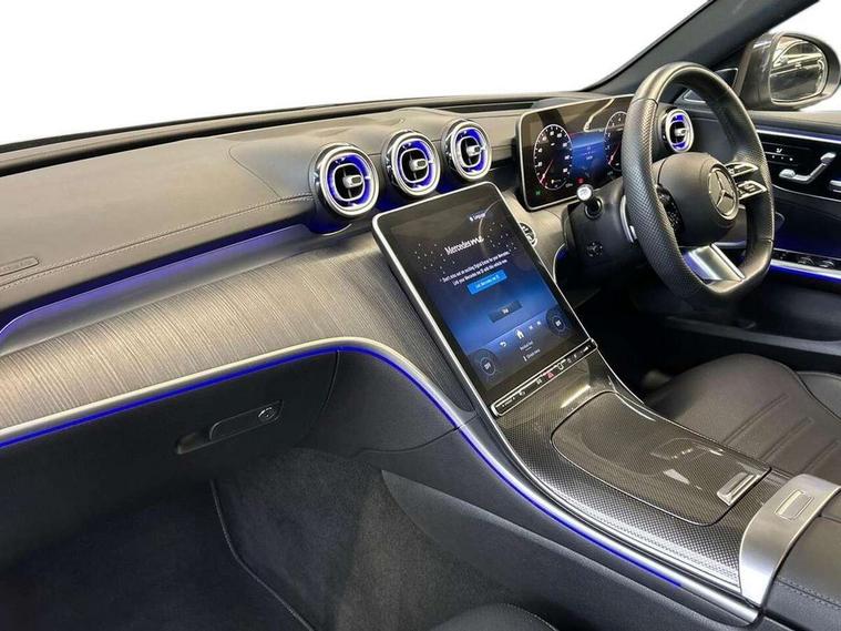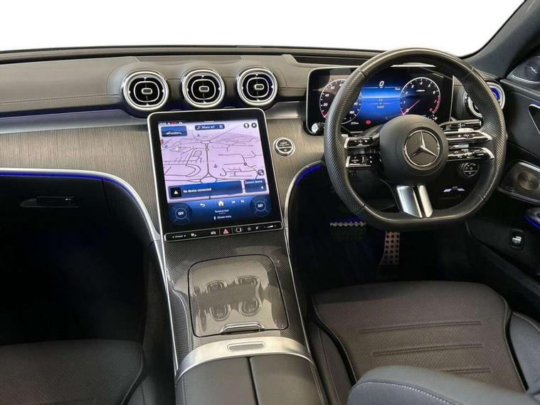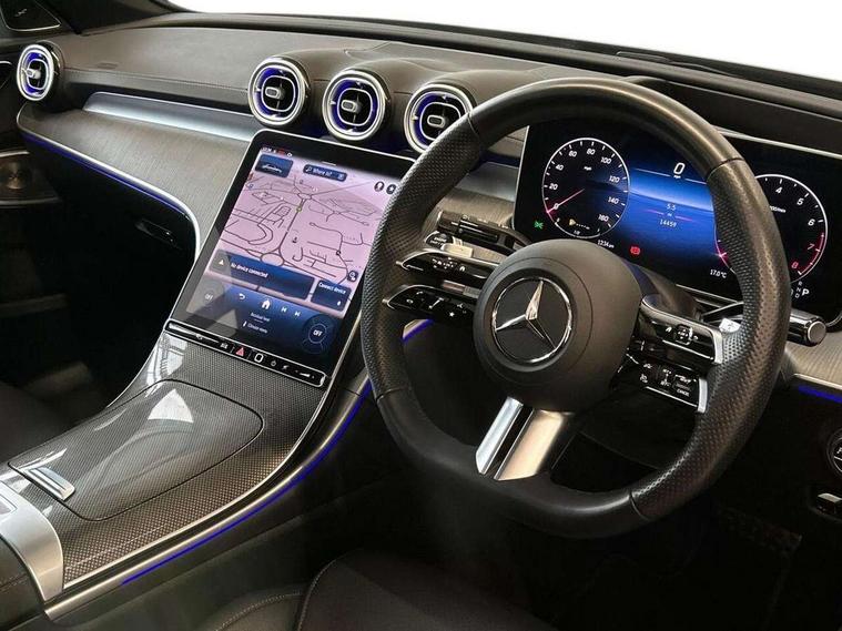 11.9" high resolution multimedia colour display, 12.3" digital instrument cluster display, Active parking assist with PARKTRONIC, Attention assist, DYNAMIC SELECT with a choice of driving modes (Comfort, ECO, Sport, Sport+, Individual), E-call, Extended MBUX functions, Finger print sensor, Fluorescent jacket for driver, Hard disc navigation, Head up Display, MBUX navigation premium, Mercedes me remote services, Outside temperature gauge, Service indicator (ASSYST), Smartphone integration, Sports direct steer speed sensitive steering, Status display for rear seat belts in instrument cluster, Traffic sign assist, Wireless charging system for mobile devices, 9G TRONIC 9 speed automatic transmission, Petrol Particulate Filter, Sport suspension, Burmester 3D surround sound system, DAB Digital radio, MBUX multimedia system, Adaptive brake lights, Adaptive high beam assist plus, AMG body styling front apron, rear apron and side skirts, AMG Line exterior, Body coloured bumpers, Body coloured door mirrors, Digital light LED headlamps, Electric panoramic glass sunroof, Electric windows with one touch opening/closing and obstruction sensors, Electrically adjustable and heated door mirrors, Heat insulating dark tinted glass, LED daytime running lights, LED Indicators, LED tail lights, LED third brake light, Noise acoustic glass, Radiator diamond grille with integrated Mercedes Benz star and louvre silver with chrome pins, Rain sensor with automatic windscreen wiper activation, Rear boot, Rear side wing doors, Two visible exhaust pipes integrated into rear bumper, 3 seat bench in 2nd row, 40:20:40 split folding rear bench seat, Ambient lighting premium, Ambient lighting with projection of brand logo, AMG floor mats, AMG line interior, Artico man-made leather upholstery, Auto Mercedes-Benz child seat recognition sensor, Black roof liner, Boot lid convenience closing feature, Comfort seats, Double cupholder in centre console, Electrically height/reach adjustable steering column, Folding rear seat backrest, Front and rear head restraints, Gearshift paddles on steering wheel, Illuminated door sills with Mercedes Benz lettering, Illuminated glove compartment stowage, Multifunction sports steering wheel in nappa leather, Rear top tether child seat ISOFIX attachment, Single front passenger seat, Sunvisors with illuminated vanity mirrors, THERMATIC 2 zone automatic climate control, AIR BALANCE Package - C Class, Energizing package plus - C Class, Interior light package - C Class, Keyless go comfort package - C Class, Memory package - C Class, Mirror package - C Class, Parking package with 360 degree camera - C Class, Stowage space pack - C Class, USB package plus - C Class, 3 rear 3 point seatbelts, Active bonnet pedestrian safety measure which detects an impact and raises bonnet, Adaptive brake system with HOLD function and brake drying in the wet, Anti-lock braking system (ABS), Black seat belts, Brake calipers with Mercedes-Benz lettering + perforated front brake discs, Child proof door locks, Drivers knee airbag, Drivers pelvis airbag, Dual stage driver/passenger airbags, Electric parking brake, Electronic Stability Programme (ESP), Front centre airbag between driver and front passenger seats, Front side airbags, Tyre pressure monitoring system, Warning triangle and first aid kit, Window airbags for driver, front passenger and rear passenger, Antitheft alarm system, Interior monitoring system and Increased antitheft protection, Central locking with interior switch, automatic locking and crash sensor with emergency opening function, Chrome surround in electric key, Urban guard vehicle protection plus, Black open pore aluminium lines wood trim with centre console in metal structure finish, Dashboard, instrument panel and beltlines in ARTICO man made leather in nappa look, 19" AMG multi spoke light alloy wheels painted black with high sheen finish, TIREFIT with tyre inflation compressor,
