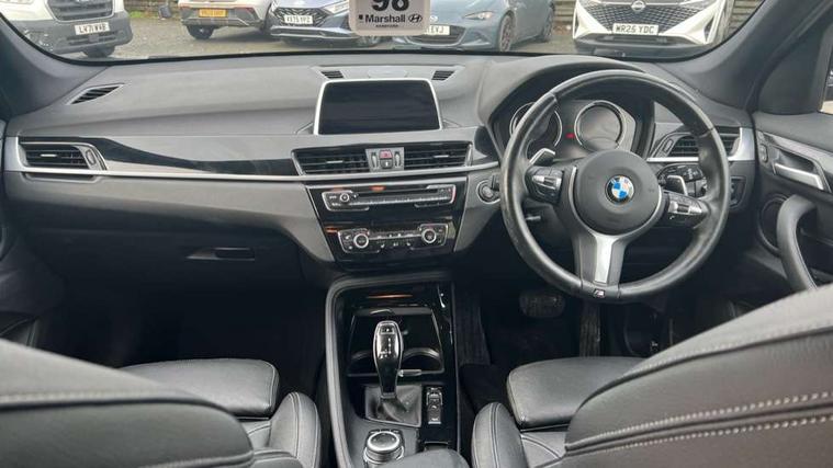 Active Guard incl speed limiting and lane departure functions with auto steering, and front collision warning with brake intervention, Ambient temperature display, Attentiveness assist, Automatic tailgate opening, BMW Online services, BMW remote services, BMW Teleservices, Lights on warning, On board computer, Outside temperature gauge, Real time traffic information, Service interval indicator, Speed limiter, Stop/start button, Tyre puncture warning system, Diesel particulate filter, Electronic differential lock, Performance Control, 2 USB ports in centre console, BMW professional radio with CD player, DAB Digital radio, USB/audio interface, Adaptive LED Headlights, Adjustable headlights, Body colour bumpers, Body colour door handles, Body colour door mirrors, Chrome tailpipe finisher, Electrically adjustable and heated door mirrors, Fingertip control / anti-trap function on electric window, Follow me home headlights, Front and rear electric windows, Front fog lights, Heat insulating tinted glass, Heated windscreen washer jets, kidney grille with high gloss black vertical slats, LED daytime running lights, M door entry sills, Rain sensor including auto headlights activation, Rear window wash/wipe, Twin chrome exhaust tailpipes x2, Welcome home function, 12v power point in centre console, 12V power socket in passenger footwell, 3 rear headrests, 3 spoke sport nappa leather steering wheel, 4 grab handles, Anthracite headlining, Boot light, Centre console with cupholders, Driver/passenger sunvisors with ticket holders, Drivers folding storage compartment, Dual zone automatic air conditioning, Front and rear door armrests, Front centre armrest/sliding cover, Front passenger isofix child seat attachment, Front sports seats, Front/rear adjustable head restraints, Heated front seats, Illuminated glovebox, Isofix rear child seat preparation, Leather gearknob/gaiter/handbrake grip, LED ambient lighting in door trim, Luggage area underfloor compartment, Luggage compartment lighting, Multifunction steering wheel, Rake/reach adjustable steering wheel, Sliding/split/reclining 40/20/40 rear seat with 60/40 split rear seat base, Steering wheel gearshift paddles, Velour floor carpets, Extended storage package - X1, 3 rear 3 point seatbelts, ABS/EBD, Audio/visual collision warning system, Automatic Stability Control (ASC), BMW emergency call, Cornering brake control (CBC), Crash Sensor - activates hazard/interior lighting + unlocks doors, Driver/Front Passenger airbags, Driver/front passenger side airbags, DSC - Dynamic Stability Control, Dynamic brake control, Dynamic Traction Control - DTC, Electronic parking brake, Front and rear head airbags, Front passenger airbag deactivation, Front seatbelt force limiters, Hill start assist, Pyrotechnically pre-tensioned front seatbelts, Rear door child safety locks, Seatbelt warning, Tyre pressure monitor, Warning triangle and first aid kit, Auto door lock when driving, Central locking including boot and fuel flap with deadlocks, Engine immobiliser, Locking wheel nuts, Remote control Thatcham category 1 alarm, High gloss black centre console, Low rolling resistance tyres,