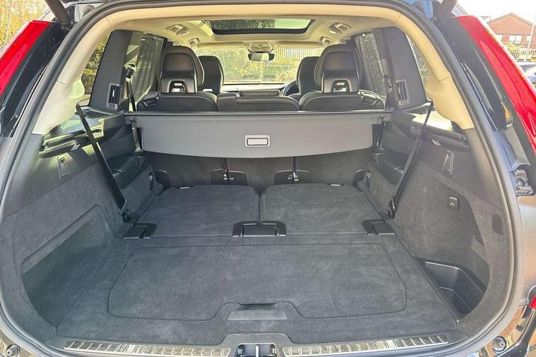 12.3" Progressive Driver Display, 360 degree surround view parking camera with side proximity sensors, 9" centre console portrait touch screen, Adjustable steering wheel force, Apple carplay (wired), Bluetooth handsfree system, Driver alert control with lane keeping aid, Driver assistance (pilot assist and adaptive cruise control), Driver awareness - Blind spot information system with steer assist, cross traffic alert with autobrake and rear collision warning and mitigation, Emergency call service, Front and rear park assist, Google Automotive Services - Navigation with Voice recoginition and google assistant, Handsfree power tailgate opening and closing, Intelligent speed assistance, Oncoming Lane Mitigation, Power operated tailgate, Service interval indicator, Speed sensitive steering, Trip computer, Volvo on call, Wireless/Inductive Mobile Phone Charging, 8 speed automatic transmission with start/stop + manual change functions, Touring chassis, DAB Radio (Digital Audio Broadcasting), Premium Sound by Harman Kardon, dirac unison, dolby pro logic II surround sound, 13 speakers/600W output and fresh air subwoofer, Steering wheel remote infotainment controls, Active bending headlights with adaptive shadow technology, Adaptive brake lights with high level LED brake lights, Auto dimming interior + exterior mirrors, Auto folding and heated power door mirrors, Automatic headlight levelling system, Automatic LED Headlights + Active high beam incorporating daytime running lights, Body colour bumpers, Dark tinted windows - rear side windows and rear screen, Front and rear power windows, Headlight cleaning system, Heated front windscreen, High gloss black door mirrors and window surround, High gloss black front and rear bumper deco, High gloss black mesh front grille with surround, Home safe and approach lighting, Integrated roof rails in high gloss black, Laminated side and rear windows, LED front fog lights with cornering light function, Power glass tilt and slide panoramic sunroof with sun curtain, Puddle lights, Rain sensor with automatic windscreen wiper activation, Rear side step illumination, Rear side wing doors, Rear wash/wipe with intermittent wipe setting, Roof antenna, Roof spoiler, Visible VIN plate, 12V socket front tunnel console, rear passenger compartment, 2nd Row centre armrest with and cupholders, 3 Spoke tailored steering wheel with chrome trim, 4 zone electronic climate control with Clean zone air quality system + pollen filter, A-pillar parking ticket holder, Air conditioning for 3rd row of seats, Air purifier PM2.5, Ambient door and instrument panel lighting, B Pillar ventilation, Bright metal luggage scuff plate, Centre console cupholders and storage, Floor mats, Front and rear courtesy lights, Front and rear door pocket illumination, Front footwell and side step illumination, Front headrests, Front reading lights, Front seat cushion extensions, Front seat power side support, Front tunnel storage illumination, Heated front seats, Heated rear seats, Heated steering wheel, Height/reach adjustable steering column, Illuminated front and rear tread plates, Illuminated luggage compartment, Illuminated tailgate, Illuminated vanity mirrors + ticket holder, Illumination lockable glovebox compartment, Inner door release handle illumination, Integrated sun curtains in rear doors, Isofix outer rear child seat preparation in 2nd row, Load cover, Load protection net, Lockable glovebox compartment, Luggage compartment divider with grocery bag holder, Nappa soft leather perforated /ventilated upholstery, Outboard armrest with cupholder and storage for third row passengers, Power driver seat with multi directional lumbar support and memory for seat and exterior mirrors, Power folding 2nd row headrests, Power passenger seat with multi directional lumbar support and memory, Rear footwell illumination, Rear headrests, Rear reading lights, Single front passenger seat, Three 2nd row individual folding passenger seats with fore/aft adjustment, Two 3rd row individual folding passenger seats, Underfloor luggage compartment storage, 7 three point seatbelts, City safety with steering support includes pedestrian, cyclist detection, front collision warning with full auto brake and rear auto brake, Driver and passenger airbags, Drivers knee airbag, First aid kit, Front seats SIPS airbags, Hill descent control - off drive mode, Hill start assist, IC (Inflatable Curtains) - Full Length, Passenger airbag cut-off switch, Power child locks on rear doors, Power parking brake with auto hold function, Road sign information display, Run off Road Mitigation, Run off Road Protection, Seatbelt reminder and pretensioners for all seats, SIPS (Side Impact Protection System), Slippery road and hazard light alert, Stability and Traction Control with Spin control, Engine Drag Control and Corner Traction Control, Tyre pressure monitoring system, Vehicle deceleration control with Anti-lock Brake System, Electronic Brake Distribution and Emergency Brake Assist, Warning triangle, WHIPS whiplash protection system - front, 2x Key integrated remote control central locking + deadlocking system and auto open/close windows, Anti-theft alarm including immobiliser/volume sensor + level sensor, Care key with user defined top speed, Keyless drive includes keyless entry and keyless start, Locking wheel nuts, Tailored Instrument Panel and Door Tops with Contrast Stitching, 21" 5 double spoke diamond cut black alloy wheels, Tempa spare wheel and jack,