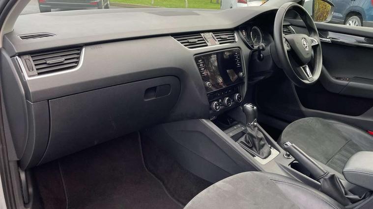 Bluetooth system, Driver alert system, Driver fatigue sensor, Driver profile selection, Electro-mechanical power steering, Front assist with pedestrian protection, Outside temperature gauge, Proximity sensors, Service interval indicator, SmartLink with Apple Carplay/Android auto and MirrorLink, Stop/start system, Voice control system, Diesel particulate filter, XDS electronic differential lock, Auxiliary input socket, Bolero Radio, DAB Digital radio, Multi device interface, Aero wiper + intermittent function, Body colour door mirrors and handles, Body coloured bumpers and protective side mouldings, Chrome trim to front bumper, Coming/leaving home lighting function, Electric front and rear windows with child safety lock, Full LED Headlights with adaptive front light system and LED daytime running lights, High gloss black front grille, High level third brake light, Intelligent light assist with high beam control, Internally adjustable headlight beam level, Light assistant (coming home/tunnel light) with auto-dimming rear view mirror, Privacy glass, Rain sensor, Rear mudflaps, Rear wiper, Telescopic front headlight washers, Tinted glass, Air re-circulation and pollen filter, Chrome inner door handles, Driver + passenger vanity mirrors, Dual zone automatic air conditioning with humidity sensor and control, Front armrest with storage box, Front seat and rear pockets, Gear shift indicator, Height adjustable front and rear head restraints, Height/reach adjust steering wheel, Illuminated air conditioned glovebox, Illuminated luggage compartment, Interior courtesy light operated by door switches, Lashing eyelets in boot, Rear armrest with storage, Rear seat backrest release, Split folding rear seats with centre armrest and storage, Sunglasses storage, Textile floor mats, Two isofix child seat fitting in rear, Umbrella under front passenger seat, 3 rear 3 point seatbelts + pretensioners, Automatic post collision braking, Driver and passenger front and side airbags, Drivers knee airbag, Energy recovery system, ESC including ABS, EBV, MSR, ASR, EDS, HBA, DSR, Fuel supply cut off, Head and curtain airbags, Height adjustable front seatbelts + pretensioners, Hill hold control, Passenger airbag deactivate switch, Seatbelt warning lamp, Tyre pressure monitor, Alarm, Electronic engine immobiliser, Remote central locking,