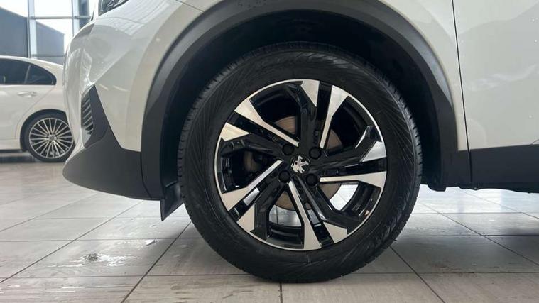 Bluetooth telephone facility, Driver attention warning, Exterior temperature indicator with ice warning, Lane keep assist, Mirror screen with mirror link, apple carplay and android auto, Multi function trip computer, PEUGEOT i-Cockpit with 3.5" instrument panel display, PEUGEOT i-Cockpit with compact steering wheel, PEUGEOT SOS and assistance, Programmable cruise control and speed limiter, Smart phone docking station, Speed limit recognition and recommendation, Visio Park 1 with 180 degree Colour reversing camera, 2 front USB socket with USB-C, 2 USB sockets in rear, 6 speakers radio with mp3 compatible, DAB Radio (Digital Audio Broadcasting), Voice recognition for radio, navigation and telephony features, 2 X Rear number plate lights, Automatic front windscreen wipers, Automatic hazard light activation upon heavy brake application, Black front wing trim with gloss black detail, Body coloured exterior door handles, Colour coded door mirror shells, Colour coded rear spoiler, Colour coded roof, Dark tinted rear side and tailgate windows, Eco LED headlights, Electric, heated, and power folding door mirrors, Electrochrome rear view mirror, Front bumper - Silver lower trim, Gloss black finish on B pillar, Gloss black longitudinal roof rails, Gloss black rear cluster connecting strip, Gloss black roof bars, Headlights left on audible warning, LED daytime running lights with distinctive tooth design, Model designation badges front and rear, One touch electric front/rear windows with pinch protection, Radiator grille - gloss black top edge trim, Radiator grille chrome chequered, Rear full LED 3D peugeot signature claw effect lights with daylight function, Rear reversing lights, Rear windscreen wiper triggered automatically in reverse gear, Tailgate with heated rear windscreen and wiper blade, Wheel arch extensions, 1/3 to 2/3 split folding rear seats, 12V socket, Automatic air conditioning with pollen and active carbon filter, Central front armrest with storage compartment, Driver and front passenger comfort seats, Driver seat manual adjustment - height, longitudinal and back rest angle, Electric power steering with reach and rake adjustable steering column, Front LED interior light with 2 reading spotlights and rear interior light with timer, Front passenger seat manual adjustment - height, longitudinal and back rest angle, High centre console, Leather steering wheel, Mint green contrast stitching to front centre console, door panels and dashboard facia, Modular boot floor, Piano keys: Gloss black and chrome toggle switches to access main functions of the vehicle, Roof lining - light grey, Seatbelt unfastened on the move audible and visual alert for front and rear seats, Tri material cloth/leather upholstery, Visibility pack - 2008, 2x 2nd row ISOFIX child seat mountings, ABS (Anti-lock Braking System) with EBD (Electronic Brakeforce Distribution) and EBA (Emergency Braking Assistance), Acoustic vehicle alerting system, Active safety brake with night function/cyclists/pedestrians, Adaptive driver and front passenger airbags with passenger airbag deactivation function, Child locking functionality on rear doors, Driver/front passenger side airbags, Electric parking brake, ESP (Electronic Stability Program) + Hill Start Assist, Front and rear curtain airbags, Front and rear disc brakes, Front and rear three-point retractable seatbelts, with force limiters, Front optimised safety headrests and rear retractable headrests (x3), height adjustable, Tyre pressure sensor, Alarm system with anti-lift sensor, Automatic door locking when moving off, Deadlocks, Electronic code immobiliser, Carbon effect Dashboard, front and rear door panel finish, 17" Salamanca diamond cut alloy wheels,