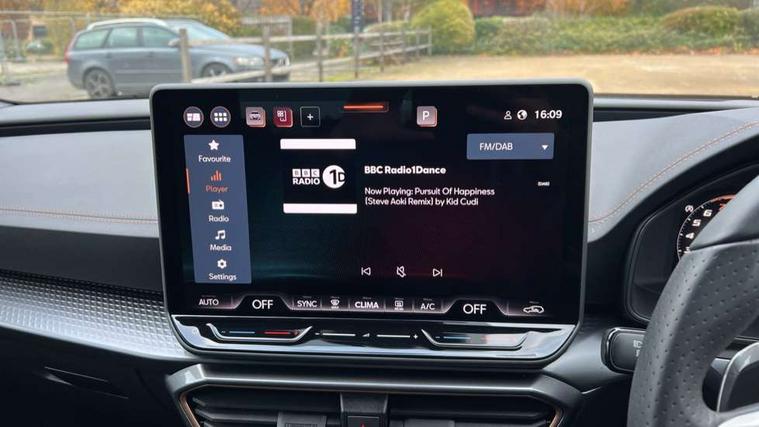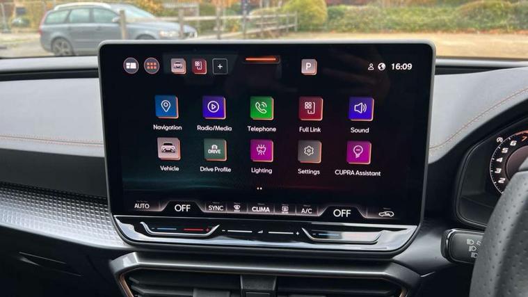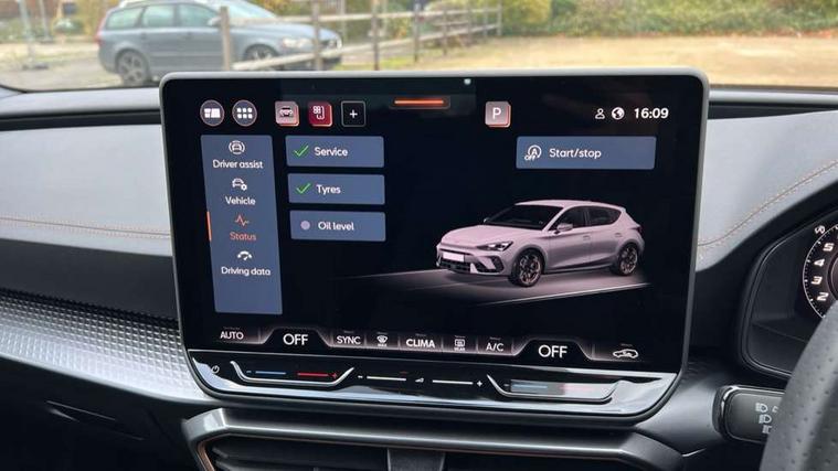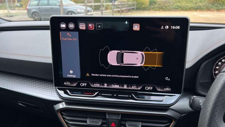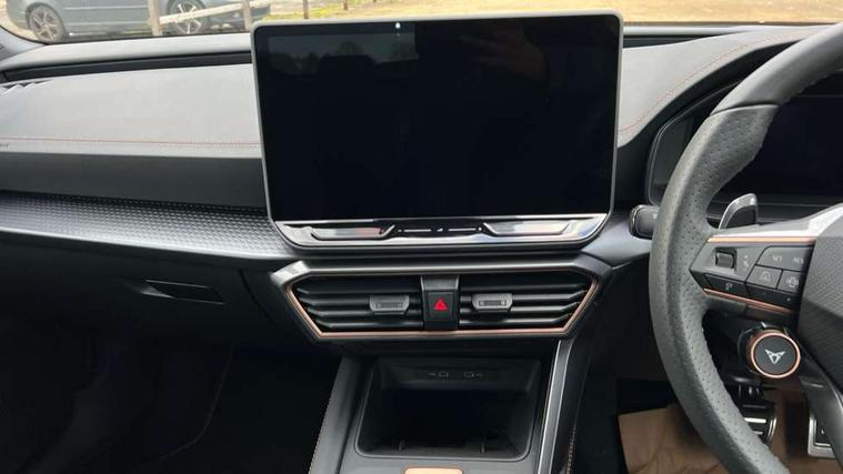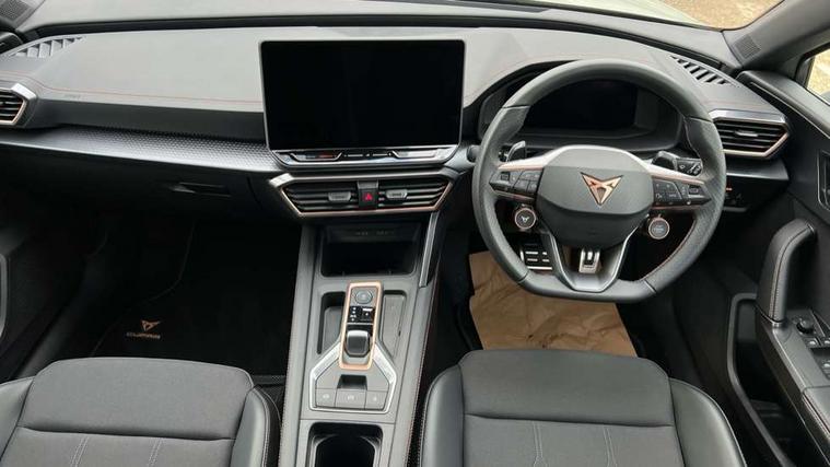 Adaptive cruise control with follow-to-stop and speed limiter, CUPRA drive profile selection with (Comfort/Sport/Individual), throttle response and gearshift mode, Digital cockpit, Dynamic road sign display, E-call, Four x USB Type C ports (2 in front and 2 in rear), Front and rear parking sensors, Front assist with forward collision warning braking reaction to vehicles, pedestrians and cyclists, Full link smartphone integration with Mirror Link, wireless Apple CarPlay and wired Google Android Auto, Lane assist, Lockable tailgate, PAS, RPM, trip computer, outside temp gauge, instrument light brightness, low fuel warning light, lights on reminder, gearshift indicator, Service interval indicator, Start/stop system with regenerative braking, Wireless phone charger, 7 speakers, Auxiliary input socket, Auto dimming rear view mirror, Body colour door handles, Body coloured bumpers, Cupra sports bumpers, Dark tinted rear windows, Electric front/rear windows, Electrically adjustable, heated and folding door mirrors, High beam assist, LED front fog lamps with cornering function, LED headlights with dynamic turn signals, tail lights, rear fog lights with rear coast to coast lighting, LED rear fog lamp, Rain sensing wipers, Rear side wing doors, Rear wash/wipe, Separate daytime running light with automatic headlight control and coming home feature, Third brake light, Welcome light with logo projector in door mirrors, 12v power supply in centre console, 3 seat bench in 2nd row, 5 headrests, 60/40 split rear bench seat with armrest, Ambient lighting with glovebox, footwell and single monocolour, Black headlining, Cloth/PVC upholstery, Cupra sports pedals, CUPRA Supersports, heated steering wheel with satellite buttons, Driver and passenger seat with manual height and lumbar adjustment, Folding boot cover, Front and rear reading lights X 4, Front centre armrest, Height/reach adjust steering wheel, Illuminated interior front door sills, ISOFIX points in outer rear seats with top tether anchorage points, Single front passenger seat, Storage pockets on rear of front seats, Sunvisors with illuminated mirror, Three zone climate control, Media system plus with 12.9" display + navigation pack - Leon Cupra, 3 point seatbelts on all rear seats, ABS, Brake control system - ESC and brake booster, Child proof door locks, Cupra black brake calipers, Driver and front passenger airbags with front passenger airbag de-activation, front side and curtain airbags, Electronic parking brake, Hill hold control, Rear disc brakes, Seat belt reminder for front and rear seats, Tiredness recognition system, Tyre pressure monitoring system, Anti theft alarm system with interior monitoring in cab, backup horn and towing protection, Central locking system Keyless Go, Locking wheel bolts, Chrome and copper interior detailing, 18" Windstorm machined sport black matt and silver alloy wheel with 92Y XL tyres, Tool kit,