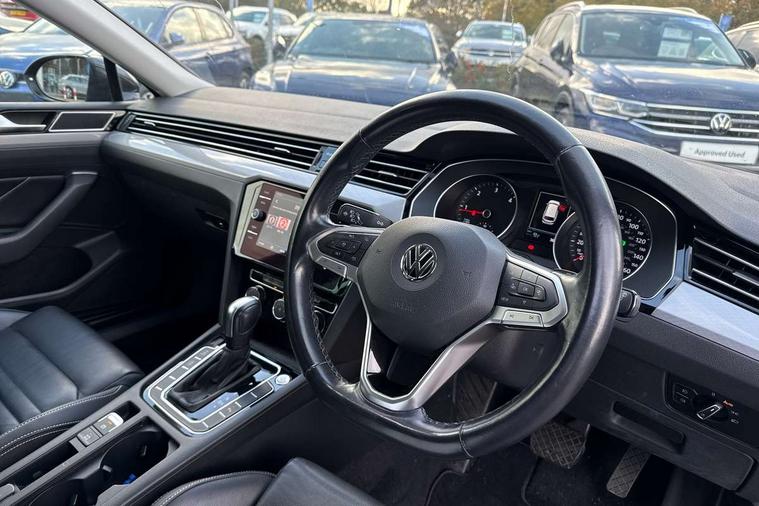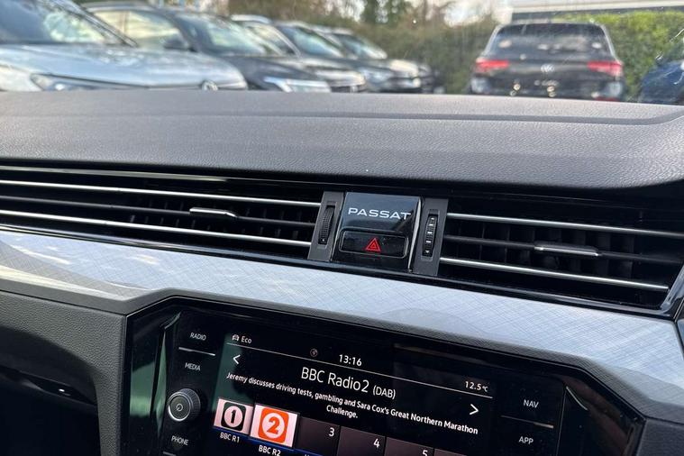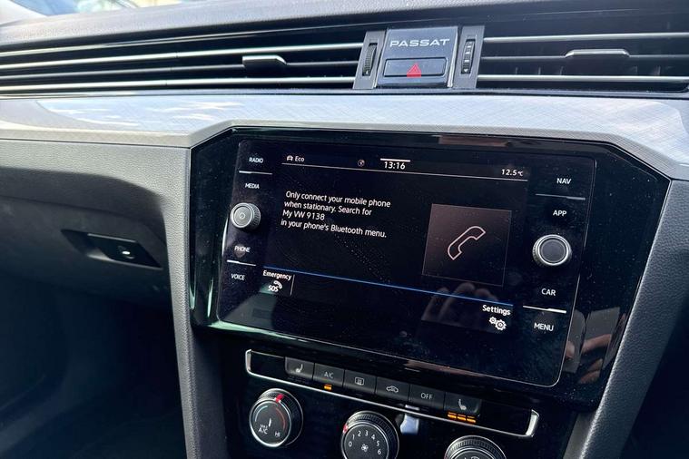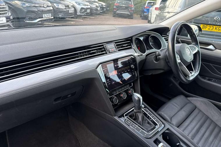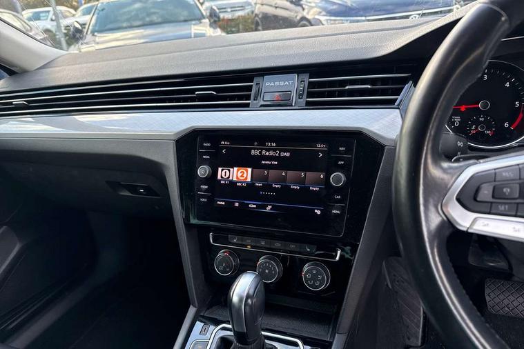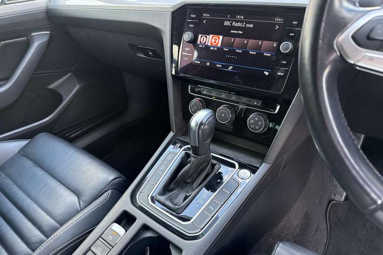 Adaptive cruise control including Front Assist, radar sensor controlled distance monitoring system, City emergency braking system, Driver alert system, Driver profile selection, Exterior temperature gauge with frost alarm, Lane assist, Low washer fluid warning light, Multifunction computer includes visual gear, One touch indicator turn signal, Proactive occupant protection, Security and service including e-call, Speed sensitive power steering, Speedo and rev counter, electronic odometer, trip, service interval display and fuel gauge, Start/Stop function, Traffic jam assist, Warning buzzer and light for front seatbelts unfastened, Wireless app connect, Battery regeneration during braking, Diesel particulate filter, Misfuel prevention device, Aerial for radio integrated into rear windscreen, DAB Digital radio receiver, Auto dimming interior rear view mirror, Automatic headlights with dusk sensor, Automatic leaving home and manual coming home lighting functions, Black radiator grille with chrome louvres, Body colour bumpers, Body colour door handles, Body coloured door mirrors with intergrated indicators, Chrome side window surrounds, Front and rear electric windows, Fully galvanised body, Gloss black finish on B pillar, Heated rear window, High level 3rd brake light, LED rear lights, LED rear number plate lights, Plastic load sill protection, Rain sensor, Rear tinted glass from B pillar backwards, approx 65% tinted, Rear window wash/wipe, Remote electrically adjustable and foldable heated door mirrors including automatic dimming function on drivers side door mirror puddle lights, Silver anodised roof rails, Warning lights for open tailgate and doors, White instrument lighting, 12V socket in front centre console, 12V socket in luggage compartment, 40:20:40 split folding rear seat backrests, Driver's door storage compartment for 1.0 litre bottle, Extending luggage compartment cover with convenience opening, stowable, Front + rear carpet mats, Front and rear interior lighting with delay and dimming function, Front centre armrest with storage compartment and two rear air vents, Front cupholders x2 with covers, Front passenger storage compartment for 1.5 litre bottle, Height adjustable and removable variable boot floor, Height adjustable rear seat head restraints (x3), Height/reach adjust steering wheel, Illuminated vanity mirrors, Isofix child seat preparation, outer rear seats, Load lashing points x 4 in luggage compartment, Load through provision, Lockable, illuminated, cooled glovebox, Luggage compartment lighting, Rear seat centre armrest with storage compartment, Storage compartment in rear doors, Storage compartment in roof console with cover, Vienna leather upholstery + heated front seats + heated windscreen washer jets, 3x3 point rear seatbelts, ABS (Anti locking brake system) includes BAS (Brake assist) and EBD (Electronic brake pressure distribution), Automatic post collision braking, Disc brakes front and rear, Door open warning reflectors, Driver/Front Passenger airbags, Drivers and front passengers safety optimised head restraints, longitudinal and height adjustable, Drivers knee airbag, Electronic parking brake with auto hold, First aid kit, Front airbags with deactivation switch, Front and rear passenger curtain airbags, Front side impact airbag, Height adjustable front 3 point seatbelts + pretensioners, Hill hold function, Pre crash preventive occupant protection, Rear seat side impact airbags, Rigid safety cell with front and rear crumple zones, Volkswagen roadside assistance, Warning light for rear seat belts if unfastened, Alarm with interior protection and deactivation via infotainment system, Electronic engine immobiliser, Chrome air vent and instrument surround, Cross hatch decorative inserts in dash and door panels,