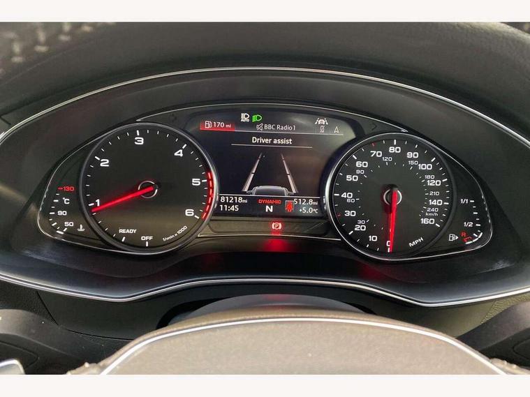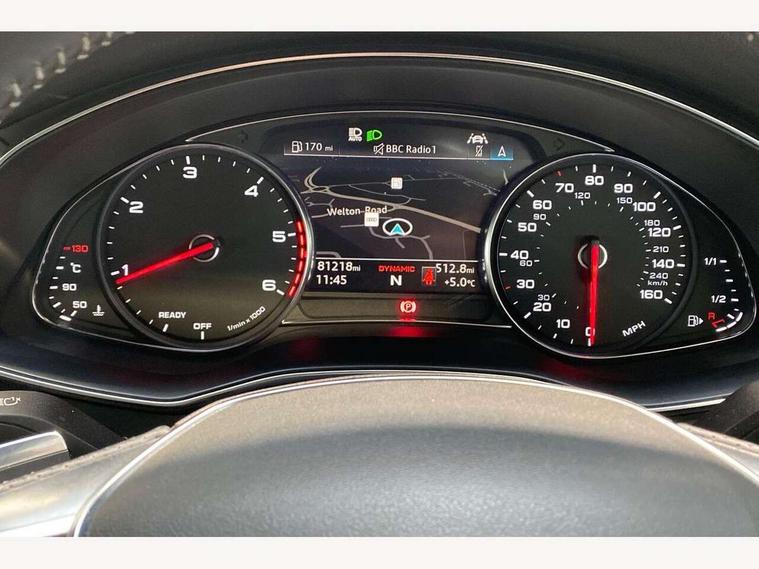 7" high resolution colour driver information display system, Amazon alexa Integration, Audi connect safety and service (e-call), Audi drive select, Audi parking system plus with front and rear sensors, Audi smartphone interface, Automatic start/stop system with coasting functionality, Bluetooth interface, Lane departure warning system, MMI navigation with MMI touch + twin touch screens 8.8" and 8.6" with haptic and acoustic feedback, Power operated tailgate, Progressive steering, Service interval indicator, Voice control system, Diesel particulate filter, Sports suspension, Audi music interface, Auxiliary input socket, DAB Digital radio, USB connection, Aluminium roof rails, Body coloured door mirrors, Electric front/rear windows, Electrically adjustable, heated and folding door mirrors with driver memory function and integrated LED indicators, Frameless auto dimming interior rear view mirror, Headlight washers, Heat insulating darkened glass in side and rear windows, LED signature front daytime running light, Matrix LED headlights with dynamic rear indicators, Privacy glass, Radiator grille in titanium black matt, single frame in chrome and horizontal struts in matt aluminium silver, Rain and light sensors, S line air inlet design with inlay in matt aluminium, S Line badge on front fender, S Line front and rear bumpers, S line rear diffuser and grille in matt black with matt aluminium tailpipes, S Line roof edge spoiler, S Line side skirts, Signature rear LED light design, Windscreen with acoustic glazing, 2 zone deluxe electronic climate control, 4 way electric lumbar support for driver and front passenger, 40/20/40 split folding 3 rear seat bench in 3 parts with rear centre armrest, Black cloth headlining, Electrically adjustable front seats with driver memory, Front centre armrest, Front head restraints, Heated front seats, Height/reach adjust steering wheel, Illuminated door sill trims with S logo, Illuminated sun visors with vanity mirrors, ISOFIX child seat mounting and Top Tether with front passenger airbag deactivation, Leather gear knob, Leatherette on upper instrument panel and door shoulders, Luggage compartment system, Rear headrests, S line front and rear floor mats with contrast stitching, Stainless steel pedals and foot rest, Tool kit and car jack, LED Interior Ambient Lighting Pack - A6, Non smoking pack - A6, 3 point seatbelts on all seats, Airbags - Front side, front and rear including head, Audi pre-sense front, EBD - Electronic brakeforce distribution, Electromechanical parking brake, Electronic Stability Control (ESC) including ABS, ASR and EDL, Extended pedestrian protection measures, Seatbelt monitoring, Tyre pressure warning light, Warning triangle and first aid kit, Anti theft alarm with tow away protection, Anti-theft wheel bolts and wheel loosening detection, Immobiliser, Keyless Go, Remote central locking,