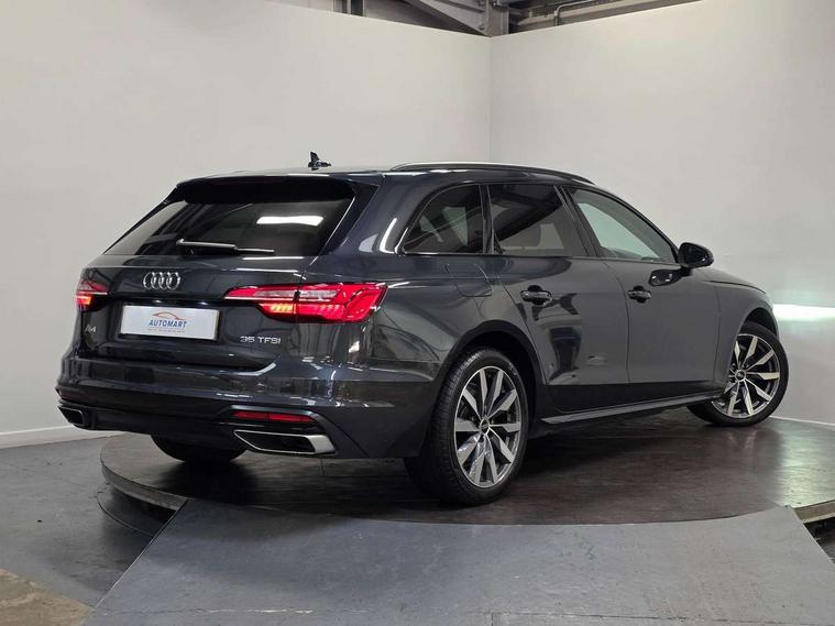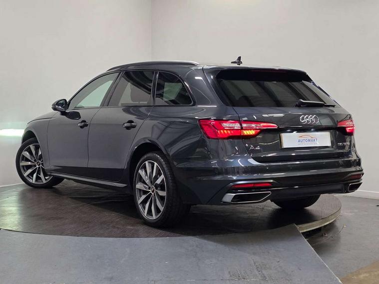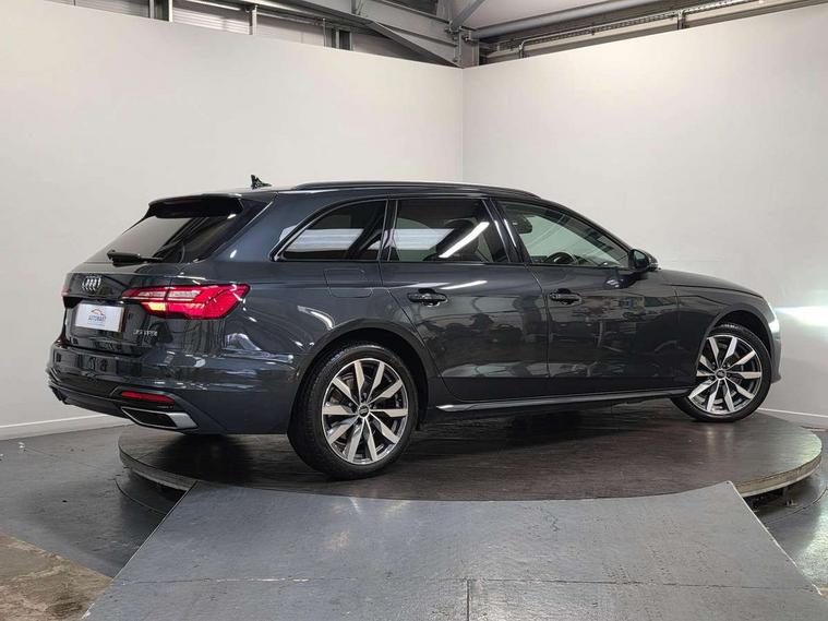 Audi connect safety and service (e-call), Audi connect with Amazon Alexa Integration, Audi drive select, Audi smartphone interface, Audi virtual cockpit, Automatic start-stop system with coasting functionality and efficiency programme, Bluetooth interface, Cruise control system with speed limiter, Electromechanical power steering, Email, calendar and text messages displayed via MMI, MMI Navigation plus with MMI touch includes 10.1" high resolution colour MMI display, 3D map, Power operated tailgate, Voice control system, 54 litre fuel tank, Comfort dynamic suspension, 2 USB charging ports, 8 passive loudspeakers, DAB digital radio reception, Auto dimming rear view mirror, Body colour door handles, Body colour side sill trim, Body coloured door mirrors, Electrically folding auto dimming/adjustable/heated door mirrors with LED side indicators and kerb view function for passenger side, LED headlights and rear lights with LED daytime running lights, LED third brake light, Matt aluminium silver tailpipe trim, Privacy glass, Rain and light sensors, Rear diffuser in matt titanium black with trim strip in matt aluminium silver, Rear side wing doors, Rear wiper, Sport front and rear bumpers with side skirts, Variable intermittent front wash/wipe, Windscreen with acoustic glazing, 3 spoke high multi-function leather sport steering wheel with paddle shift and height and reach adjustable, 4 way electric lumbar support for driver and front passenger, 40/20/40 split folding 3 rear seat bench in 3 parts with rear centre armrest, Deluxe 3 zone electronic climate control, Door sill trims with aluminium inlay, Electric load area cover, Front and rear head restraints, Front centre armrest, Heated front seats, ISOFIX child seat mounting and top tether, Manual seat adjustment, Single front passenger seat, Twin leather upholstery + front sports seats, Black styling pack - A4 Avant Sport Edition/S4 Black edition/S4 Vorsprung, High gloss package - A4, LED Interior light pack - A4/S4, 3 rear seatbelts, 6 airbags - Driver, front passenger, curtain and side windows, Electronic Stabilisation Control (ESC) including ABS, ASR and EDL, Hill hold assist, Multi collision brake assist, Pop-up bonnet for pedestrian protection, Pre sense city, Rear door child safety locks, Seatbelt monitoring, Warning triangle and first aid kit, Anti theft alarm, Anti theft wheel bolts, Central locking, Keyless Go, Aluminium ellipse silver inlays, 18" 10 spoke dynamic design alloy wheels, Tool kit, Tyre repair kit,