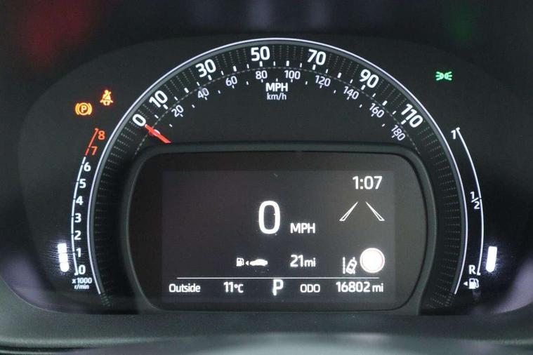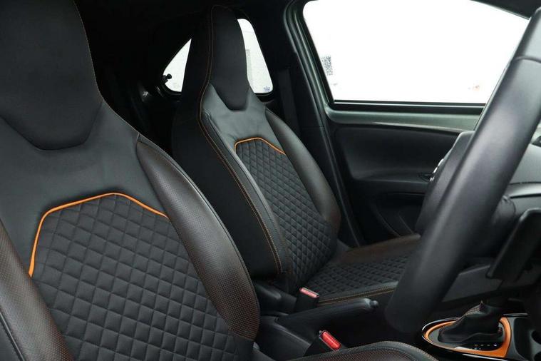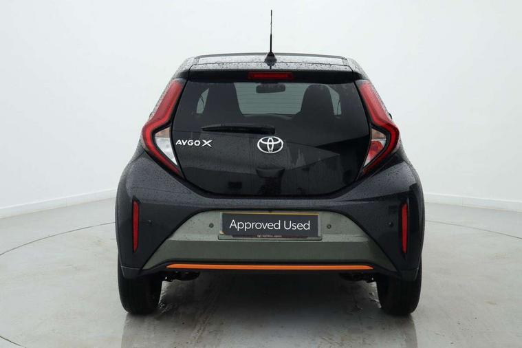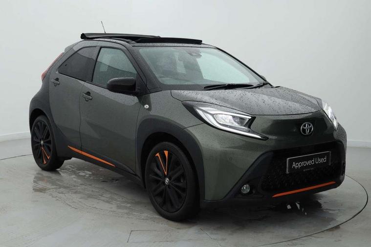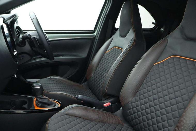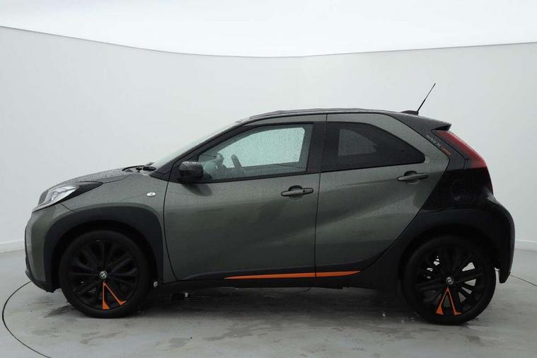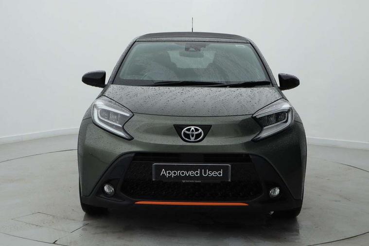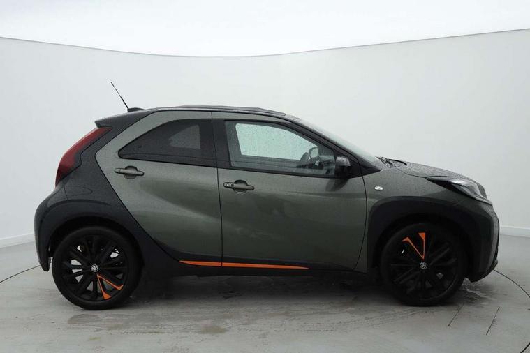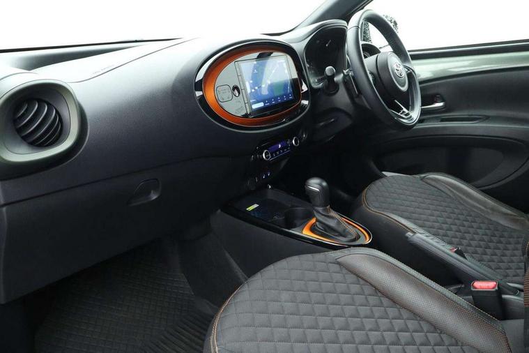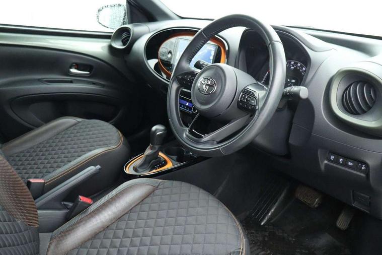 4.2" TFT colour screen, Adjustable speed limiter, Analogue speedometer, Bluetooth connectivity, Digital tachograph, Driver attention alert system, eCall emergency call system, ECO-driving indicator, Electric power steering, Front and rear parking sensors with auto brake, Intersection turn assist, Key reminder warning, Noise reduction kit, Pre collision system with emergency steering assist, Remote boot door release on key, Reversing camera with static guide lines, Smart entry and push button start, Speed limit display, Start and stop, Wireless charger, Wireless Smartphone Integration includes Apple CarPlay and Android auto, Vehicle Stability Control (VSC), 4 speakers, 9" HD multimedia display touch screen with Toyota smart connect, DAB digital audio broadcast, USB connector, Auto headlights, Auto wipers, Automatic headlights cut-off, Automatic high beam On/Off switch, Bicycle towing hook, Black fog light surrounds, Black side protection mouldings, Black wheel arch mouldings, Body colour door handles, Body coloured front bumper, Boot door scuff plate, Canvas roof, Eclipse black rear bumper, Electric heated door mirrors, Follow me home headlights, Front fog lights, Front power windows, Gloss black door mirrors, Gloss black upper front grille, Headlight cut-off reminder, LED daytime running lights guide, LED front light guide, LED High mounted stop lamp, LED projector headlights, Limited edition logo on C pillar, Magnolia strip on lower front and rear bumpers, Manual day/night rear view mirror, Manual headlight levelling, Metallic Bi-tone paint, Power adjustable door mirrors, Privacy glass, Rain sensor, Rear combination lights LED bulb type, Rear side wing doors, Rear windscreen defogger, Rear windscreen wiper, Remote hazard lights system, Short antenna, Variable intermittent windscreen wipers, 12v power outlet - front, 2 seat bench in 2nd row, 3 spoke leather steering wheel, 50/50 split folding rear seat, Adjustable speed limiter switch on steering wheel, Audio and telephone switches on steering wheel, Auto air conditioning, Black insert on steering wheel, Black roof lining, Boot light, Canvas top headlining, Centre room light, Chrome interior door handles, Chrome surround on air conditioning buttons, Clean air filter, Driver and front passenger heated seats, Floor mats, Front and rear cup holders, Front head rest deco art, Front head restraints, Gear shift indicator, Height adjustable driver seat, Intelligent adaptive cruise control switch on steering wheel, ISOFIX child restraint system on rear seats, Lane departure alert switch on steering wheel, Leather gearshift knob, Light blue ambient lighting in centre console, Manual tilt steering wheel, Manually reclining and sliding driver seat, Manually reclining and sliding front passenger seat, Multimedia switches on steering wheel, Paddle shift levers on steering wheel, Partial leather seats, Pollen filter, Rear door pockets, Rear head restraints, Remote air-conditioning system, Satin silver insert on gear shift knob, Single compartment glovebox with lights, Single front passenger seat, Soft tonneau cover, Sun visors with mirror on driver and passenger side, Voice recognition switch on steering wheel, Toyota safety sense pack - Aygo X, Anti lock braking system + Electronic brake force distribution, Child safety door lock, Emergency brake light signal (EBS), Hill start assist control (HAC), Passenger airbag on/off switch, Seat belt reminder for front and rear seats, Supplement restraints system (SRS) - 6 airbags, Traction control, Tyre pressure warning system, Immobiliser, Remote power door locks, Black wheel centre caps, Mandarina Orange wheel insert, Tyre repair kit,