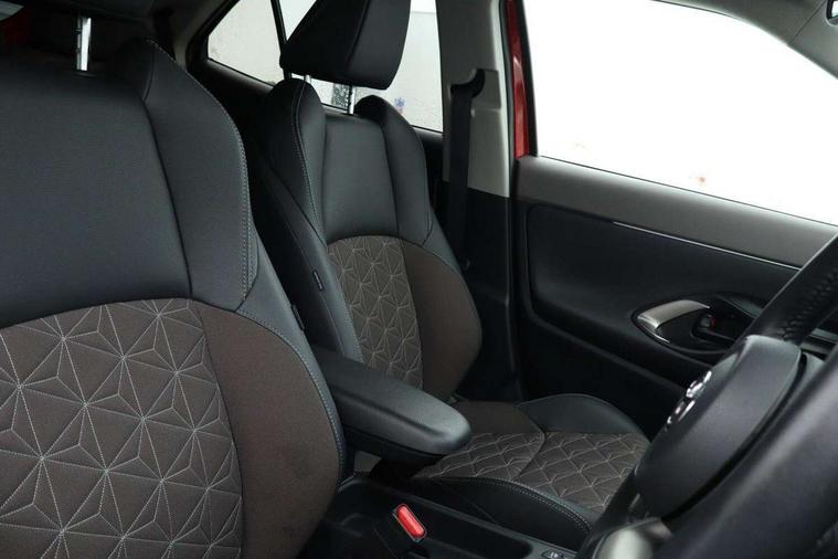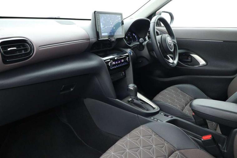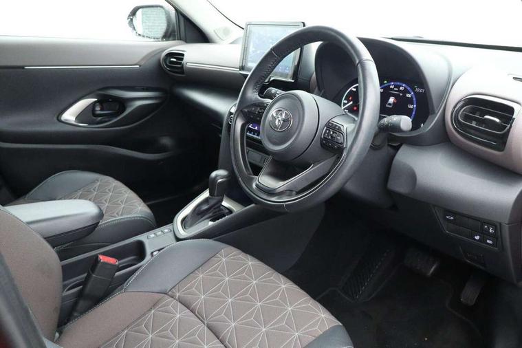 10.5" Multimedia display screen, 10.5" Toyota smart connect+ with navi multimedia system with wireless Smartphone integration incl Apple CarPlay, 360 degree panoramic view monitor, 7" Multi information display screen, Adaptive cruise control, multi info switches on steering wheel, Adjustable speed limiter, Advanced parking assist, Blind spot monitoring, Bluetooth connectivity, Color multi-information display, Digital speedometer, Digital tachometer, Drive mode selector, Driver attention alert system, Dynamic guide lines on reversing camera, eCall emergency system, Electric power steering, Emergency driving stop system, Full range intelligent adaptive cruise control, Hybrid system indicator, Intelligent front and rear parking sensors with clearance sonar and automatic braking, Intersection turn assist, Key reminder warning, Lane change assist, Lane departure warning, Lane trace assist, My T Connected services, Power tailgate, Pre-collision system enhanced with emergency steering assist, Rear cross traffic alert with brake assist, Remote boot door release in cabin, Road sign assist - RSA, Safe exit assist, Telephone switch on steering wheel, Wireless Mobile Phone Charger, Steering assisted vehicle stability control, 6 speakers, DAB Digital radio, Front USB Type-C connector, Front USB-C device charger, 3rd brake light, Acoustic windscreen glass, Anti-jam protection on power windows, Auto dimming rear view mirror, Auto high beam [AHB] with on/off switch, Auto intermittent windscreen wipers, Automatic headlights, Automatic headlights cut-off, Automatically retractable door mirrors, Black door moulding, Black lower front grille, Black protection moulding on side doors, Black roof rails, Black wheel arch mouldings, Body colour door handles, Body colour front bumper, Body colour rear bumper, Electric adjustable heated door mirrors, Follow me home headlights, Front and rear electric windows with auto up/down function, Gloss black upper front grille, Headlight cut off reminder, Indicators integrated on door mirrors, Intermittent rear wiper, Kick activated power back door, LED daytime running lights guide, LED front fog lights, LED front light guide, LED Indicators, LED projector headlights, LED rear lights with sequential indicators, Manual headlight levelling, Meshed upper front grille, Noise reduction layer on windscreen, Privacy glass, Rain sensor, Rear side wing doors, Rear spoiler, Rear window defogger, Shark fin antenna, 12v power outlet - front, 12V power point in boot, 2x Rear coat hooks, 3 seat bench in 2nd row, 3 spoke leather steering wheel, 40/60 split deckboard, 40:20:40 split folding rear bench seat, Adjustable rear headrests, Adjustable speed limiter switch on steering wheel, Boot light, Central armrest, Driver and front passenger personal lights, Driver and front passenger Whiplash injury Lesseing seats, Driver and passenger seatback pockets, Dual zone automatic air conditioning, Fabric door trim, Front console box, Front cup holders, Front door pockets, Front head restraints, Front sport seats, Front/rear assist grips, Gear shift indicator, Grey roof lining, Heated driver and passenger seats, Heated steering wheel, Height adjustable driver's seat, Height adjustable front passenger seat, Hooks for luggage holding belts, ISOFIX child restraint system, Lane departure alert switch on steering control, Leather gearshift, LED centre room light, Light on driver and passenger sun visor, Manual telescopic and tilting steering wheel, Mirror on driver and passenger sun visor, Nanoe-X air purifier, Partial synthetic leather upholstery, Pollen air filter, Power adjustable lumbar support on driver seat, Rear cup holders, Rear door pockets, Rear head restraints, Remote air-conditioning system, Single compartment glovebox, Single front passenger seat, Soft tonneau cover, Storage box under boot floor, Voice recognition switch on steering wheel, White ambient lighting in centre console, White ambient lighting in footwell, White ambient lighting on front doors, Yaris cross floor mats, Tech pack - Yaris Cross, 3x3 point rear seat belts, ABS+EBD+Brake assist, Downhill Assist Control (DAC), Driver and passenger central airbags, Driver and passenger front airbags, Driver and passenger side airbags, Electronic parking brake, Emergency brake light system (EBS), Front seat belt reminder, Hill start assist control (HAC), Passenger airbag on/off switch, Pre-collision system with pedestrian and cyclist detection, Rear door child safety locks, Rear passenger side airbags, Rear seat belt reminder, Traction control, Tyre pressure warning system, Immobiliser, Intrusion alarm, Keyless smart entry with push button start, Power door locks, Power passenger window lock, Remote door lock, Gloss black side air vent surrounds, Tyre repair kit,