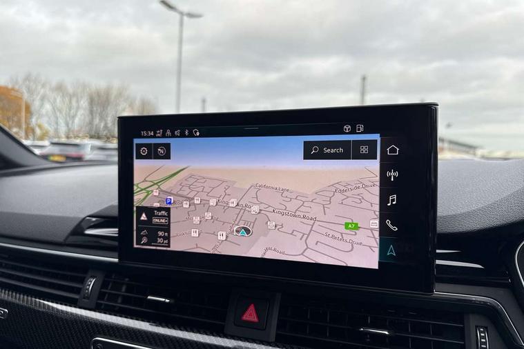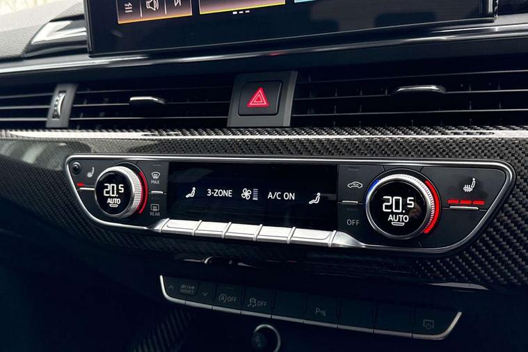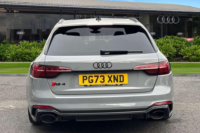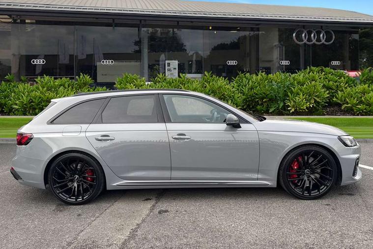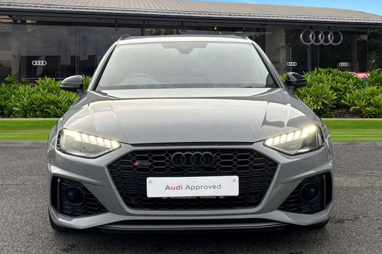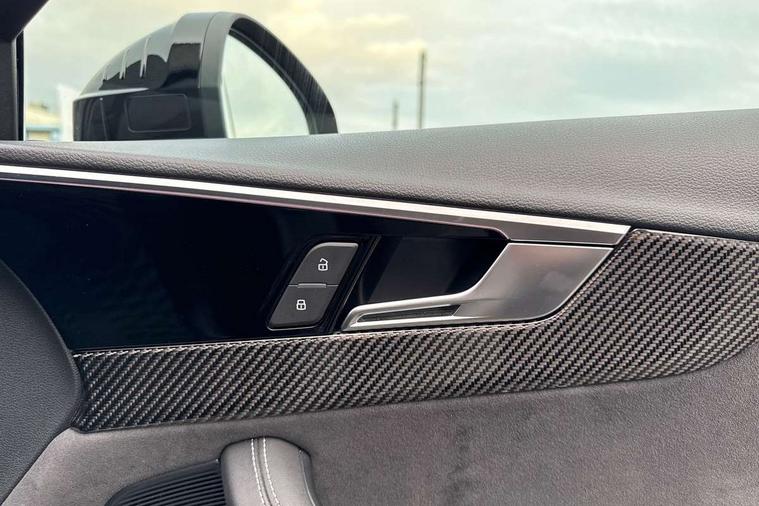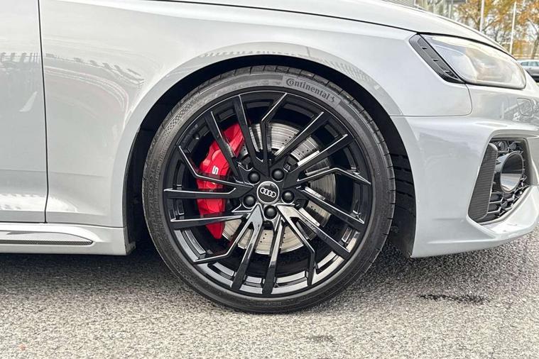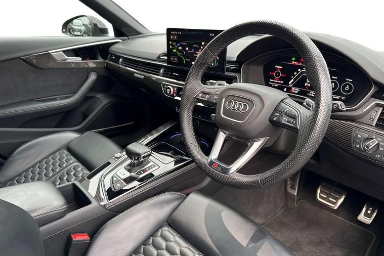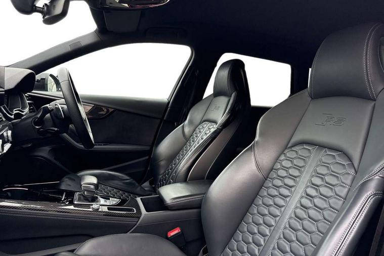 7" Colour driver information system, Audi connect safety and service (e-call), Audi drive select, Audi side assist, Audi smartphone interface, Audi virtual cockpit with RS specific display, Automatic start-stop system with coasting functionality and efficiency programme, Bluetooth interface, Camera based traffic sign recognition, Electromechanical power steering, Email, calendar and text messages displayed via MMI, Lane departure warning, MMI Navigation plus with MMI touch includes 10.1" high resolution colour MMI display, 3D map, Power opening/closing tailgate, Service interval indicator, Voice control system, 58 Litre fuel tank, Quattro sports differential, 2 USB charging ports, Audi sound system, DAB digital radio module, 3rd brake light, Acoustic windscreen, Audi Beam uses LEDs to project the RS logo onto ground as you exit your RS4, Audi matrix LED headlights with LED rear lights + dynamic front and rear indicators, Audi rings and lettering glossy black, Auto dimming rear view mirror, Automatic headlights + automatic windscreen wipers, Black roof rails, Blue tinted glass, Body colour door handles, Electric front windows, Electric rear windows, Electrically folding auto dimming/adjustable/heated door mirrors with memory function, LED side indicators and kerb view function for passenger side, Flared front and rear wheel arches, Front bumper with enlarged air inlets, Headlight range control, High beam assistant, High gloss black door mirror housing, High gloss black triangular aperture at rear door, Honeycomb design grille with quattro logo, Lateral air inlets next to front headlights, LED daytime running lights, LED indicators in door mirrors, Privacy glass with rear acoustic glazing, Rain and light sensors, Rear side wing doors, Rear wiper, Roof spoiler, RS 4 badges on grille and rear, RS4 dual branch chrome tailpipes with left and right oval pipes, 3 seat bench in 2nd row, 3 spoke multifunction plus leather steering wheel with heating and RS badging, 40/20/40 split folding rear seats with rear centre armrest, Black cloth headlining, Deluxe 3 zone electronic climate control, Door armrests and knee pad, Electric load area cover, Electrically adjustable front seats, Fine nappa leather with contrast honey comb stitching + super sports seats with pneumatic massage function, Front centre armrest, Front headrests, Front/rear floor mats, Heated front seats, Height and reach adjustable steering wheel with full size airbag, Illuminated door sill trims with RS4 logo, ISOFIX child seat mounting and top tether, Luggage compartment carpet, Perforated leather gear lever knob with contrast stitching, Rear headrests, Retractable load area cover, Single front passenger seat, Stainless steel pedals, Sunvisors with vanity mirrors, Carbon black styling pack - RS4, LED Interior light pack - RS4, Non Smokers pack, 3 point seatbelts on all rear seats, Adaptive driver and front passenger airbags, Attention and drowsiness assist, Electromechanical parking brake, Electronic stabilisation control including ABS, ASR and EDL, Enhanced braking system, Front head airbags, Front seatbelt pretensioners + load limiters, Front side airbags, Hill hold assist, Manual child lock in rear doors, Multi-Collision braking, Pop-up bonnet for pedestrian protection, Pre sense city, Rear side airbags, Seatbelt monitoring, Traction control, Tyre pressure warning, Variable restraint system, Warning triangle and first aid kit, Anti theft alarm, Anti-theft wheel bolts, Immobiliser, Keyless Go, Remote central locking, Remote control key with RS emblem, Carbon twill inlays, 20" 5 segment spoke evo design glossy black sport alloy wheels, Tool kit, Tyre repair kit,