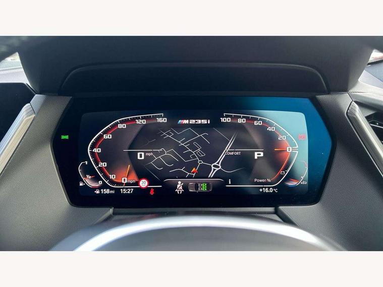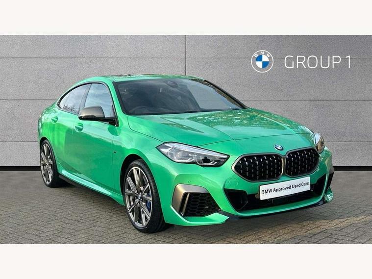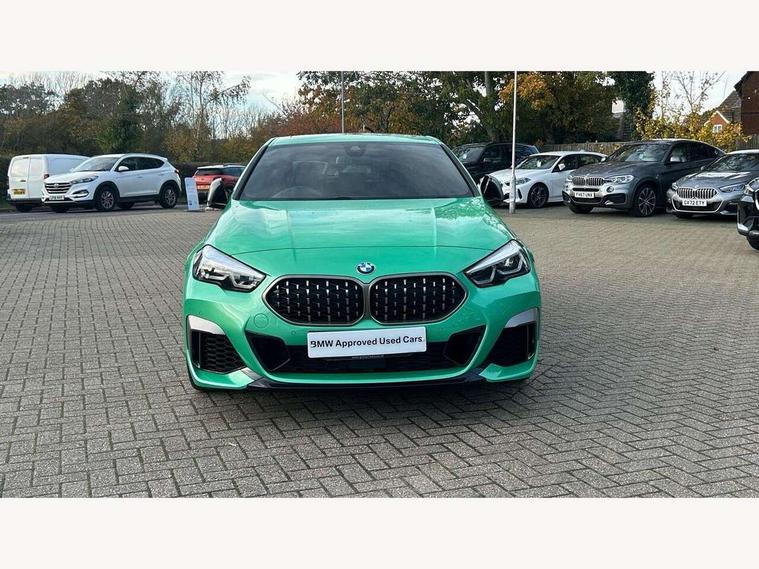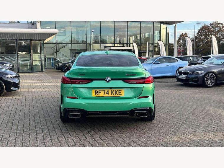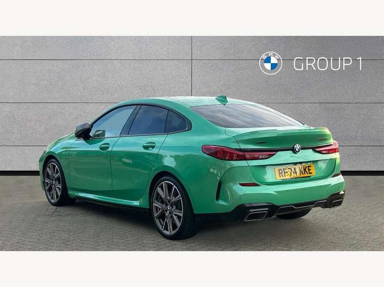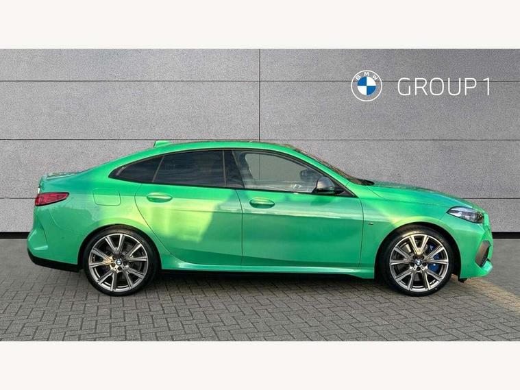 Active guard plus, Attentiveness assist, Auto start-stop, BMW ConnectedDrive online services, BMW Intelligent Personal Assistant, BMW Live Cockpit Professional with 10.25" high resolution instrument and control display, BMW Online services, BMW operating system with 7.0 mid interface, BMW Teleservices, Check Control warning system for monitoring of lights and door/luggage compartment open warning, Cruise control with braking function, Electro hydraulically controlled multi plate clutch in rear axle, Energy efficient operating strategy, iDrive controller with 7 short cut favourite buttons on centre console, Integrated navigation data with map data via USB +features such as 3D landmarks and micro city models, Integrated owners handbook, Intelligent voice assistant, Lane departure warning system, M Sport steering with M235i xDrive M performance specific settings, On board computer - average speed+fuel consumption, service interval, clock/date, odometer/trip meter, outside temperature display and ice warning, Optimum shift indicator, Personal Profile, Pull away assistant, Speed limiting function, 2 balance shafts, 8 speed sport automatic transmission with electronic selector lever, auto P function, coasting idle, race track, sport, gearchange display manual mode, Aluminium lightweight construction, BMW TwinPower twin-scroll Turbo four-cylinder petrol engine, Double VANOS, Drive performance control with ECO PRO comfort + sport mode, Electronic differential lock, Engine cover with M performance designation, High precision injection, Larger fuel tank capacity (50 litres), Launch control, M235i specific heavily de-throttled engine intake air guide, M235i specific high-performance cooling package, M235i specific larger turbocharger with integrated divert-air valve, Performance Control, Petrol Particulate Filter, Power transmission of front wheel drive on the rear axle via angle transmission on the front axle differential and two part cardan shaft, VALVETRONIC engine management, Variable, stepless and infinitely adjustable distribution of drive torque between the front and rear axles, xDrive intelligent all wheel drive with M235i specific reinforced components, 2x USB Type C ports (for charging and data transfer), 4G LTE Connectivity with hard wied 4G network sim card, DAB digital radio, MP3 players and RDS double tuner, Auto wipers, Automatically dimming rear view mirror, Body colour door handles, Direction indicator side lights integrated exterior mirrors, Electric windows - front and rear, with open/close fingertip control and trap release, Exterior mirrors - electrically folding with anti-dazzle, Fading support, Follow me home headlights, Front and rear bumper system with replaceable deformation elements, Front door sill finishers in black plastic with M235i designation, Heated, electrically adjustable exterior mirror aspheric on driver side, convex on passenger side, High gloss black B pillar finish, High gloss shadow line exterior trim, High level third brake light, LED daytime running lights, Lightweight engineering, M Performance exhaust system with valve control and minimised exhaust back pressure, M rear spoiler, Model designation on right side of tailgate includes xDrive designation onleft handside for M235i xDrive, Preparation for high beam assistant, Rain sensor with automatic headlight activation, Rear boot, Rear fog lights, Rear side wing doors, Reinforced crank drive, new pistons and adapted con rods, Reversing light in rear light cluster, Welcome lighting, 12V power socket in centre console, 2 cupholders in front centre console, 3 rear seat head restraints, 3 rear seats, 3 spoke M sports design leather steering wheel finished in nappa leather with specific M badge, Additional under floor storage in luggage compartment, Anthracite finished floor mats with contrasting surround, Anthracite headlining, Automatic two zone climate control air conditioning, Child seat ISOFIX attachment for two outer rear seats and front passenger seat with anchorage points, Conditioned based service, Driver and front passenger seat heating, Front and rear door pockets including bottle trays, Front and rear side armrests integrated into door trim, Front armrest foldable with integrated storage compartment, Front centre interior light over interior mirror and rear centre automatic interior light when door is opened/ignition switched off or via remote key, Front head restraints, Front M Sport seats, Front passenger seat, Glove compartment, Luggage compartment lighting, Manually adjustment steering wheel column, Multi-function controls for steering wheel, Shift-by-wire selector shift, Steering wheel paddles, Sun visors with vanity mirrors and insert tab, Through loading system with 40/20/40 split folding rear seat, Two lashing eyes, Additional interior lighting pack - 2 Series Gran Coupe, Connected pack professional - 2 Series Gran Coupe, Extended storage pack - 2 Series Gran Coupe, M Sport exterior styling aerodynamics pack - 2 Series Gran Coupe 235i, 2 tone horn, Airbag - Front driver and passenger, front and rear head, front side, curtain head protection, manual deactivation of front passenger airbag possible, Anti lock braking system (ABS) with cornering brake control, BMW emergency call, Brake drying, Braking readiness, City braking function, Crash sensor activating of airbags, Unlocking doors, hazard warning lights, fuel cut off, interior lighting+activation of safety battery terminal clamp, Dynamic stability control + (DSC+), Dynamic Traction Control - DTC, Electrically operated hand brake, Integrated torsen mechanical limited slip differential on front axle, M Sport braking system in blue high gloss + blue painted brake calipers with M designation, M sport seatbelt, Rear brake discs, Rear child proof door locks, Seat belt security check for driver and front passenger, Seatbelt warning, Side impact protection, Three point seat belts on all seats including front belt stopper, pyrotechnic belt tensioner