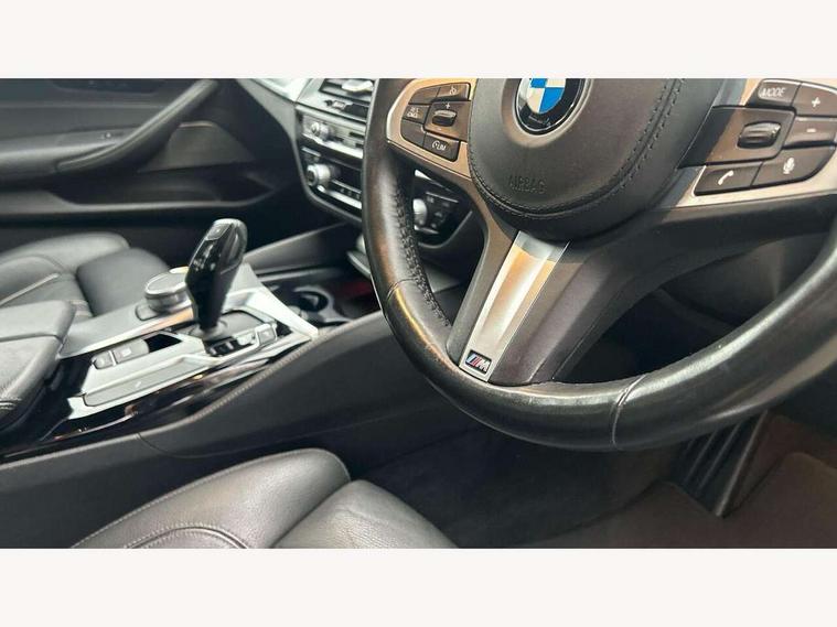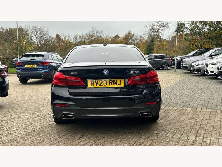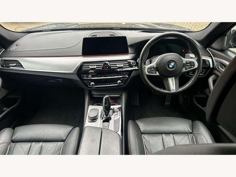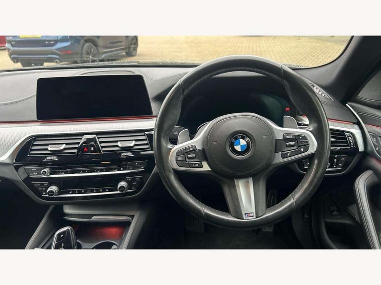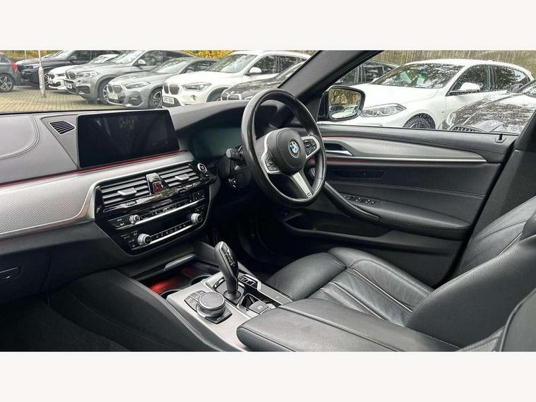 20GB hard disc drive (HDD) memory, BMW Live Cockpit Professional sat nav system including 10.25" high resolution display and Intelligent Voice Assistant, BMW Online services, BMW Teleservices, Brake force display, Control display - 10.25" colour touch sensitive display screen, iDrive touch controller with shortcut buttons, Navigation System Professional Multimedia, Oil sensor for level and grade, On board computer inc. average speed, fuel consumption, liquid crystal Info display, journey computer, outside temperature display, personal profile, Service interval indicator, Voice control system, Anti roll bar front and rear, Drive performance control with ECO PRO comfort + sport mode, High precision direct injection, M sport suspension, Petrol Particulate Filter, Sport automatic transmission, VALVETRONIC with Double VANOS, Auxiliary input socket, Bluetooth audio streaming, BMW professional radio with MP3 + DVD playback capability, DAB Digital radio, Favourite buttons, Acoustic glazing, Active air stream kidney grille, All round anti-corrosion system, Auto dimming rear view mirror, Body colour door handles, Body coloured bumpers, Body coloured door mirrors, Body coloured side sills, Door handle illumination, Dynamic brake lights with LED technology, Electric front and rear windows with fingertip open/close + anti-trap facility and comfort closing function, Electrically adjustable and heated exterior mirrors includes integrated direction indicators, Follow me home headlights, Heated windscreen washer jets, Interior rear view electrochromatic mirror with automatic anti dazzle function, LED daytime running lights, LED fog lights, Left and right single chrome quadrilateral exhaust tailpipes, M aerodynamic bodystyling, Rain sensor with automatic headlight activation, xDrive designation on tailgate, 12V power socket in front and rear, 3 Spoke M sports leather steering wheel, Ambient interior lighting with 6 selectable light designs, Battery in luggage with jump start facility, Door sill finishers with BMW designation, Front and rear armrests integrated in door trim + centre console includes storage compartment and rear centre armrest includes 2 cupholders, Front and rear cupholders x 2, Front and rear door sill inlays with illuminated BMW M designation, Front and rear footwell lights, Gearshift paddles, Height and length adjustable steering column and activation via lateral lever on the steering column, Lockable glove compartment with light, M specific floor mats, M specific key, M specific pedals, M specific steering wheel, Multi-function controls for steering wheel, Rear headrests, Connected package professional - 5 Series, 3x3 point rear seatbelts, Anti-lock braking system (ABS), Automatic Stability Control (ASC), BMW emergency call, Brake assist function, Brake energy regeneration, Child seat ISOFIX attachment rear outer seats, Cornering brake control (CBC), Crash Sensor - activation of central locking release, hazard warning light and interior lighting, Deformation zones front and rear with door reinforcements and bumpers that regenerate, Driver/front passenger, rear and side airbags, Driver/Passenger airbags (Impact dependent), DSC - Dynamic Stability Control, Dynamic brake control, Dynamic Traction Control - DTC, Electromechanical parking brake with automatic drive away release and auto hold function, Electronic brake force distribution, Engine drag torque control, Front head restraints with anti-whiplash, Front passenger airbag deactivation, Head airbags for first and second row seats, Hill start assist, M Sport braking system, Seat belts front inertia reel with pyrotechnical belt latch tensioner, belt force limiter and belt restrainer, Side impact protection, Three inertia reel rear seatbelts, Two tone horn, Tyre pressure monitoring system, Warning triangle and first aid kit, Alarm system with remote control and engine immobiliser, Locking wheel bolts, Remote central locking,