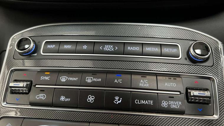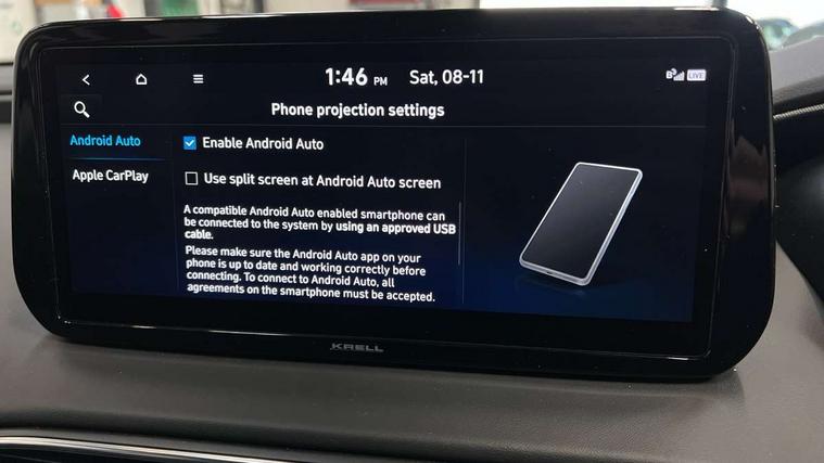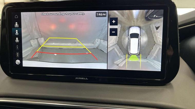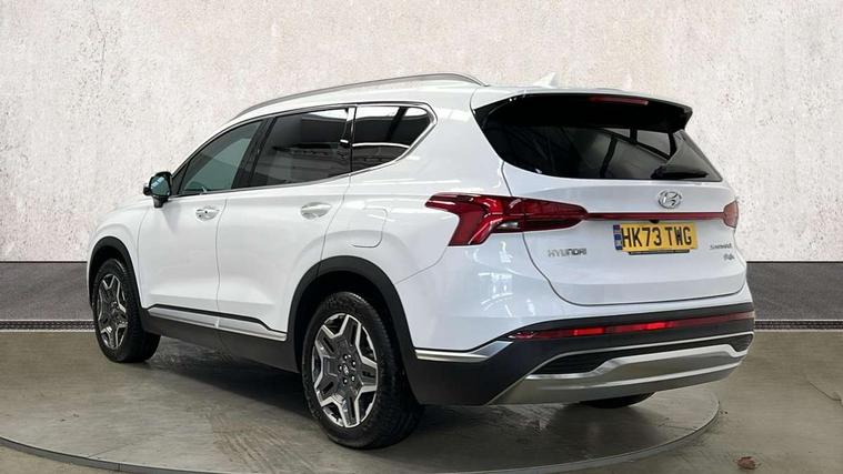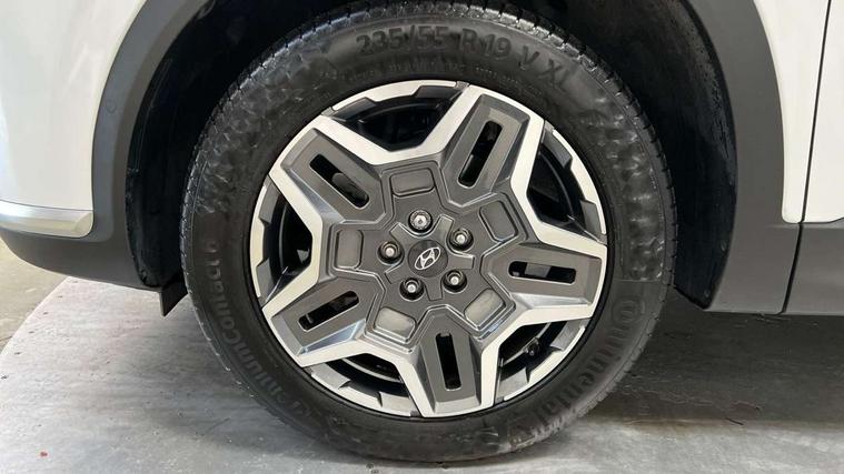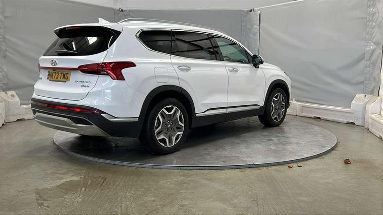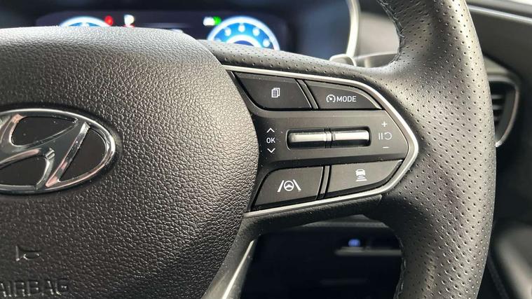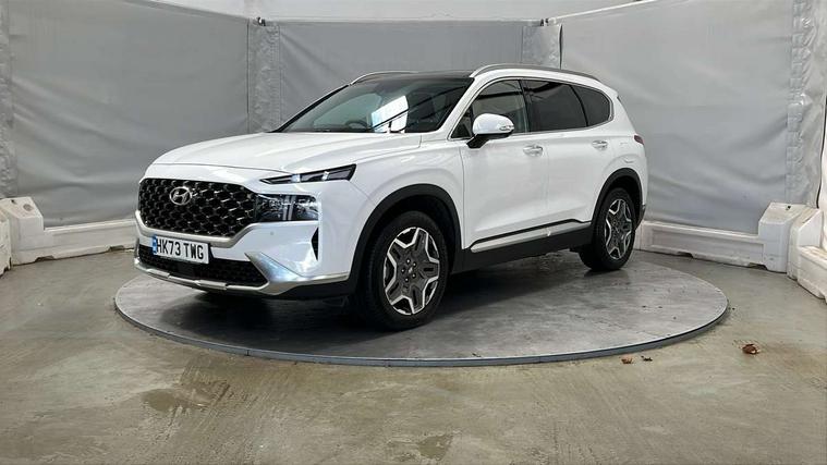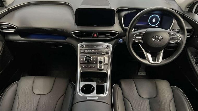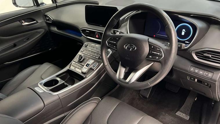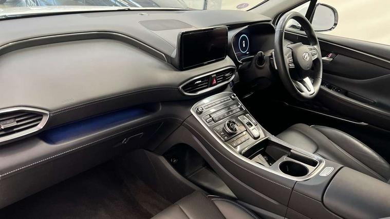 10.25" touchscreen satellite navigation with mapcare and live services, 12.3" TFT supervision cluster display, Apple car play/Android Auto, Blind spot collision avoidance assist, Blind spot monitor, Bluetooth connectivity with voice control, Cruise control - smart adaptive speed control with stop and go function, Drive mode selector, Driver attention alert system, E-call, Emergency stop signalling system, Forward Collision Avoidance Assist (FCA) - Car, Pedestrian and Cycle, Forward Collision Avoidance Assist Junction Turning (FCAJX), Front parking sensor, Head up Display, Highway driver assist, Intelligent speed limit warning, Lane departure warning system with lane keep assist - LKAS, Parking system with surround view monitor, PAS, Rear cross traffic alert, Rear parking sensor, Remote smart parking, Reverse parking collision aviodance assist, Safe exist assist (SEA), Smart electric tailgate with hand's free opening function, Smart posture control, Smartphone connectivity, Smartphone wireless charging plate, Trip computer, 3.3 kW On Board Charger, Charging cable - 7 pin type 2, Emergency 3 pin connector charging cable (ICCB), Self levelling suspension, Auxiliary input socket, DAB Digital radio, Krell premium audio with 10 speakers including external amplifier and subwoofer, Rear USB port, Steering wheel mounted controls, USB connection located in centre console, Automatic defog system, Automatic dimming rear view mirror, Automatic headlights with dusk sensor, Automatic windscreen wiper control, Body colour door handles with chrome inserts, Body coloured bumpers, Body coloured door mirrors, Dynamic bending headlight/cornering lights, Electric adjustable/heated/folding door mirrors, Electric front/rear windows/one touch/anti trap, Electric glass tilt and slide panoramic sunroof, Follow me home headlights, Full LED headlights, Heated rear windscreen with washer, LED daytime running lights, LED front fog lights, LED rear fog light, LED rear lights, Positioning Lights - LED, Privacy glass in rear window and tailgate, Puddle lights, Rain sensor, Rear side wing doors, Rear wash/wipe with intermittent wipe setting, Roof rails, Smart high beam headlights, Solar glass with windscreen shade band, Third brake light, Trailer stability assist, Variable front intermittent wipers, Windscreen wiper de-icer, 12V power point in luggage area, 12V power points in front + rear centre consoles, 2 seat bench in 3rd row, 3 seat bench in 2nd row, 50/50 split/folding 3rd row of seats, 60/40 split folding slide/recline seats 2nd row, Adjustable head restraints, Air conditioning - rear manual temperature control, Bottle holders, Driver seat memory function, Driver's lumbar support, Driver's seat electric adjustments, Driver/passenger sunvisors + illuminated vanity mirrors (drivers with ticket holder), Dual zone climate control, Faux leather door trim, Front and rear door pockets, Front armrest with storage compartment, Front cupholders, Front map reading lights, Front passenger's seat electric adjustments, Front seat and rear pockets, Front/rear interior lights, Grab handles (x3), Heated front seats, Heated outer rear seats, Heated steering wheel, Height/reach adjustable steering column, Illuminated cooling glove compartment, Isofix child seat preparation for front passenger seat, Isofix on 2nd row outer seats, Leather wrapped gear shift knob, Leather wrapped hand brake, Leather wrapped steering wheel, Luggage compartment lighting, Luggage cover, Luggage hooks, Luggage net, Manual rear door side blinds, One-touch folding rear seats, Rear armrest with storage, Retractable load area cover, Single front passenger seat, Sunglasses holder, Underfloor storage system in load area, Ventilated front seats, Trailer wiring pack - Santa Fe, 3 point seatbelts on all seats, ABS/EBD, Childproof rear door locks, Curtain airbags, Downhill brake control, Driver and passenger airbags, Electric parking brake, ESP, Front seatbelt pretensioner, Front side airbags, Height adjustable front seatbelts, Hill start assist control (HAC), Passenger airbag deactivate switch, Rear seat belt pretensioners, Rear seat Occupancy alert, Seat belt reminder, Seatbelt warning lamp, Traction control, Tyre pressure monitoring system, Deadlocks, Engine immobiliser, Keyless entry with start/stop button, Locking wheel nuts, Remote control central locking, Speed sensitive auto door locking, Thatcham category 1 alarm, 19" Alloy wheels, Temporary spare wheel (space saver),
