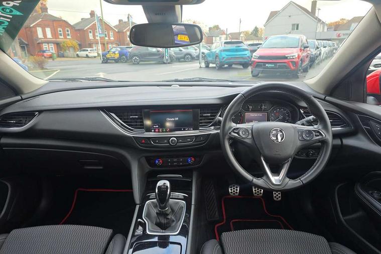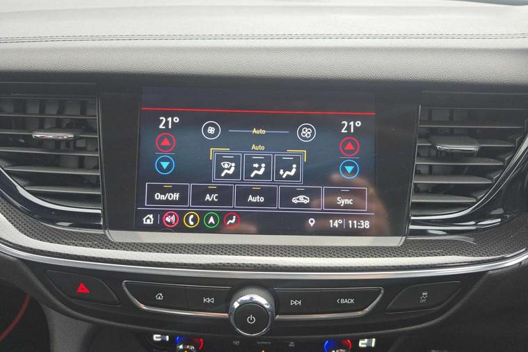 4.2" colour display, Central facia display with digital clock, outside air temperature and audio information, Door/boot open warning light, Driver information - Total mileage, service indicator, oil life, Instrumentation - Speedometer, rev counter, low fuel gauge warning light + water temperature gauge warning light, shift up/down indicate light, Lights on audible warning, Multi function trip computer, Multimedia Navi with 7" colour touchscreen, DAB radio, USB/iPod input, Bluetooth audio streaming and Apple carplay/Android auto, traffic sign, Speed sensitive power steering, Traffic sign recognition, Voice control system, Lowered and uprated sports suspension, Auxiliary input socket, Steering wheel mounted audio controls, Twin USB power sockets for rear seat passengers, Adaptive brake lights, Automatic lighting control, Body colour bumpers, Body colour door handles, Body colour door mirrors, Chrome effect bar on front grille, Chrome effect upper window trim, Door sill kick plates, Door to door illumination, Electric rear windows with anti pinch facility, Electrically operated front and rear windows with safety auto reverse and one touch up/down facility with heated rear window, Front fog lights, Gloss black finish B pillar, Hazard warning lights, High level LED centre rear brake light, Intermittent rear wash/wipe, Laminated windscreen, LED brake lights, LED daytime running lights, LED side repeat indicators, LED tail lights, Manual headlight beam levelling, Matt black lower window trim, Rear fog lights, Rear wiper, Reversing light, Silver roof rails, Solar heat absorbing windscreen with tinted windows, Twin electrically adjustable and heated door mirrors, Two speed windscreen wipers with variable intermittent wipe, Welcome lighting, 12V electrical accessory socket in front, drivers and front passenger sunvisors + vanity mirrors, 12V electrical accessory socket in luggage compartment, 3 height adjustable rear headrests, 3 spoke leather covered steering wheel with satin chrome effect bezel, Active front seats, Additional storage compartment in boot, Anti submarining ramps in front seats, Central front and rear courtesy light, fade up/down, twin rear and front reading lights with illuminated switches, ambient LED facia/centre console, Chrome inner door handles, Delay courtesy light function, Driver's and front passenger's LED illuminated vanity mirrors with flip up covers with below audio unit, Electronic dual zone climate control including air conditioning + automatic front seat heating and rear floor heating ducts + cabin particulate filter, Footwell illumination, Four load restraint lashing eyes, Front centre adjustable armrest with 4 litre storage capacity, Front headrests, Fully carpeted load area, Height adjustable front seat head restraints, Illuminated glovebox, front door pockets + 1.5 litre bottle holder, 2 drinks holders in centre console, rear door pockets + 1 litre bottle holder, Illuminated load area, Interior tailgate handle, ISOFIX child seat mountings incorporating top tether anchor points located on outer rear seats, Leather gear knob, Luggage compartment cover, removable, Pollen filter, Rake/reach adjustable steering wheel, Rear centre armrest, Rear passenger heating ducts, Reclining front seats, Storage pockets on front seat backs, Storage tray in spare wheel well, Twin gas assisted tailgate struts, Driver Assistance Pack 1 - Insignia, Sight and Light Pack - Insignia, 6 Airbags - Driver and passengers front airbag, two front side impact airbag, full size curtain airbags for driver, Anti jam door design with burst proof door locks, Anti-lock braking system (ABS), Child locks on rear doors, Cornering brake control, CSC - Cornering stability control, Deactivation switch for front passenger front and side impact airbags, Deformation zones front and rear, Drag torque control, Driver/passenger 2 stage auto adaptive airbags, Electric parking brake with centre console switch in handbrake and adjustable armrest in premium centre console, Electronic Stability Programme, Emergency brake assist, Energy absorbing steering column, Front and outer rear seatbelt force limiters, Front and rear outer seat belt pre-tensioners, Front lateral airbags, Front seatbelt unfastened audible warning and warning light, Height adjustable front seatbelts, Hill start assist, Pedal release system, Reinforced passenger safety cell, Seatbelt reminder for driver and front passenger, Side impact protection beams, Three 3 point rear seatbelts, Traction control, Two front and three point rear inertia reel lap and diagonal seatbelts, Remote central deadlocking , operates on doors, tailgates and fuel filler flap, deadlock, central locking switch on drivers door, Remote security alarm system with ultrasonic interior sensor, tilt sensor, independent power supply, thatcham approved, Hexagon inserts in dark metallic on facia and doors, Silver air vent surrounds,