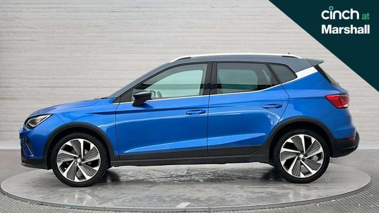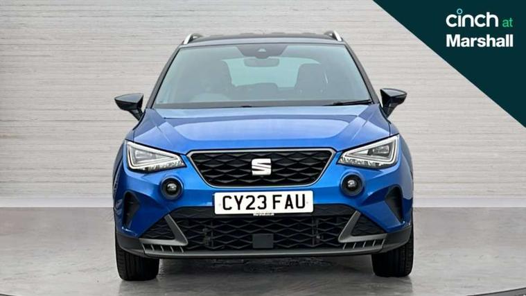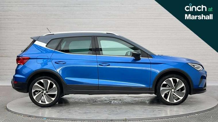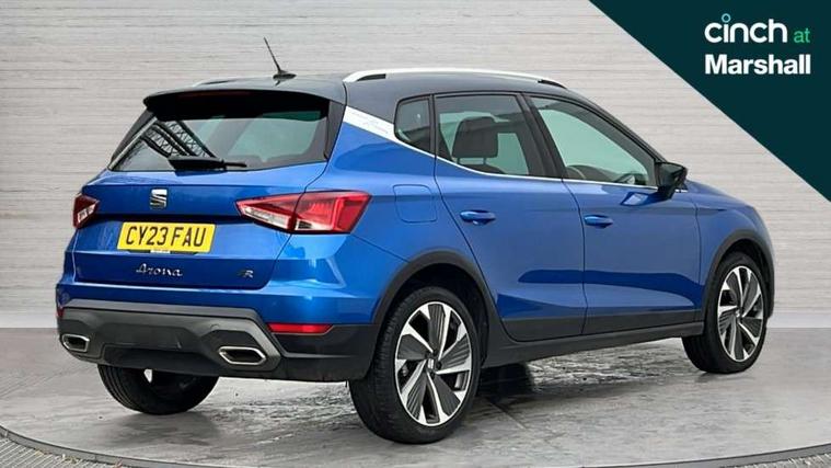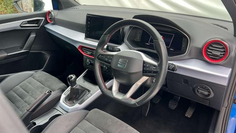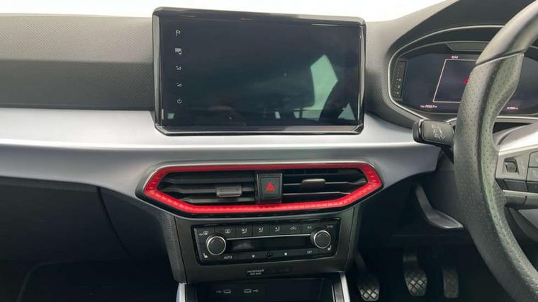 'Lights On' Reminder warning buzzer, 10" Digital cockpit, Digital clock, E-call, Electric speed sensitive power steering, Full Link Smartphone Integration with Mirror Link, Apple Car Play, Google Android Auto with USB Type C cable for Apple and Android compatibility, Low fuel warning light, Outside temperature display, Rear parking sensor, RPM counter, Seat connect with safety, service, remote and online, SEAT Drive profile - Four different models normal-sport-eco-individual, steering response, throttle response, Trip computer, Wireless phone charger, 9.2" colour touchscreen with navigation system, voice control and USB port (type c), Bluetooth interface for hands free and audio streaming, DAB digital radio and AM/FM radio, Steering wheel mounted audio controls, Anti theft roof antenna, Auto dimming interior rear view mirror, Automatic activation of hazard warning lights, Body coloured bumpers, Body coloured door handle inserts, Chrome roof rails and window surrounds, Dark tinted rear windows, Electric front/rear windows, Electrically adjustable, heated and folding door mirrors, Front fog lights with cornering function and rear fog light, FULL LED automatic headlights with dynamic headlight range control, coming and leaving home, LED daytime running lights, LED rear tail lights and licence plate lights, Protective side mouldings, Rain sensing wipers, Rear side wing doors, Rear spoiler, Rear window wash/wipe, Roof colour door mirrors, Third brake light, Twin exhaust pipe styling hidden exhaust pipe, Visible VIN plate, Windshield wiper with intermittent control and potentiometer, 2 cupholders, 3 seat bench in 2nd row, 60/40 split folding rear seat, Aircare filter, Black interior roof, Double boot floor, Driver sunvisor with covered mirror + card holder, Dual zone climate control, Front comfort seats, Front courtesy light with front reading lights, Front seat back storage pockets, Gear shift indicator, Heated front seats, Height adjustable front seats, Height/reach adjustable steering column, Illuminated boot, Instrument lighting with brightness control, Interior ambient lighting, Interior light in footwell, central console and door panel, ISOFIX points in outer rear seats with top tether anchorage points, Microsuede cloth upholstery, Passenger sunvisor with vanity mirror, Perforated flat bottomed leather steering wheel/gear knob/handbrake with red stitching and FR logo, Single front passenger seat, Two front and three rear height adjustable headrests, Interior chrome pack - Arona, 3 point seatbelts on all rear seats, ABS, Active front headrests, Child locks on rear doors, Driver and front passenger airbags with front passenger airbag de activation, front side and curtain airbags, Electronic stability control, Emergency Brake Assist (EBA) and front assist, Front and rear seatbelt reminder, Hill hold control, Multi-Collision braking, Tiredness recognition system, Traction control, Tyre pressure monitoring system, Alarm with back-up horn, Electronic engine immobiliser, Locking wheel bolts, Remote central locking + deadlocks, Tow away protection, Titan black dashboard, 18" Performance Cosmo grey matt alloy wheels,