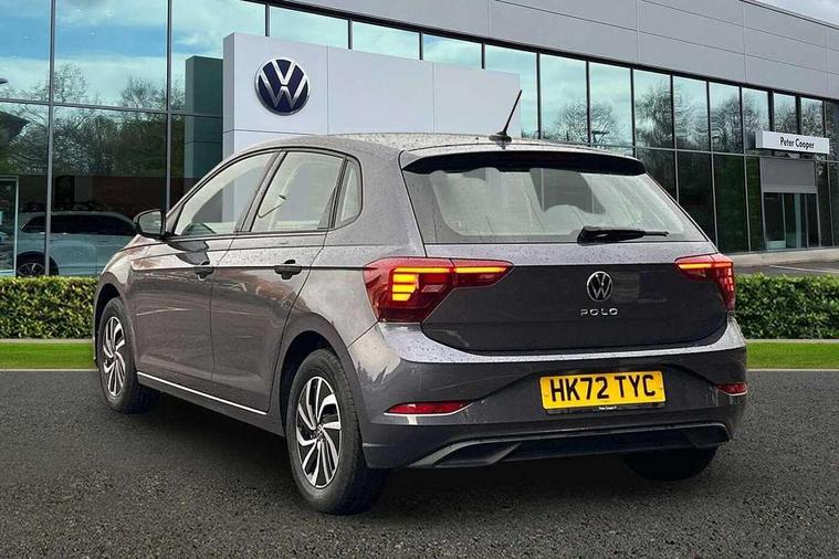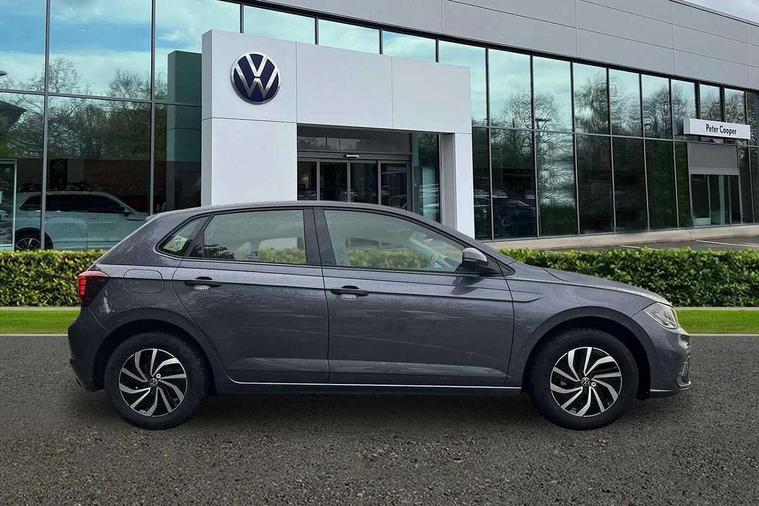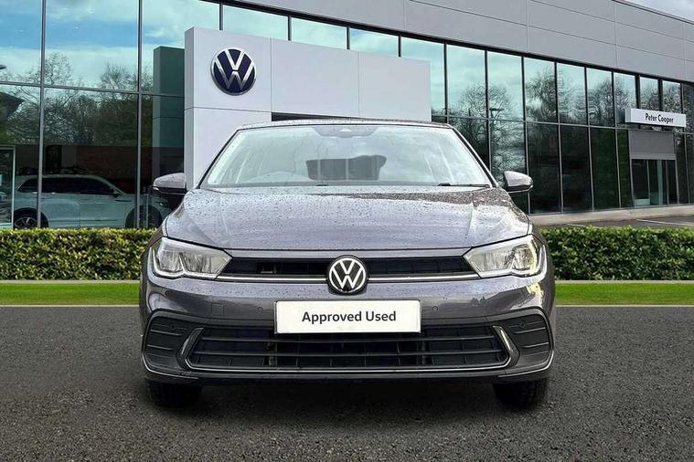 Adaptive cruise control without follow-to-stop and speed limiter, Bluetooth mobile phone interface, Driver alert system, Emergency call service, Front assist system, Power assisted speed sensitive steering, Preparation for We connect and We connect plus, Speedo and rev counter, electronic odometer, trip, service interval display and fuel gauge, Standard rear axle, Travel Assist - Lane keeping system and traffic jam assist, Travel assist including emergency assist, Trip computer, Warning signal and warning light for front and rear seatbelts not fastened, Washer fluid level indicator, Wireless app connect, Front wheel drive, Rear shock absorpion, Start-stop system with battery regeneration (recuperation - energy recovery during braking), DAB Digital radio, Diversity antenna for FM reception, Front and rear 6 speakers, Automatic dimming interior rear view mirror, Body colour bumpers, Body colour door handles, Body colour door mirrors, Electric front windows, Heat insulating darkened glass in side and rear windows, Heat insulating glass windscreen, Power folding adjustable/heated exterior mirrors and front passenger exterior mirror lowering function, Rain sensor, Rear electric windows, Rear fog light, Rear side wing doors, Rear windscreen washer and wiper with interval delay, Third brake light, 12V power socket in centre console, 2 front and 2 rear reading lights, 2 USB-C ports in the front, 2 USB-C charging sockets on the center console in the rear, 3 rear head restraints, 60/40 split folding rear seat and rear seat bench not split, Ceramique headliner, Chrome plated radiator grille inserts, air vent surrounds and light switch surrounds, Door and side trim panel, Driver and front passenger seat height adjustment, Driver/passenger sunvisors with illuminated vanity mirrors, Front centre armrest, Front seat backrest storage pockets, Front standard seats, Handbrake lever handle in leather, Hartley/Thomas cloth upholstery, Isofix child seat preparation easy-fit (for two outer rear seats, and front passenger seat) compatible with I-size, Leather trimmed gear knob, Luggage compartment cover, Luggage compartment floor, Luggage compartment lighting, Multifunction steering wheel, Single front passenger seat, Standard pedal cluster, Light and vision pack - Polo, 3 point height adj front seatbelts + pretensioners, 3x3 point rear seatbelts, ABS, Driver and front passenger airbag with front passenger airbag deactivation, Drivers and front passengers safety optimised head restraints, ESC (Electronic stability control) + EDL (Electronic Differntial lock) and ASR (Traction control), Extended and predictive pedestrian/ cyclist protection, Front curtain and side airbags with center airbag, Front disc brakes, Hill hold control, Manual child lock in rear doors, Rear drum brakes, Single tone horn, Tyre pressure loss indicator, Alarm with interior protection, Anti-theft alarm system with interior monitoring, backup horn, and towing protection, Anti-theft wheel bolts, Electronic engine immobiliser, Lava stone black gloss/matt decorative inserts in dash and front door panels, Low rolling resistance tyres,