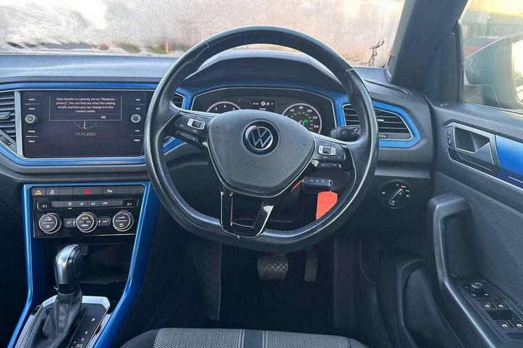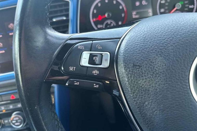 8" colour touch screen, Adaptive cruise control, Bluetooth telephone and audio connection for compatible devices, Brake pad wear indicator, Car information display, Car-Net Security and Service, Driver alert system with fatigue detection, Driver tips and journey analysis, Dynamic road sign display, Emergency call service, Lane assist with warning text instrument cluster, Mobile phone interface, Modified key software - reduce switch off time for key status change to Long no motion, Multifunction computer with visual gear change recommendation for fuel consumption, Navigation system discover media including streaming and internet, Online services, Power assisted speed sensitive steering, Speedo and rev counter, electronic odometer, trip, service interval display, digital clock and fuel gauge, Start/stop system with brake energy recovery, Tailgate/trunk lid release from outside, Warning sound and light for front seatbelts unfastened, Wired and wireless app connect, Bluetooth - Simultaneous pairing of 2 compatible mobile devices, DAB Digital radio, Diversity antenna for FM reception, Music playback - MP3, WMA and AAC files, SMS functionality - read, compose and send SMS messages using touch-screen display, Title and cover art display, USB-C Interface and USB charging socket, WeConnect plus, Auto dimming interior rear view mirror, Automatic coming/leaving home lighting function and daytime running lights, Automatic hazard lights activation under emergency braking, Body colour rear roof spoiler, Body coloured bumpers and radiator grille with chrome trim and front fog lamps with chrome bezel, Body coloured exterior mirror housings and door handles, Chrome effect left and right trapezoid exhaust tailpipe fascia surround, Chrome trim on upper and lower radiator grille, Dusk sensor, Electrically power adjustable, heated, folding, auto dimming, front passenger exterior door mirror lowering function, Front and rear electric windows, Heat insulating glass windscreen, High level 3rd brake light, LED rear number plate lights, LED tail lamp rear comination lamps, Power operated canvas convertible top, Rain sensor, Rear exhaust tailpipe, Rear fog lamp, Volkswagen roundel, Windscreen wiper with intermittent wipe light, 12V socket in centre console storage area, 2 front reading lights, 3 spoke leather wrapped multifunction steering wheel, 50/50 rear seat bench split folding rear seat backrests, Activated charcoal canister for intensified evaporation system, Black door lower parts with chrome trim, Chrome plated surround to light, mirror and window switch, Climate control - 2 zone electronic air conditioning with automatic air recirculation and allergy filter, Entry aid easy entry (Front folding seats), Front + rear carpet mats, Front centre armrest, Front comfort seats with manual height adjustment, Front cupholders x 2, Front seat back storage pockets, Glove Compartment with light, Height/reach adjust steering wheel, Illuminated vanity mirrors in sun visors with air bag label on sun visor and b-pillar, Instrument lighting, white adjustable panel illumination, Interior light delay, Interior light in footwell, Isofix easy fit child seat preparation for 2 outer rear seats, Luggage compartment lighting, Rear head restraints, Standard pedal cluster, Storage compartments in driver and front passenger doors, White ambient lighting, 2 x 3-point rear seatbelts, ABS, Autonomous emergency braking, Driver and front passenger safety-optimised head restraints, Drivers and front passengers airbags with passengers deactivation switch, Drivers seatbelt reminder, Electronic parking brake with auto hold, Electronic stability control (ESC) includes ASR, EDL, EDTC and trailer stabilisation function, Front assist with city emergency braking and pedestrian monitoring, Pedestrian monitoring, Predictive pedestrian protection, Rigid safety cell with front and rear crumple zones, Side airbag/thorax airbag system, for front passengers, Single tone horn, Three point height adjust front seatbelts + pretensioners, Tyre pressure loss indicator, Tyre pressure monitor, Ventilated front and rear disc brakes, Volkswagen roadside assistance, Alarm with interior protection and deactivation via infotainment system, Electronic engine immobiliser, Dashboard unicolour out of hard material including decorative insert 1st line different colours chooseable, Silver silk decorative inserts in dash and front door panels,