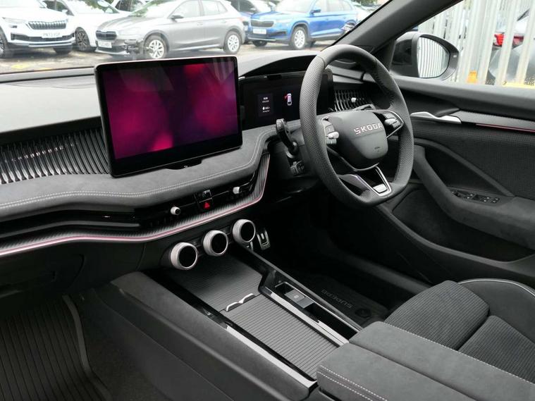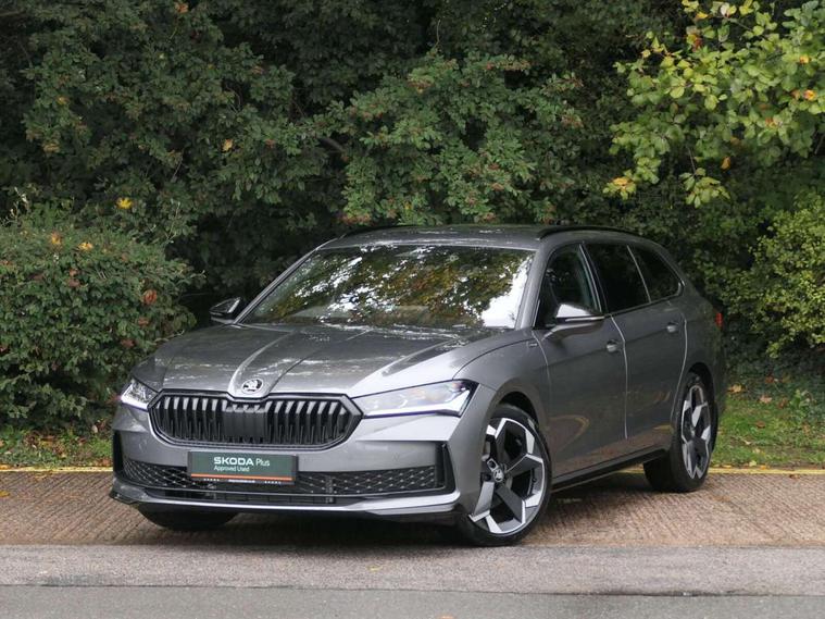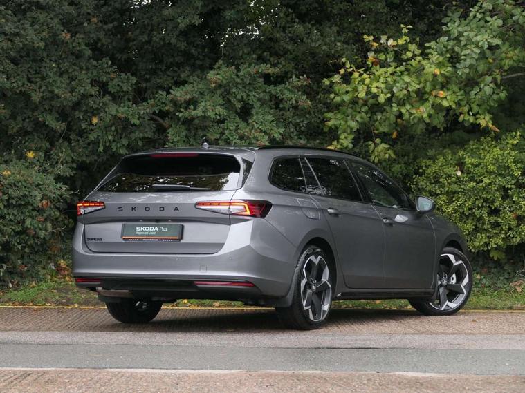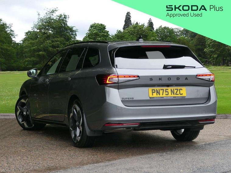 13" touchscreen display with satellite navigation, 4x USB-C ports (2x in front centre console and 2x in rear) (45W), Adaptive cruise control with speed assist, lane assist plus and traffic tram assist, Blind spot detection with door exit warning, Bluetooth system, CareConnect and Emergency Call, ChatGPT functionality, Driver fatigue sensor, Front assist with extended predictive pedestrian protection, Front cross traffic assist, PAS, Quick start all heating software functionality, Stop/start engine system, Traffic sign recognition, Turn assist with evasive assistance, Virtual Cockpit - 10.25" digital display, Voice control system, Washer for rear camera, Wireless charging for one smartphone (15W) with cooling function, Wireless smartlink apple carplay, SmartLink+ android auto, Dynamic chassis control plus with progressive dynamic steering, DAB Digital radio, Display cleaner, FM radio connection, Web radio connection, Acoustic side windows and interior noise suppression, Backdrop lighting, Black exterior styling window and grille surrounds, Black roof rails, Body colour door handles, Dynamic range control with poor weather light and integrated fog light, Electrically adjustable, heated, folding and driver side auto-dimming door mirrors with memory function, integrated indicators and logo projection, Frameless auto-dimming rear view mirror with USB-C, Gloss black door mirrors, Ice scraper in fuel tank cap, LED 3rd brake light, Light assist with High beam control, Light assistant (coming/leaving home/tunnel light), Privacy glass, Rear fog lights (x2), Rear roof spoiler, Rear side wing doors, Rear windscreen wiper, Skoda lettering in black, Sportline badging, Sports bumpers, Windscreen wipers with rain sensor, 12V socket 1x centre console 1x boot, 14-way electrically adjustable, memory, front seats with 4-way pneumatic lumbar support, and extendable thigh support with smart comfort entry aid, 2x cargo elements in boot, 2x light in boot, 3 seat bench in 2nd row, 4x foldable bag hooks in boot, 60:40 Split folding rear seats, Aluminium pedals, Bottle holders in the front doors 1.5 litre bottle and rear 1.5 litre bottle, Cup holder in front with easy open mat, Front armrest with storage box, Front sports seats, Heated and ventilated front seats, Height adjustable front and rear head restraints, Illuminated glovebox, Interior lights with control switches, Isofix child seat fittings in outer rear and front passenger seats, LED front and rear reading lights, Single front passenger seat, Skoda lettering on steering wheel, Storage compartment with cover, Storage pockets on back of front seats, Sun visors with illuminated vanity mirrors, Ticket holder on A Pillar, Tri zone climate control, Umbrella in driver's door, Light and view package - Superb, Transport package - Superb Estate, 3 rear seatbelts, 8 Airbags - Front driver and passenger, front side driver and passenger, centre, curtain front and rear, drivers knee, Crew protect assist, Driver and passenger seatbelts with warning light, Electronic parking brake, ESC including ABS, EBV, MSR, ASR, EDS, HBA, DSR, RBS, CBC, multi-collision brake (MKB) and Auto hold, Hill hold assist, Power operated child lock in rear doors, Alarm with interior monitoring tilt sensor and back up horn, Backrest remote release from trunk, Electronic engine immobiliser, Keyless start/stop, Remote central locking with SAFE system, Third key, Walk away locking, Decorative front door sills, 19" Torcular polished black alloy wheels with anti theft wheel bolts,